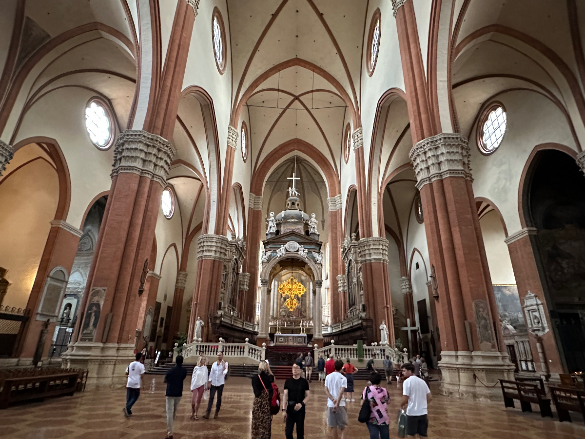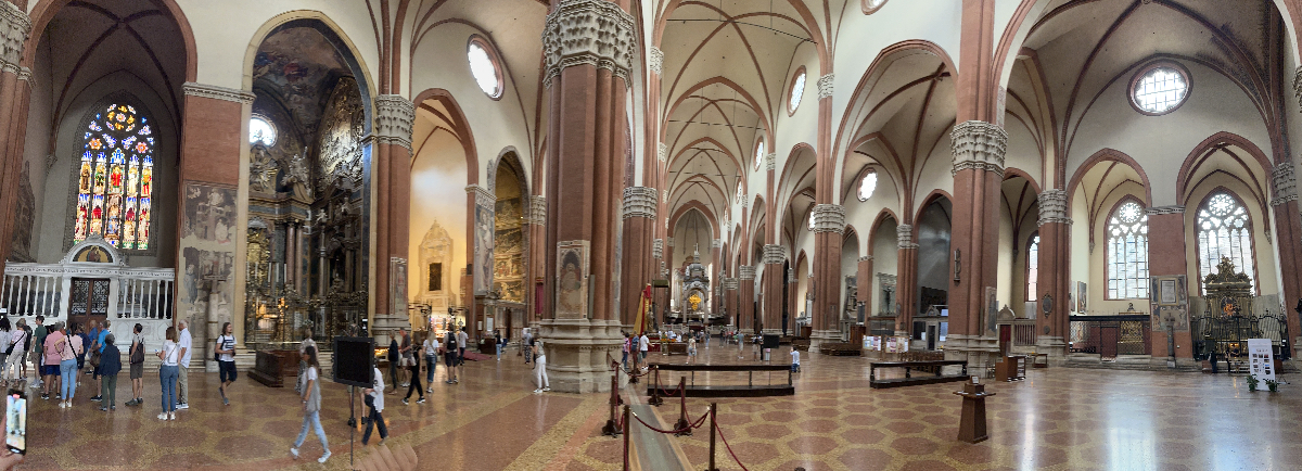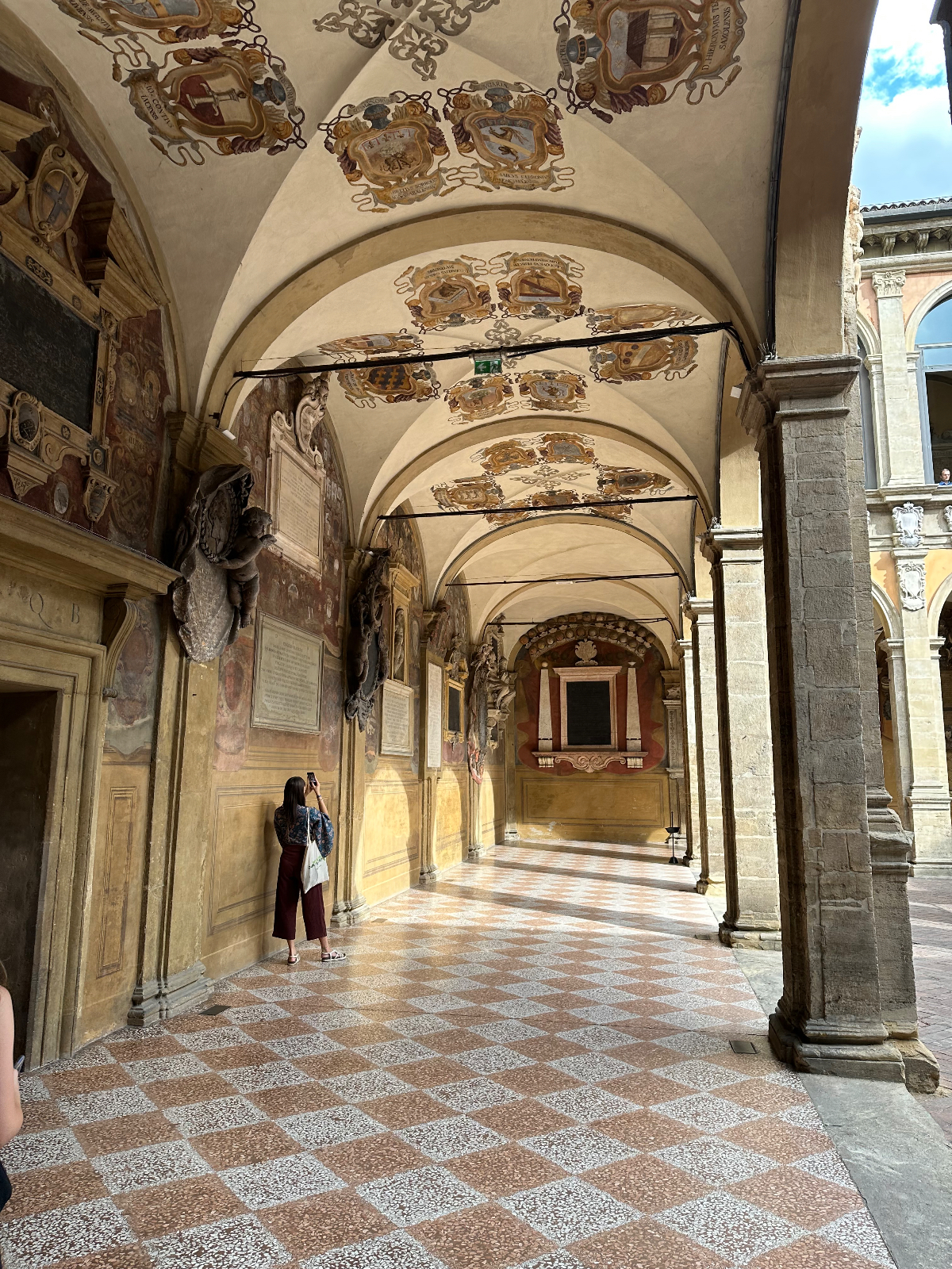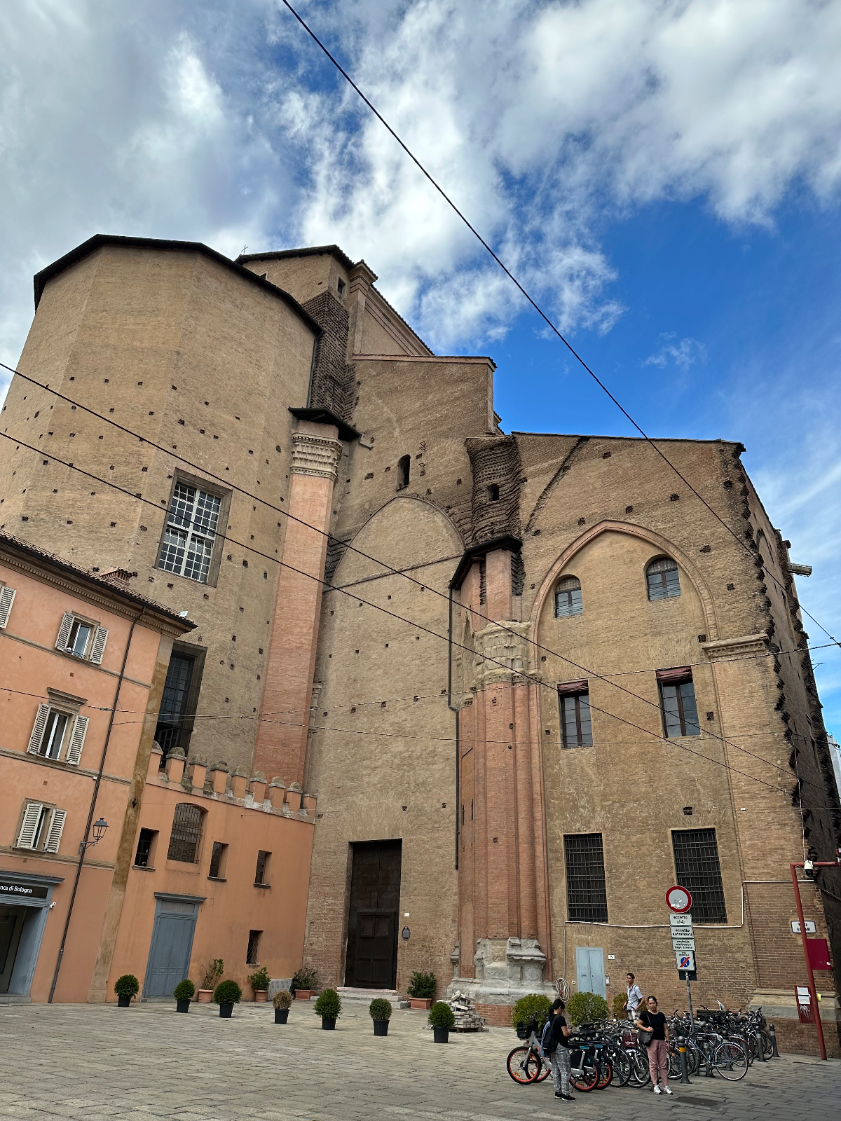 Nach dem Frühstück, welches mir die beiden wieder liebevoll zubereitet haben, verabschiede ich mich, wir wünschen uns eine gute Reise, sie fahren ja auch morgen. Ich glaube, so spät wie heute bin ich noch gar nie weggefahren, aber es liegen ja gerade einmal 55 Kilometer vor mir. Dass die härtesten Kilometer meiner Reise dabei sein werden, wusste ich da noch nicht. Runter vom Berg, den ich gestern noch erklommen habe, es hat frische 17 Grad. Wenn es in den nächsten Tagen weiter hinunter geht mit der Temperatur, dann ist das warme Gewand, das ich bisher nicht gebraucht habe, doch nicht unnützer Ballast. Lieber wäre es mir, wenn ich es nicht brauche! Für fast 30 Kilometer bin ich heute aktiver Verkehrsteilnehmer auf dieser stark befahrenen Bundesstraße in Richtung Bologna. Ich habe in den letzten Wochen doch schon viele Kilometer unter erschwerten Bedingungen absolviert, aber heute wird es noch einmal so richtig hart. Es herrscht vor allem ein starker Schwerverkehr auf dieser Strecke, ein Radfahrer ist hier ein einziges Hindernis. Waren es bisher an stark befahrenen Straßen meist eher kurze Abschnitte, an denen es brenzlig wurde, so trifft es heute auf die ganze Strecke zu. Die Straße ist nicht breit genug, um gefahrlos überholt zu werden, und nach rechts bleibt mir kein Zentimeter Reserve. Mein Adrenalinspiegel muss astronomisch hoch sein, ich spüre nichts und gebe alles. Keine Spur mehr davon, dass die Beine am Morgen noch sehr schwer waren. Das ist auch der einzig positive Effekt dieser Sonderprüfung, keine Schmerzen und keine Zeit zum Nachdenken, nur pedalieren, was die Beine hergeben, um es möglichst schnell hinter sich zu bringen. Aber 30 Kilometer sind lang ….. Dann kommt ein Abschnitt, entlang eines schroffen Steilhangs. Links die Wand, rechts mannshohe Leitschienen, dazwischen zwei Fahrspuren und absolutes Überholverbot. Ich sehe im Rückspiegel, die Straße in meine Richtung ist frei, noch. Aber schon schieben sich die LKW´s von hinten an mich heran, ich kann nicht einmal stehen bleiben um sie passiere zu lassen, es geht einfach nicht. Ich spüre den Druck, der sich hinter mir aufbaut, ein Ende ist nicht in Sicht, ich versuche gelassen zu bleiben, keine leichte Übung ;-) Nachdem diese Straße ein Teil des Eurovelo 7 ist, scheint es auch links oder rechts der Straße keine Alternative zu geben. Nach diesen 30 Kilometern bin ich jedenfalls ko und brauche eine Pause. Und ein trockenes Shirt. Endlich eine ruhige Nebenstraße, gerne auch steil bergauf, nur nicht wieder zurück auf diese Piste. Brauche ich auch tatsächlich nicht mehr. Aber damit ist es für heute noch nicht ausgestanden. Nach einigen ruhigen Kilometern entlang eines Flusses, beendet eine Tafel mit absolutem Fahrverbot die Fahrfreude. Was tun? Nachdem ich ja schon schlechte Erfahrungen gemacht habe, zögere ich. Ich schaue auf die Karte, ich müsste als Alternative auf die Bundesstraße zurück, sicher nicht, also durch. Zuerst geht es eh ganz gut, es folgt eine Baustelle, die nicht besetzt ist, und ich freue mich, weil ich annehme, die Baustelle war die Ursache für das Fahrverbot. War sie aber nicht. Der Weg wir schlechter, immer schlechter. War es anfangs eine brettharte, ruppige Wegoberfläche, so folgt nun eine Art grober Kies, nicht einfach zu befahren. Dann folgt der Übergang auf Rollschotter, richtig grober, zum Glück nicht scharfkantige, sondern runde Steine, die natürlich nach allen Seiten nachgeben, wenn man darüberfährt. Das Schotterbett ist zudem tief, sodass ich auch immer wieder einsinke, nur nicht stehenbleibe, sonst komme ich da nie mehr wieder raus aus diesem Schlamassel. Irgendwann ist auch das zu Ende, ich atme auf, als ich wieder Asphalt unter den Reifen habe. Nur das Navi leitet mich schon auf die nächste Fahrverbotstafel zu. Nein sicher nicht, nicht noch einmal das Glück herausfordern. Dafür ist mein Rad mit diesem Gepäck ganz einfach nicht geeignet! Laut Navi kann Bologna nicht mehr weit sein, ich finde einen anderen Weg auf eine größere Straße, und bald schickt mich das Navi auf einen Radweg. So angenehm. Der Radweg durch eine Flusslandschaft, ähnlich unserem Radweg durch die Murauen, führt dann über eine schmale Brücke. Am Ender der Brücke sagt das Navi aber plötzlich, folge dem Single Trail. Nein, nicht schon wieder denke ich mit aufkeimendem Ärger, warum habe ich das bei der Planung übersehen! Ich frage Spaziergänger, possibile con bici, sie nicken, und ich fahre. Es geht über Wurzeln, über Stock und Stein, aber wenigstens eben dahin, da hatte ich es heute schon schlimmer! Irgendwann wird dann tatsächlich wieder ein Radweg daraus. Dieser Radweg zieht sich dann durch Vorstädte, quer durch Bologna, bis hin zu meinem Quartier am anderen Ende der Stadt. Extrem cool! Ich habe heute ein Apartment in einer Art Reihenhaus Anlage. Ebenerdig, eine kleine Veranda, Wohnküche, Bad und Schlafzimmer. Alles sehr sauber und wohnlich eingerichtet. Die Vermieterin lerne ich nicht kennen, wir kommunizieren über whats app, der Schlüssel ist im Schlüsseltresor deponiert. Ich nutze das Vorhandensein einer Waschmaschine. Währenddessen erkundige ich mich über Bologna, ob es lohnt, sich die Stadt anzusehen. Und es scheint sich zu lohnen, die Altstadt gilt als eine der schönsten von Italien, wow! Bologna hat mehrere Kilometer Arkadengänge in der City, die in das Unesco Weltkulturerbe aufgenommen wurden. Waschmaschine fertig, Wäsche aufgehängt, ich fahre in die City. Dauert mit dem Rad immerhin 36 Minuten. Auch jetzt wieder, Radwege. Bologna hat ein perfektes Radwegenetz, habe ich so noch nirgends gesehen. Zweispurig, und zumeist vom Fußgängerverkehr getrennt, man kommt richtig gut voran, egal in welche Richtung man möchte, echt vorbildlich! Die Stadt ist sehr groß, so auch die Innenstadt. Zu sehen gibt es wieder Kirchen, Türme, Palazzi (oder doch Palazzos?) enge Gassen, und Menschenmassen – und Autos, überall! Ich habe wie meist keinen Plan, und treibe ein