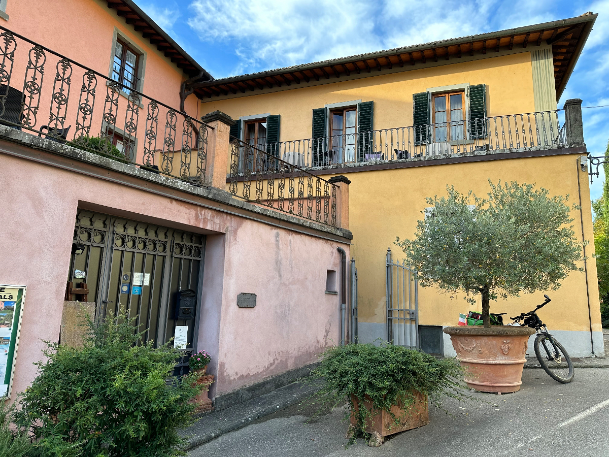 Meine Unterkunft war eine ehemalige Nudelfabrik, die Nachkommen haben dann den Schwenk hin zum Tourismus vollzogen und die Nudelproduktion eingestellt und Apartments daraus gemacht, clever. Ich habe jedenfalls gut geschlafen da. Ich packe mein Zeug, schleppe alles nach unten, nachdem ich bereits mein Rad wieder hinuntergebracht habe. Als Frühstück esse ich 2 Birnen und trinke einen Aloe Vera Saft, dann aber los. Ich fahre auf der Hauptstraße bergwärts, als ich plötzlich Bauchschmerzen bekomme, oder sind es Magenschmerzen, es krampft jedenfalls. Ich plage mich den Berg hinauf, die Schmerzen werden immer schlimmer. Ich wollte da oben unsere vorjährige Unterkunft Geberin besuchen, aber ich habe derartig starke Schmerzen, ich kann nicht. Ich bleibe stehen, stecke in meiner Not den Finger hinunter um brechen zu können, aber so weit ich meinen Finger auch in den Rachen stecke, es geht nicht, und die Schmerzen nehmen noch zu. Ich zittere und bin schweißgebadet, aber es helft nicht, ich muss weiter. Es geht bergab, ich muss mich sehr konzentrieren, aber irgendwann geht es nicht mehr, ich bleibe stehen. Auf einer Skala von 10 habe ich 8. Eine halbe Stunde lehne ich über mein Rad gebeugt und bete, dass der Schmerz nachlassen möge, und Gott sei Dank lässt der Krampf auch irgendwann ein wenig nach. Ich fahre in das nächste Dorf, finde ein Bar und trinke einen Kamillentee. Das hilft! Ich fühle mich kraftlos, aber es geht schon. Das Fahren ist heute sehr anstrengend, ständig auf einer vielbefahrenen, schmalen Straße in Richtung Florenz, ich habe kaum ein Auge für die Umgebung. Dann stelle ich fest, ich bin am Arno, und schon taucht am anderen Flussufer Florenz auf, ein Strom von Fußgängern strömt über die Brücken in Richtung Zentrum. Ich beschließe auch kurz in das Zentrum zu gehen, mache mein Rad an einem Pfahl fest und marschiere los. Außer mir haben noch etliche tausend Menschen mehr dasselbe Ziel. Rund um den Dom wird es unerträglich, ich will hier raus! Aus kurz wurden eineinhalb Stunden, ich habe schon Sorge wegen meines Rades, aber alles ist noch an Ort und Stelle. Wieder einmal verliere ich meine Route, das Navi fordert mich ständig auf umzukehren, anstatt die Tour anzupassen. Ich folge einfach dem Arno, diese Richtung stimmt für einige Zeit, jedenfalls glaube ich das. Zu Beginn eines großen Parks beginnt auch ein Markt, was für ein Markt. Multi Kulti in noch nie gesehener Ausprägung. Menschenmassen aus wirklich aller Herren Länder schieben sich durch die beidseitig aufgebauten Verkaufsstände, und ich mittendrin mit dem Fahrrad. Ich gehöre hier nicht her, aber ich muss da durch. Es nimmt kein Ende, ich schätze die Länge auf gut einige hundert Meter! Wäre auf der vorgeschlagenen Tour nicht gelegen ;-) Geläutert finde ich meine Tour doch wieder und folge nun brav dem vorgegebenen Weg, der wieder kein leichter ist. Nur Straße, nur Verkehr, viel Verkehr. Aber vor Prato werde ich für diese Mühen entschädigt, es folgt ein Radweg, zweispurig, wie cool ist das! Und es wird noch besser, ich fahre durch eine Allee von Zypressen auf einem angenehmen Kiesweg dahin, ein Traum! Prato selbst catcht mich nicht, aber heute hat es jeder und alles ein bisschen schwer mit mir ;-) Ich merke, ich sollte mal was essen, und bleibe an einer Bar stehen. Ein leeres Croissant geht ganz gut, dazu einen Kamillentee. Ich bestelle den Tee un tè camomille per favore. Fragendes Gesicht der Dame, Tee UND Kamille? Ja bitte! Sie schüttelt den Kopf und fragt nochmals. Schließlich zeigt sie mir zwei Teebeutel. Einmal Tee und einmal Kamille. Jetzt verstehe ich, Tee ist ausschließlich Tee, und Kamille wird nicht als Tee bezeichnet. Das hatte ich vor Tagen schon einmal. Als ich darauf bestand Tee mit Kamille haben zu wollen, bekam ich halt beides. Wieder was gelernt fürs Leben ;-) Jetzt sind es nur noch 15 Kilometer, ich habe heute ein Agroturismo gebucht, eine ehemalige Olivenpresse wurde zu Fremdenzimmern umgebaut, die Lage mitten in Olivenhainen. Es geht bergauf, vor mir die Berge, die es morgen zu bezwingen gibt. 1500 Höhenmeter! Anders als bei meiner ersten Fahrt über diesen Teil des Apennin, freue ich mich schon darauf. Ich erreiche mein Ziel und fahre auf den Hof. Es ist sehr still, kein Wunder, hier ist niemand. Ein Tor steht offen, vielleicht die Rezeption? Njente, ich finde keine Rezeption oder auch nur einen Hinweis. Ich rufe unter der Nummer an, die ich bei der Buchung erhalten habe. Es hebt niemand ab. Nach mehreren erfolglosen Versuchen, es sind nun schon 45 Minuten vergangen, reicht es mir. Ich bin heute etwas dünnhäutig ;-) Ich checke auf Booking, welche Alternativen es in der näheren Umgebung gibt, und entscheide mich für eine, die nur 4 Kilometer entfernt ist. Als ich aufbreche, läutet mein Telefon, es ist die Nummer die ich mehrmals vergeblich angerufen hatte. Zu spät, darum kümmere ich mich später. Ich finde das neue Quartier, ein sehr freundlicher Empfang erwartet mich. Ich checke ein und rufe bei Booking in Deutschland an, um die Situation zu klären. Mein Ersuchen um Stornierung wird höflich entgegengenommen, mit dem Hinweis, dass der Vermieter sein Einverständnis geben muss. Schon kurz darauf erhalte ich die mail, dass die Reservierung kostenlos storniert wurde. Danke! Nachdem ich mich eingerichtet und endlich geduscht habe, frage ich meinen Vermieter, der kein Englisch spricht, ob es möglich ist, hier eine Pizza zustellen zu lassen, und ob er die Bestellung für mich machen würde. No problem. Dann hat er mir auch noch eine Thermoskanne mit heißem Wasser gebracht, damit ich mir Tee machen kann, Grazie mille! :-) Mir ist nach der Pizza etwas flau im Magen, ich werde noch einen Tee trinken und dann bald schlafen gehen, morgen muss ich fit sein.