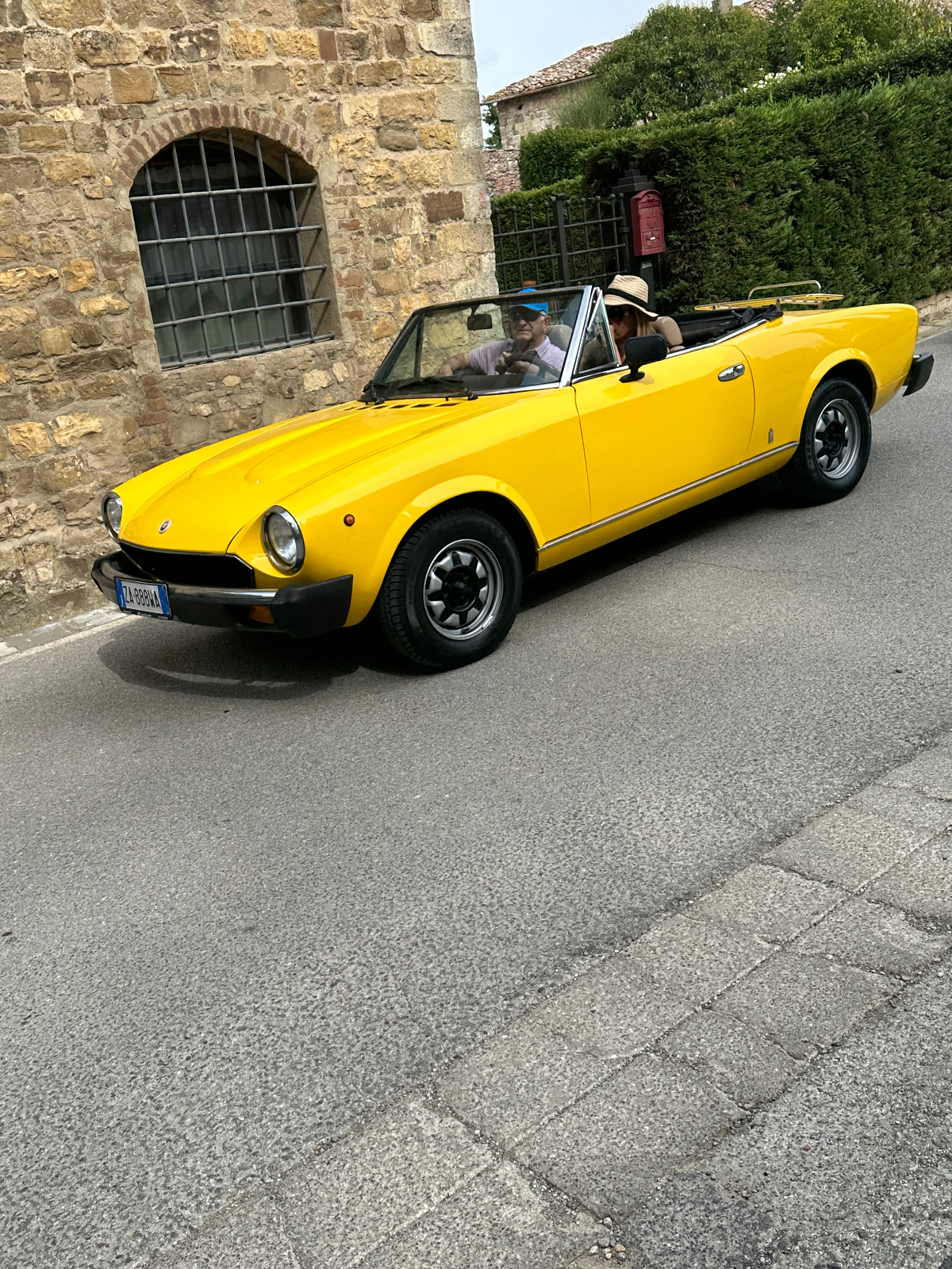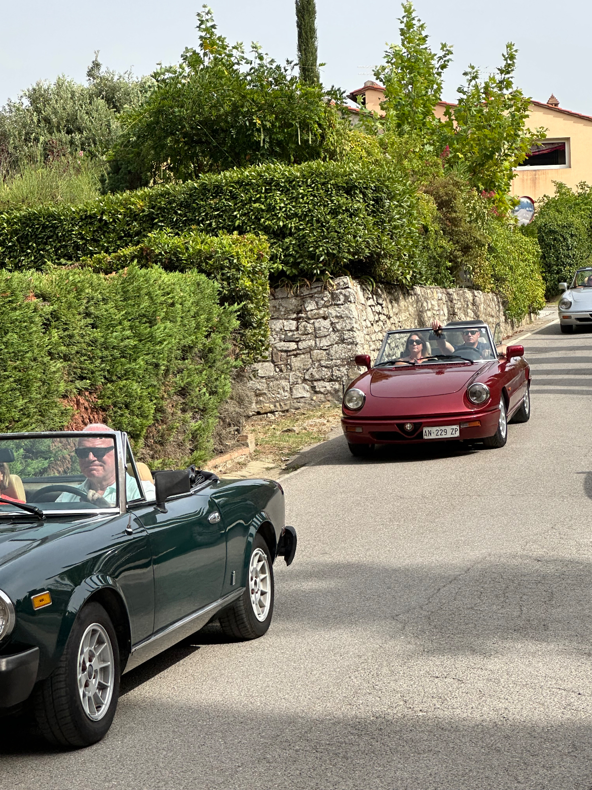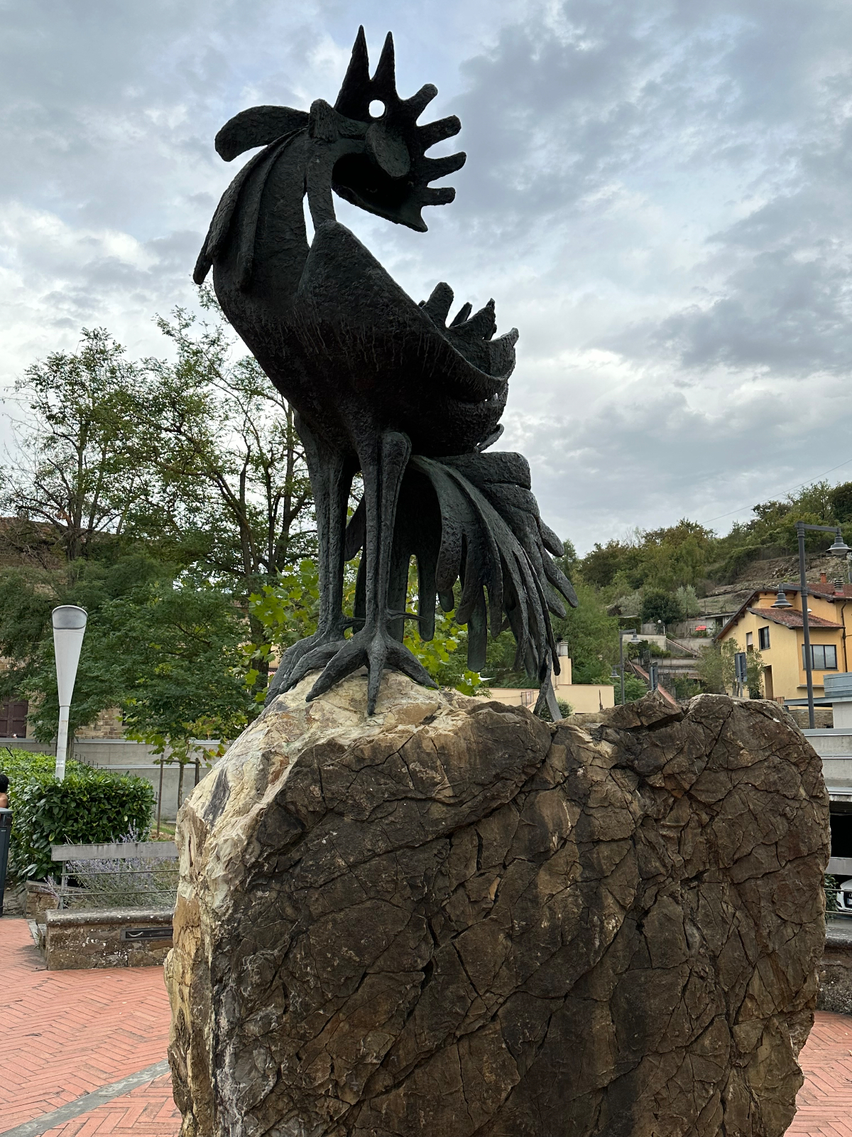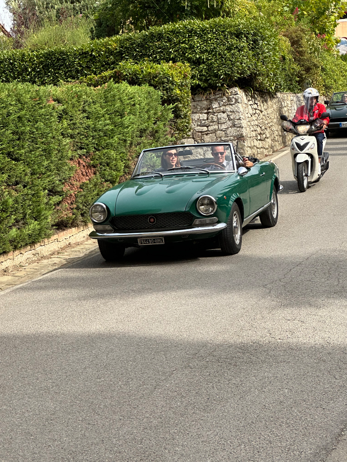 … und zwei Tage Siena sind schon wieder vorbei. Hier hat alles gepasst, das Hotel war großartig, Siena sowieso. Einmal muss ich noch den Berg hoch, um acht Uhr trete ich an, die Straße, die ich gestern bereits zu Fuß hinauf gegangen bin. In das Zentrum muss ich nicht hinein, ich fahre entlang der alten Stadtmauer, wo der Kampf um die Parkplätze bereits wieder begonnen hat. In diesen Städten kehrt wahrscheinlich erst im Winter Ruhe ein. Es ist ziemlich frisch, 17 Grad gerade einmal, speziell bergab unangenehm zu spüren, ich habe die Socken griffbereit vorbereitet und werde sie bald anziehen. Aber zuerst erreiche ich Montereggioni, eine gut erhaltene Festungsstadt auf einem Hügel gelegen. Ich fahre hinauf, um es mir aus der Nähe anzusehen. Wenn ich bedenke, dass ich bei meiner Erstplanung zuhause unbedingt hierher wollte, bin ich heute ein wenig enttäuscht. Keine Ahnung, was ich erwartet habe, aber es hat mich nicht geflasht. Darum habe ich mir auch schon lange vorgenommen, nichts mehr einzuplanen das ich unbedingt sehen möchte, sondern ich genieße alles, was mir der Weg so bietet. Davon gibt es schließlich reichlich hier, und mit dem Rad bekommt man so viel mehr mit :-) Dann tauche ich in ein Tal hinab, da wird es dann richtig kalt. Am Oberkörper verschwitz, die Füße eiskalt, die Socken müssen her! Es will heute so gar nicht schön werden, der Himmel ist bedeckt, keine Sonne zu sehen. Die 35 Grad in der Po Ebene waren mir lieber, aber es wird wohl auch hier Herbst. Poggibonsi ist recht groß, ich radle durch ohne anzuhalten, es gibt hier nicht zu sehen, zumindest auf meiner Route ist es so. Wird aber bald anders, als ich die Berge des Chianti erreiche. In den Weinhängen sind fleißige Händen bereits bei der Lese der vollreifen Trauben. Es gibt wieder einige knackige Anstiege zu bewältigen, aber das „erste Radfahrer´sche Gesetz“ besagt, wenn es hinauf geht, geht es irgendwann auch wieder hinunter, das ist Physik, daran ist nicht zu rütteln ;-) Die Straßen sind sehr schmal, entgegenkommende Autos hupen vor jeder Kurve, gute Idee. An einem alten Kloster halte ich an, Pinkelpause, da nähert sich ein langer Konvoi von Cabrios, mindestens 30, vorwiegend Alfa und Fiat, die meisten davon mit alten Kennzeichen aus Rom. Die Passagiere winken freundlich, als ich fotografiere. Alte Autos in dieser historischen Gegend, macht sich gut. Mein heutiges Ziel, Greve in Chianti ist nicht mehr weit entfernt. Am Höhenprofil sehe ich, ich bin bald ganz oben, dann dem Gesetz folgend geht´s bergab :-) Und zwar recht heftig, ich muss ständig bremsen und höre dabei ein schleifendes Geräusch der vorderen Bremse. Wenn die Beläge abgefahren sind, wird es mich nicht wundern, sie waren jetzt fast 2000 Kilometer im Einsatz, gutes Material! Bevor ich ganz unten in Greve ankomme, muss ich noch in einem alten Bergdorf an einer roten Ampel anhalten. Der folgende Abschnitt der Straße ist einfach nicht breit genug, ich kann da auch von keinem Auto überholt werden. Dieses Dorf ist mir aus unserem vorjährigen Besuch in Erinnerung, hier sind wir mit den Rädern herauf gestrampelt. Noch eine Abfahrt über ein paar Serpentinen, dann ist Greve erreicht. 14 Uhr, Zeit zum Essen. Ich setze mich in ein Restaurant, das ich auch aus dem Vorjahr kenne. Alessandro, der Inhaber, begrüßt mich wie einen alten Bekannten, aber das hat er bei unserem ersten Besuch auch so gemacht, ist seine persönliche Masche ;-) Ich bekomme unaufgefordert ein Glas Vino da casa und Pizzabrot. Nach meinem Essen gibt es zwei Stück Kuchen, auch aufs Haus, Danke Alessandro! Die Sonne scheint noch immer nicht durch die Wolkendecke, es hat 28 Grad und es ist drückend schwül. Zeit einzuchecken, um zu duschen. Ich habe heute ein Privatquartier, ein Apartment mit zwei Schlafzimmern und zwei Bädern. Was anderes war nicht zu kriegen. Wieder eine Gelegenheit, um zu sehen, wie diese alten Häuser innen aussehen. Der Nachteil, ich bin im zweiten OG, ich muss alles hinauf schleppen, und morgen wieder hinunter. Auch mein Rad musste ich ein Stockwerk hinaufbefördern, dort steht es am Gang. Es gibt hier auch eine Radverleih mit Werkstatt, dort habe ich meine vorderen Bremsklötze wechseln lassen. Alles wieder gut!