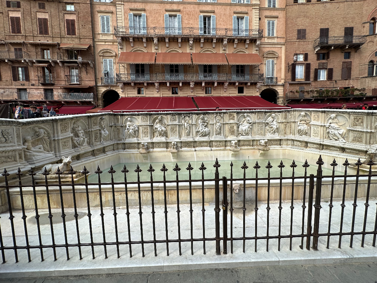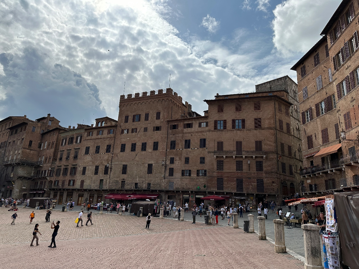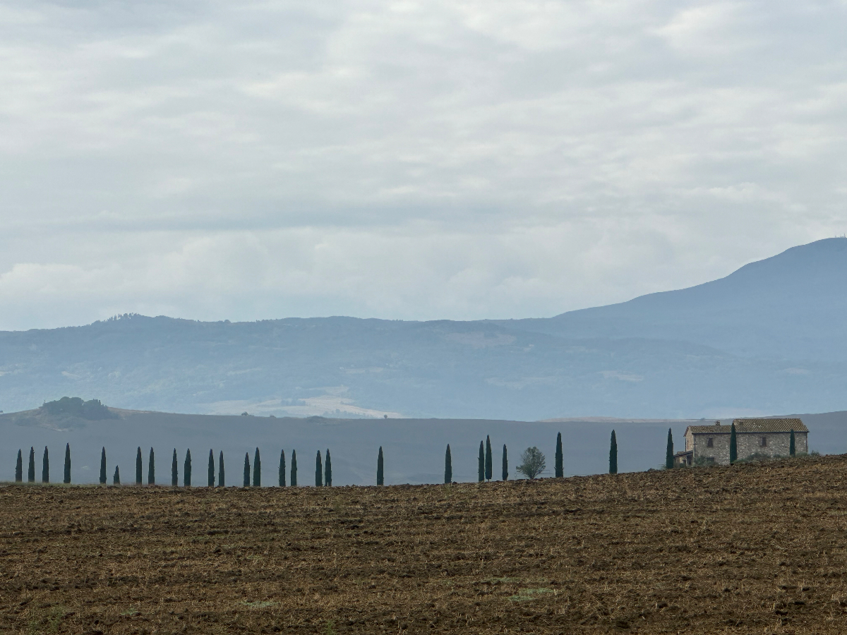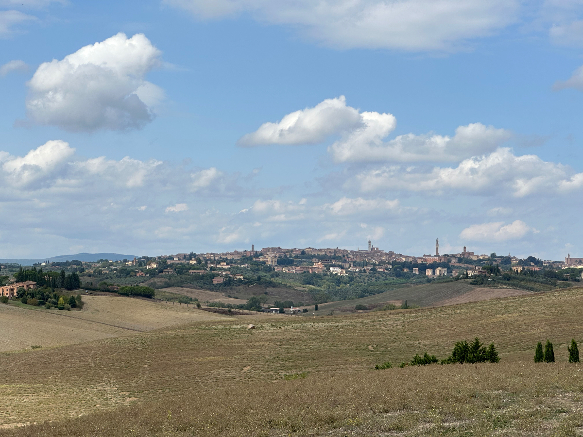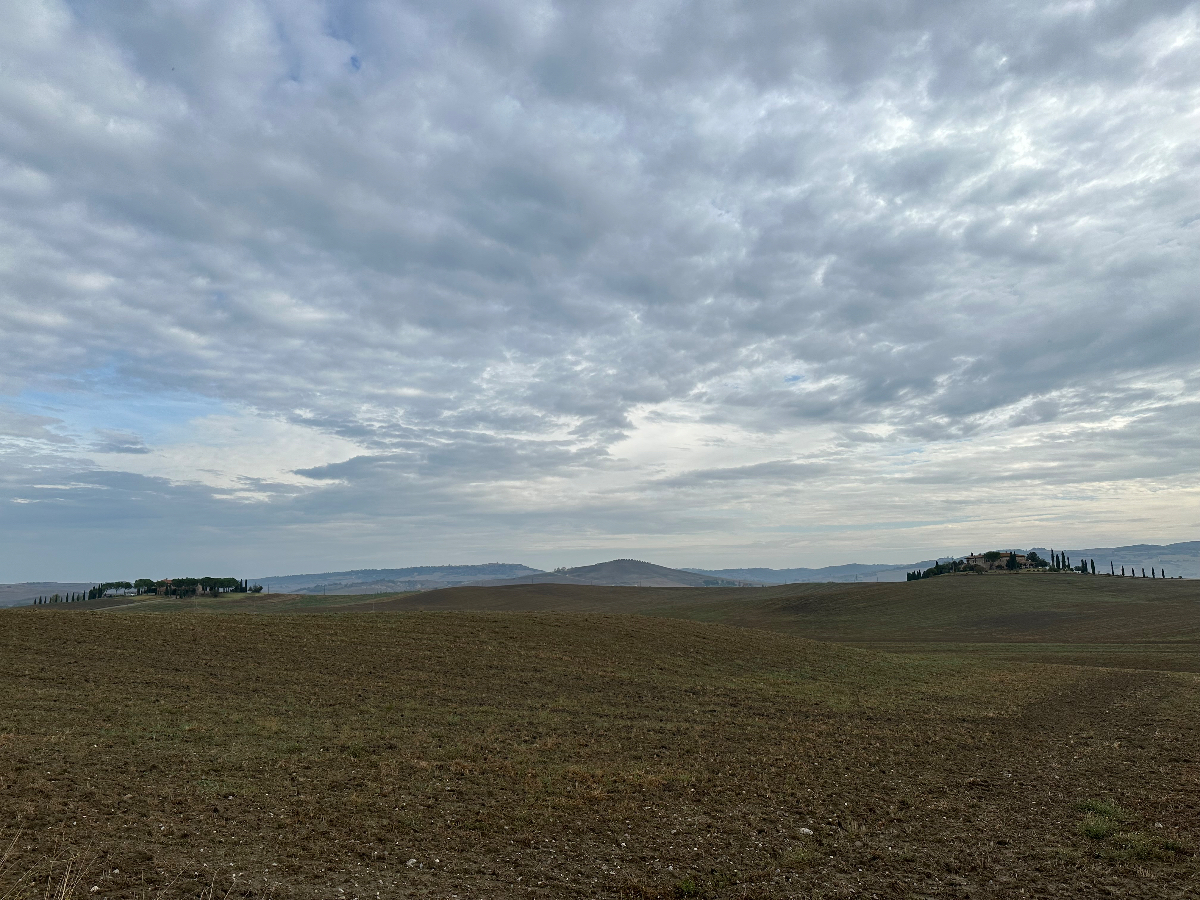 Eigentlich wollte ich kein Wort mehr zu den Betten, speziell den Matratzen verlieren, aber das Bett der letzten Nacht ist es wert, erwähnt zu werden. Kurz gesagt, es war die mit Abstand schlechteste Liegestatt meiner Reise, denn Bett darf man so etwas gar nicht nennen. Eine Art aufklappbares Notbett mit einer Matratze, die sich beim Hinsetzen schon durchbiegt. Beim Hineinlegen macht man gleich ein U, Kopf und Füße oben, der Hintern tief eingesunken, fast Bodenkontakt. Ich konnte das Ende der Nacht in diesem Folterbett kaum erwarten. Zum Frühstück esse ich die vier Mandarinen, die ich gestern hier um 4 Euro gekauft habe. Beim Blick nach Draußen hebt sich meine Laune auch nicht, es regnet und es hat gerad mal 15 Grad. Heute habe ich erstmal zwei Schichten unter der Regenjacke an. Durch das Dorf hinauf, dann geht es aber für zehn Kilometer kurvenreich hinunter ins Tal. Außer einem Pferd, das nach einer Kurve gemächlich die Fahrbahn quert, und vier Rehen am Straßenrand bin ich allein unterwegs. Trotz des schlechten Wetters ist die Schönheit dieser Gegend offensichtlich, trotz Nebel und Nieselregen. Bald erreiche ich die Abzweigung zu Bagni San Filippo, warme Quellen, die zu besuchen mir sehr empfohlen wurde. Danke Sepp für den Tipp, das Wetter hat leider einen Strich durch die Rechnung gemacht. Es geht wieder Hügel rauf und Hügel runter, so viele Fotomotive, wenn es nur schöner wäre…. Bald nieselt es nur noch, aber die Regenjacke vertrage ich wegen der Temperatur trotzdem. Ich muss sogar einmal stehenbleiben, um Socken anzuziehen, so kalt ist mir in den offenen Sandalen, speziell durch den Fahrtwind bei den Abfahrten. Total uncooles Touristenouting, kurze Radlerhose, dazu Sandalen mit Socken, aber der Zweck heiligt die Mittel ;-) Ich werde heute aber sicher noch ins Schwitzen kommen, dann sind die Socken ohnehin wieder weg. Wieder befahre ich den Franziskusweg, mit vielen Pilgern, die mir entgegenkommen. Mit einer Französin unterhalte ich mich kurz, als ich gerade meine Regenhaube vom Helm nehme, es hat aufgehört zu regnen. Sie ist nur wegen der Toskana hierhergekommen und schwärmt in den höchsten Tönen von der Schönheit der Toskana, ich stimme ihr vollkommen zu. Von allem, was ich in Italien schon gesehen habe, gehört mein Herz der Toskana. Besonders dieser Landstrich, durch den ich heute fahre, das Val d`Orcia ist atemberaubend schön. Es ist wie eine Fahrt durch ein Bilderbuch, mit der Erkenntnis, jede neu aufgeschlagene Seite ist noch schöner als die vorangegangene Seite es schon war. Dazu bessert sich auch das Wetter langsam, es kommt immer wieder kurz die Sonne durch. Ich könnte ständig stehenbleiben, um zu fotografieren, aber das ist zu umständlich. Wer sehen möchte was ich sehe, muss ohnehin herkommen, um es selbst zu erleben :-) In Torrenieri, ungefähr zur Hälfte der Strecke, gönne ich mir ein Frühstück. Es ist das erste Mal, dass ich mich mit Englisch nicht verständlich machen kann. Wenn Hemma hören könnte, was ich da auf Italienisch daherstammle …… (Hemma, Du bist eine ganz tolle Lehrerin :-) ich bin ein ganz schlechter Schüler ;-) Aber das Frühstück ist gesichert. Es geht weiter, wie bisher, nur dass der Verkehr jetzt massiv zugenommen hat. Da bin ich immer froh, wenn ich die ss2 mal kurz verlassen kann, um auf einer Schotterpiste Franziskuspilger zu sein. Siena taucht in der Ferne auf. Bevor ich Siena erreiche, muss ich noch eine Bergwertung absolvieren, teils auf Schotterpiste, teils auf Nebenstraßen, immer hinauf, schwitz. Durch ein mächtiges Tor fahre ich in das Zentrum, aber sehr bald muss ich das Rad schieben, es schieben sich maßen von Menschen durch die engen Gassen. Ich lasse das Rad einfach stehen, um ein paar Fotos zu machen. Dann suche ich meinen Weg zum Hotel, der Alternative. Hat alles geklappt, schnell einchecken und dann noch rechtzeitig in eine Trattoria zum Essen, Tortelloni mit Wildschweinragout, danach Tiramisu, dazu passend ein kleines Bier ;-) Das Hotel scheint ganz ok, das Bett fühlt sich hart an, also habe ich für zwei Nächte verlängert. Wäsche waschen steht wieder mal an, genauso wie die Kettenpflege dringend fällig ist, und Siena werde ich auch nochmals besuchen, eine Bushaltestelle habe ich direkt vor dem Hotel, ich freue mich auf diesen Tag off :-))