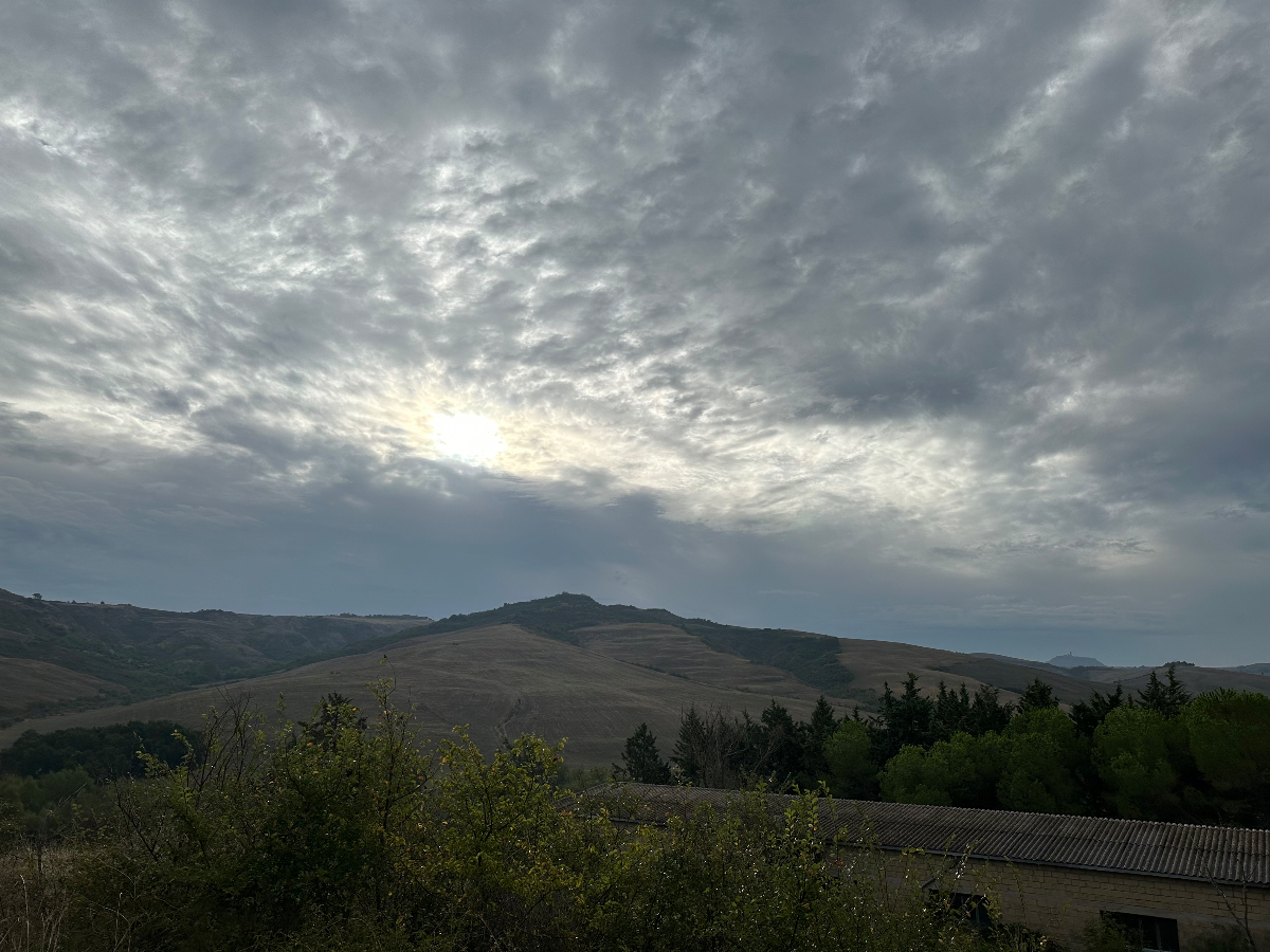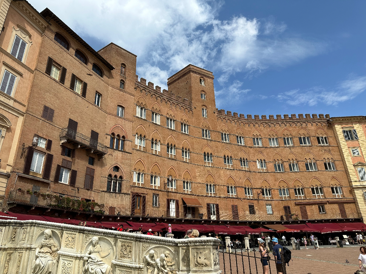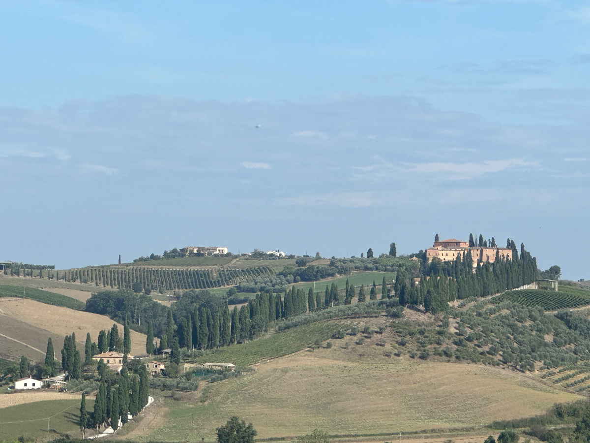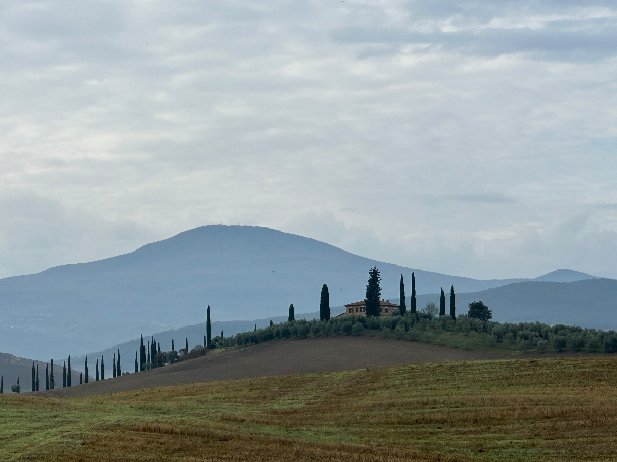 Eigentlich wollte ich kein Wort mehr zu den Betten, speziell den Matratzen verlieren, aber das Bett der letzten Nacht ist es wert, erwähnt zu werden. Kurz gesagt, es war die mit Abstand schlechteste Liegestatt meiner Reise, denn Bett darf man so etwas gar nicht nennen. Eine Art aufklappbares Notbett mit einer Matratze, die sich beim Hinsetzen schon durchbiegt. Beim Hineinlegen macht man gleich ein U, Kopf und Füße oben, der Hintern tief eingesunken, fast Bodenkontakt. Ich konnte das Ende der Nacht in diesem Folterbett kaum erwarten. Zum Frühstück esse ich die vier Mandarinen, die ich gestern hier um 4 Euro gekauft habe. Beim Blick nach Draußen hebt sich meine Laune auch nicht, es regnet und es hat gerad mal 15 Grad. Heute habe ich erstmal zwei Schichten unter der Regenjacke an. Durch das Dorf hinauf, dann geht es aber für zehn Kilometer kurvenreich hinunter ins Tal. Außer einem Pferd, das nach einer Kurve gemächlich die Fahrbahn quert, und vier Rehen am Straßenrand bin ich allein unterwegs. Trotz des schlechten Wetters ist die Schönheit dieser Gegend offensichtlich, trotz Nebel und Nieselregen. Bald erreiche ich die Abzweigung zu Bagni San Filippo, warme Quellen, die zu besuchen mir sehr empfohlen wurde. Danke Sepp für den Tipp, das Wetter hat leider einen Strich durch die Rechnung gemacht. Es geht wieder Hügel rauf und Hügel runter, so viele Fotomotive, wenn es nur schöner wäre…. Bald nieselt es nur noch, aber die Regenjacke vertrage ich wegen der Temperatur trotzdem. Ich muss sogar einmal stehenbleiben, um Socken anzuziehen, so kalt ist mir in den offenen Sandalen, speziell durch den Fahrtwind bei den Abfahrten. Total uncooles Touristenouting, kurze Radlerhose, dazu Sandalen mit Socken, aber der Zweck heiligt die Mittel ;-) Ich werde heute aber sicher noch ins Schwitzen kommen, dann sind die Socken ohnehin wieder weg. Wieder befahre ich den Franziskusweg, mit vielen Pilgern, die mir entgegenkommen. Mit einer Französin unterhalte ich mich kurz, als ich gerade meine Regenhaube vom Helm nehme, es hat aufgehört zu regnen. Sie ist nur wegen der Toskana hierhergekommen und schwärmt in den höchsten Tönen von der Schönheit der Toskana, ich stimme ihr vollkommen zu. Von allem, was ich in Italien schon gesehen habe, gehört mein Herz der Toskana. Besonders dieser Landstrich, durch den ich heute fahre, das Val d`Orcia ist atemberaubend schön. Es ist wie eine Fahrt durch ein Bilderbuch, mit der Erkenntnis, jede neu aufgeschlagene Seite ist noch schöner als die vorangegangene Seite es schon war. Dazu bessert sich auch das Wetter langsam, es kommt immer wieder kurz die Sonne durch. Ich könnte ständig stehenbleiben, um zu fotografieren, aber das ist zu umständlich. Wer sehen möchte was ich sehe, muss ohnehin herkommen, um es selbst zu erleben :-) In Torrenieri, ungefähr zur Hälfte der Strecke, gönne ich mir ein Frühstück. Es ist das erste Mal, dass ich mich mit Englisch nicht verständlich machen kann. Wenn Hemma hören könnte, was ich da auf Italienisch daherstammle …… (Hemma, Du bist eine ganz tolle Lehrerin :-) ich bin ein ganz schlechter Schüler ;-) Aber das Frühstück ist gesichert. Es geht weiter, wie bisher, nur dass der Verkehr jetzt massiv zugenommen hat. Da bin ich immer froh, wenn ich die ss2 mal kurz verlassen kann, um auf einer Schotterpiste Franziskuspilger zu sein. Siena taucht in der Ferne auf. Bevor ich Siena erreiche, muss ich noch eine Bergwertung absolvieren, teils auf Schotterpiste, teils auf Nebenstraßen, immer hinauf, schwitz. Durch ein mächtiges Tor fahre ich in das Zentrum, aber sehr bald muss ich das Rad schieben, es schieben sich maßen von Menschen durch die engen Gassen. Ich lasse das Rad einfach stehen, um ein paar Fotos zu machen. Dann suche ich meinen Weg zum Hotel, der Alternative. Hat alles geklappt, schnell einchecken und dann noch rechtzeitig in eine Trattoria zum Essen, Tortelloni mit Wildschweinragout, danach Tiramisu, dazu passend ein kleines Bier ;-) Das Hotel scheint ganz ok, das Bett fühlt sich hart an, also habe ich für zwei Nächte verlängert. Wäsche waschen steht wieder mal an, genauso wie die Kettenpflege dringend fällig ist, und Siena werde ich auch nochmals besuchen, eine Bushaltestelle habe ich direkt vor dem Hotel, ich freue mich auf diesen Tag off :-))