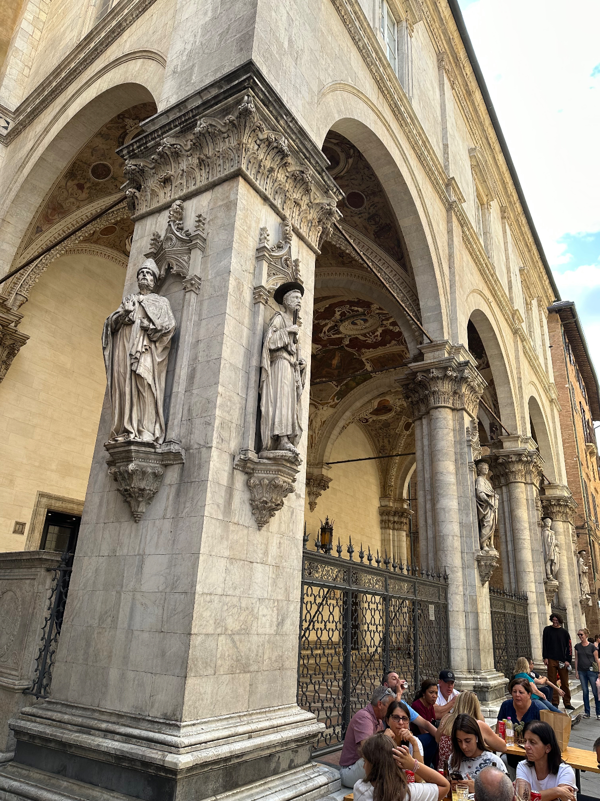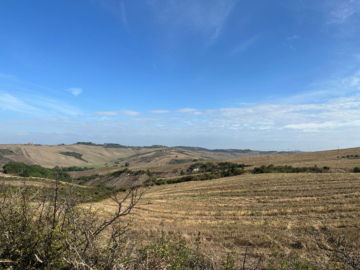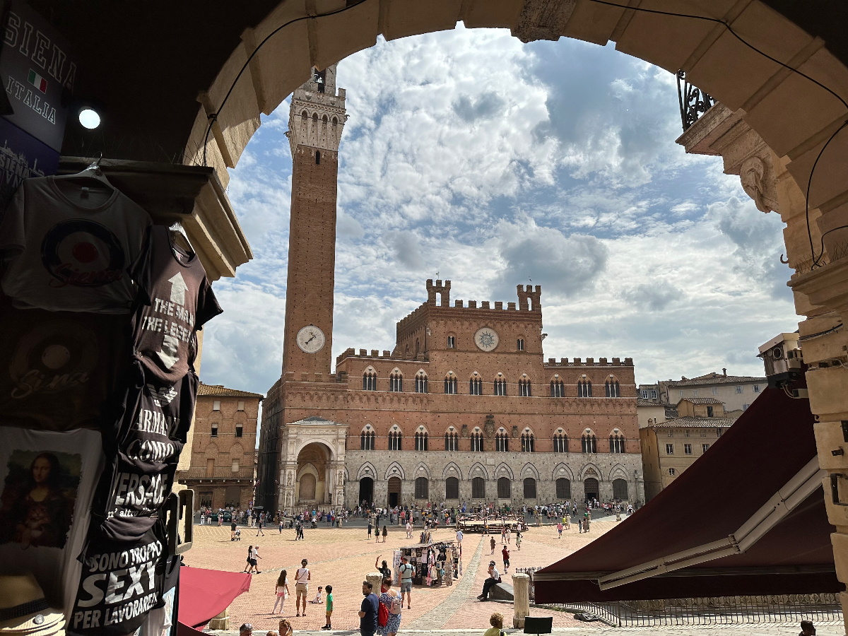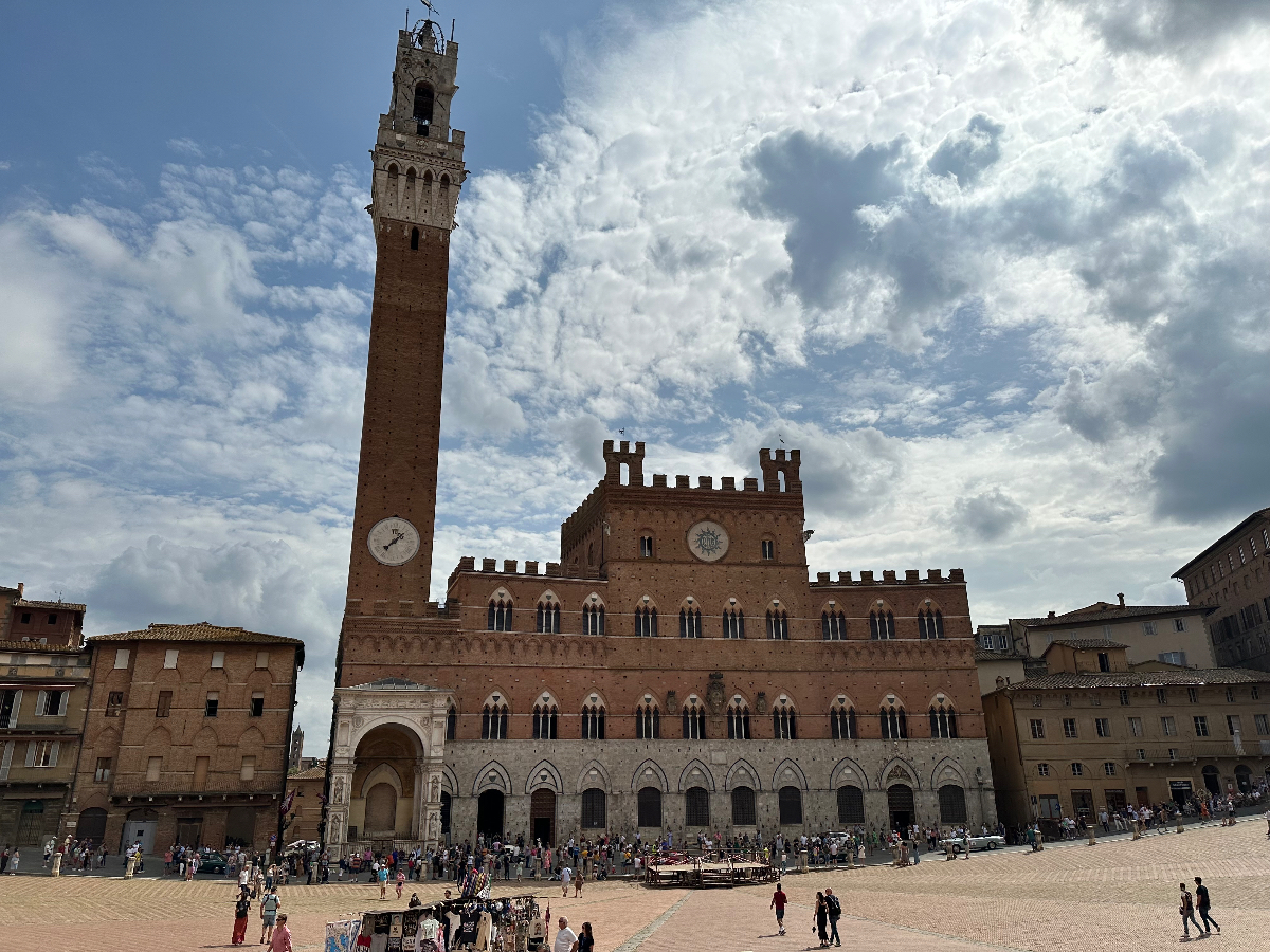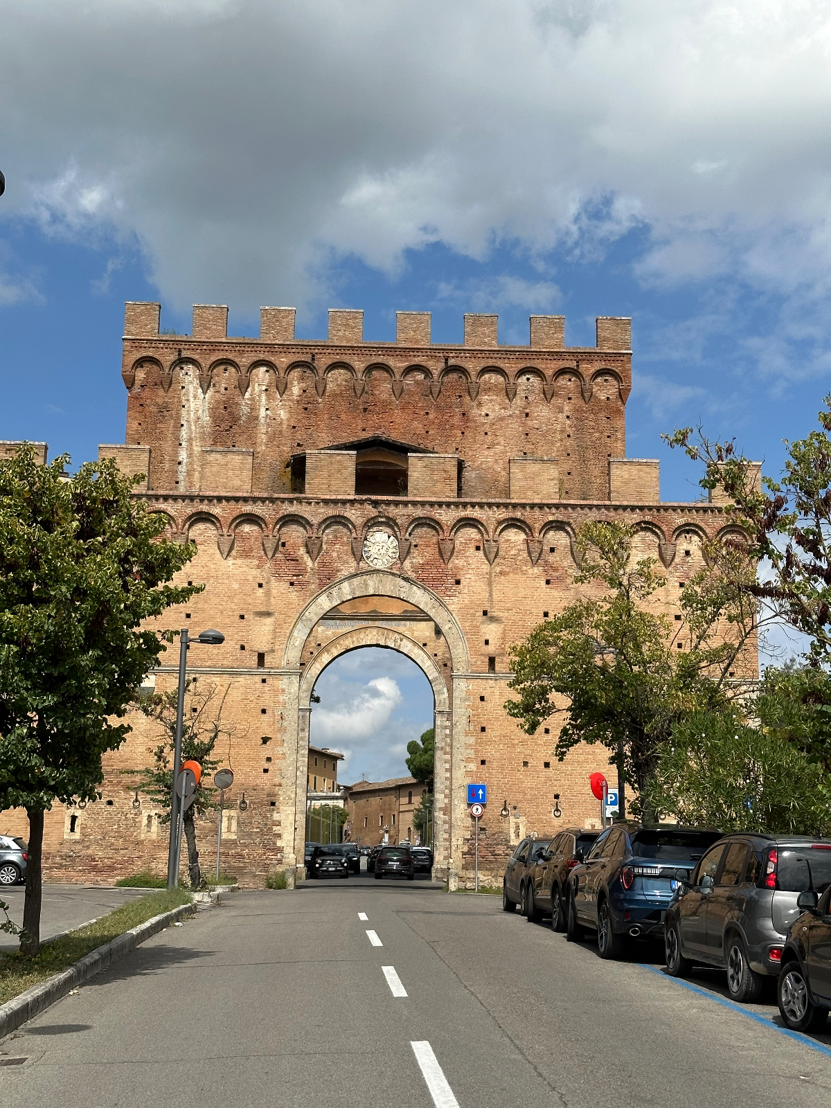 Eigentlich wollte ich kein Wort mehr zu den Betten, speziell den Matratzen verlieren, aber das Bett der letzten Nacht ist es wert, erwähnt zu werden. Kurz gesagt, es war die mit Abstand schlechteste Liegestatt meiner Reise, denn Bett darf man so etwas gar nicht nennen. Eine Art aufklappbares Notbett mit einer Matratze, die sich beim Hinsetzen schon durchbiegt. Beim Hineinlegen macht man gleich ein U, Kopf und Füße oben, der Hintern tief eingesunken, fast Bodenkontakt. Ich konnte das Ende der Nacht in diesem Folterbett kaum erwarten. Zum Frühstück esse ich die vier Mandarinen, die ich gestern hier um 4 Euro gekauft habe. Beim Blick nach Draußen hebt sich meine Laune auch nicht, es regnet und es hat gerad mal 15 Grad. Heute habe ich erstmal zwei Schichten unter der Regenjacke an. Durch das Dorf hinauf, dann geht es aber für zehn Kilometer kurvenreich hinunter ins Tal. Außer einem Pferd, das nach einer Kurve gemächlich die Fahrbahn quert, und vier Rehen am Straßenrand bin ich allein unterwegs. Trotz des schlechten Wetters ist die Schönheit dieser Gegend offensichtlich, trotz Nebel und Nieselregen. Bald erreiche ich die Abzweigung zu Bagni San Filippo, warme Quellen, die zu besuchen mir sehr empfohlen wurde. Danke Sepp für den Tipp, das Wetter hat leider einen Strich durch die Rechnung gemacht. Es geht wieder Hügel rauf und Hügel runter, so viele Fotomotive, wenn es nur schöner wäre…. Bald nieselt es nur noch, aber die Regenjacke vertrage ich wegen der Temperatur trotzdem. Ich muss sogar einmal stehenbleiben, um Socken anzuziehen, so kalt ist mir in den offenen Sandalen, speziell durch den Fahrtwind bei den Abfahrten. Total uncooles Touristenouting, kurze Radlerhose, dazu Sandalen mit Socken, aber der Zweck heiligt die Mittel ;-) Ich werde heute aber sicher noch ins Schwitzen kommen, dann sind die Socken ohnehin wieder weg. Wieder befahre ich den Franziskusweg, mit vielen Pilgern, die mir entgegenkommen. Mit einer Französin unterhalte ich mich kurz, als ich gerade meine Regenhaube vom Helm nehme, es hat aufgehört zu regnen. Sie ist nur wegen der Toskana hierhergekommen und schwärmt in den höchsten Tönen von der Schönheit der Toskana, ich stimme ihr vollkommen zu. Von allem, was ich in Italien schon gesehen habe, gehört mein Herz der Toskana. Besonders dieser Landstrich, durch den ich heute fahre, das Val d`Orcia ist atemberaubend schön. Es ist wie eine Fahrt durch ein Bilderbuch, mit der Erkenntnis, jede neu aufgeschlagene Seite ist noch schöner als die vorangegangene Seite es schon war. Dazu bessert sich auch das Wetter langsam, es kommt immer wieder kurz die Sonne durch. Ich könnte ständig stehenbleiben, um zu fotografieren, aber das ist zu umständlich. Wer sehen möchte was ich sehe, muss ohnehin herkommen, um es selbst zu erleben :-) In Torrenieri, ungefähr zur Hälfte der Strecke, gönne ich mir ein Frühstück. Es ist das erste Mal, dass ich mich mit Englisch nicht verständlich machen kann. Wenn Hemma hören könnte, was ich da auf Italienisch daherstammle …… (Hemma, Du bist eine ganz tolle Lehrerin :-) ich bin ein ganz schlechter Schüler ;-) Aber das Frühstück ist gesichert. Es geht weiter, wie bisher, nur dass der Verkehr jetzt massiv zugenommen hat. Da bin ich immer froh, wenn ich die ss2 mal kurz verlassen kann, um auf einer Schotterpiste Franziskuspilger zu sein. Siena taucht in der Ferne auf. Bevor ich Siena erreiche, muss ich noch eine Bergwertung absolvieren, teils auf Schotterpiste, teils auf Nebenstraßen, immer hinauf, schwitz. Durch ein mächtiges Tor fahre ich in das Zentrum, aber sehr bald muss ich das Rad schieben, es schieben sich maßen von Menschen durch die engen Gassen. Ich lasse das Rad einfach stehen, um ein paar Fotos zu machen. Dann suche ich meinen Weg zum Hotel, der Alternative. Hat alles geklappt, schnell einchecken und dann noch rechtzeitig in eine Trattoria zum Essen, Tortelloni mit Wildschweinragout, danach Tiramisu, dazu passend ein kleines Bier ;-) Das Hotel scheint ganz ok, das Bett fühlt sich hart an, also habe ich für zwei Nächte verlängert. Wäsche waschen steht wieder mal an, genauso wie die Kettenpflege dringend fällig ist, und Siena werde ich auch nochmals besuchen, eine Bushaltestelle habe ich direkt vor dem Hotel, ich freue mich auf diesen Tag off :-))