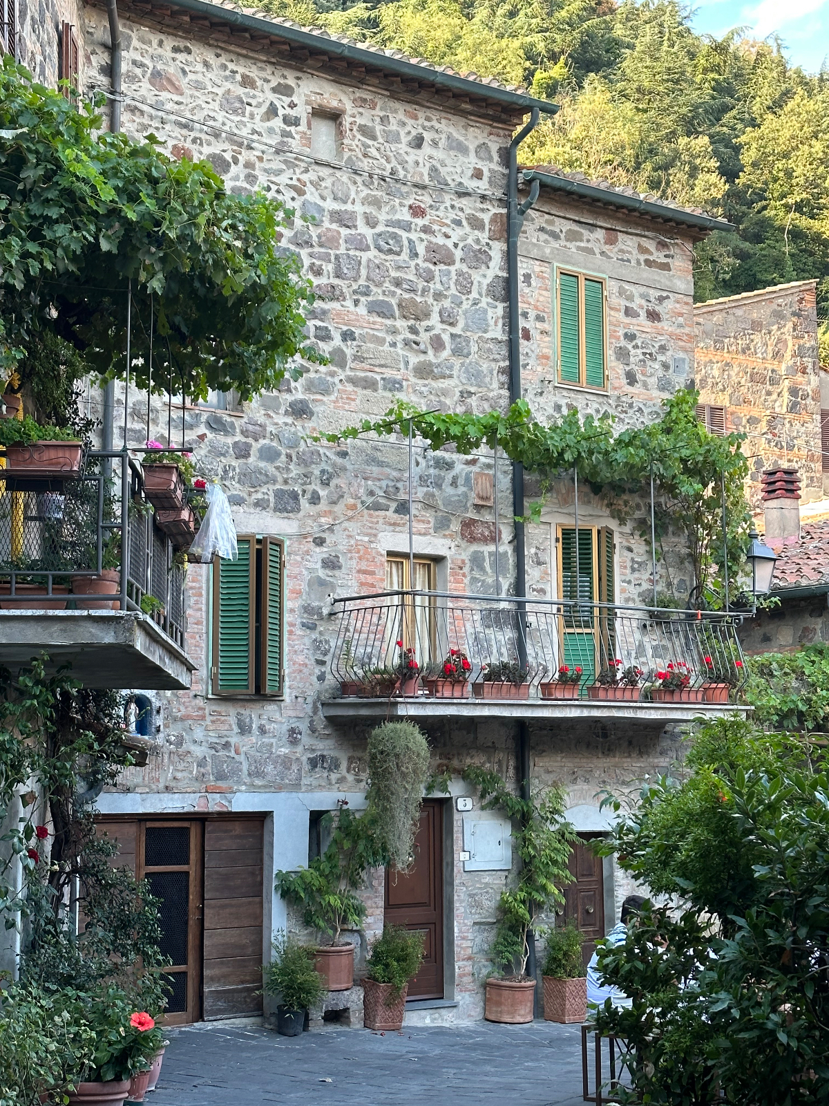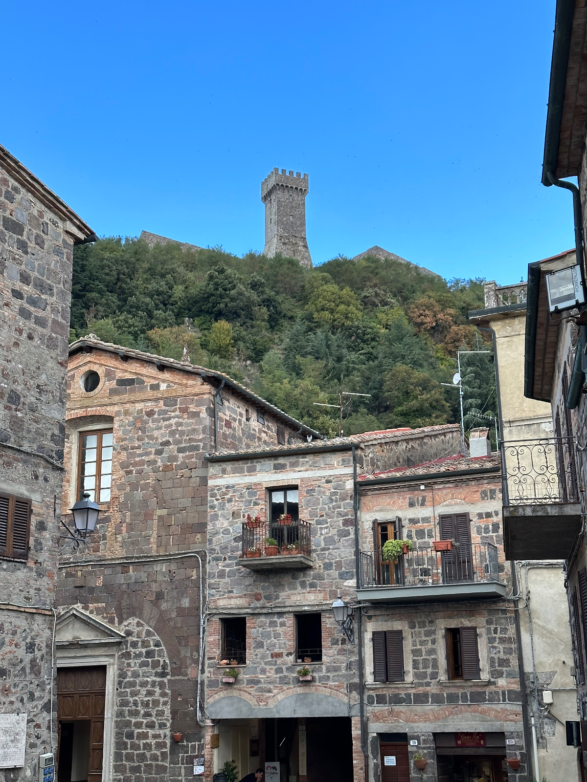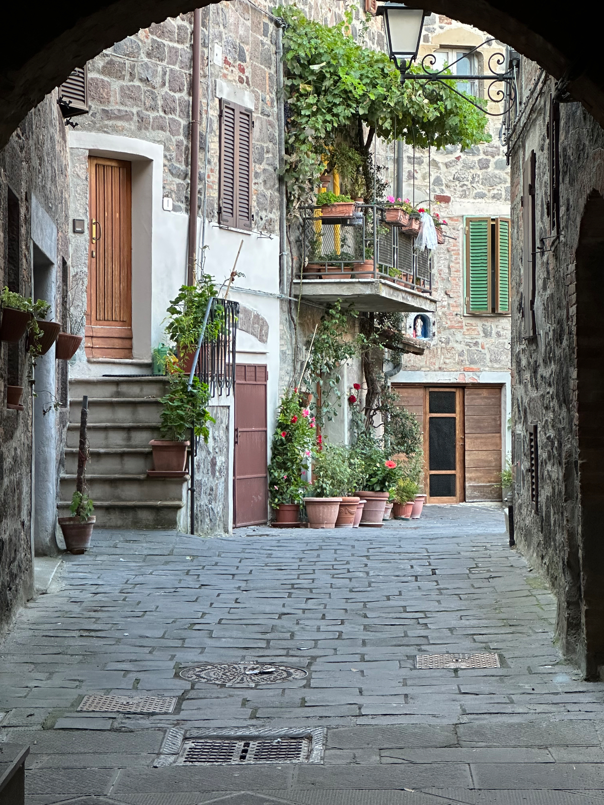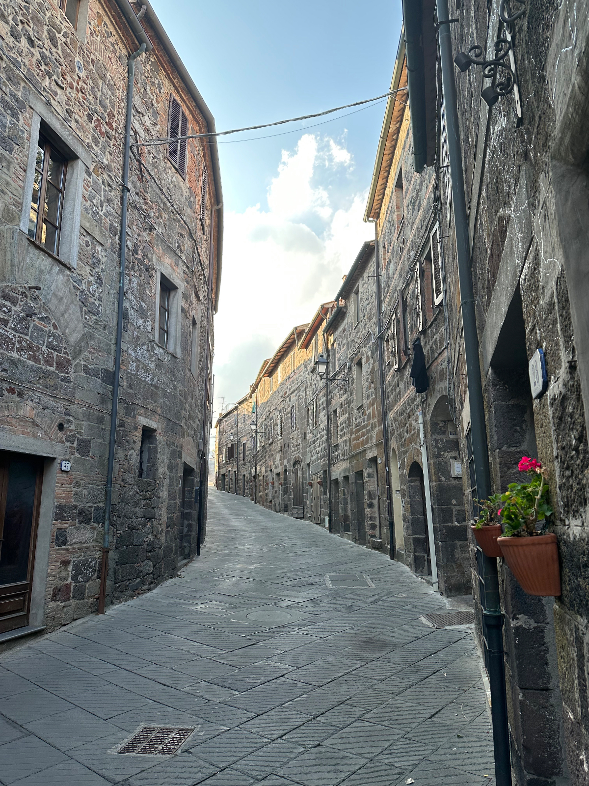 Ich erreiche Radicofani mit den ersten Regentropfen, es sieht nach Gewitter aus, aber es donnert nur in der Ferne. Ein sehr altes Bergdorf, eine Festung, und ein Turm den die Deutschen noch schnell vor Endes des Krieges weggesprengt haben. Ganz hinauf kann man leider nicht, es ist abgesperrt. Ich wohne heute in einem dieser historischen Gebäude. Meine Wohneinheit liegt auf Souterrain, vor dem Fenster spazieren Leute vorbei. Aber es ist sehr stimmig und sehr schön neu restauriert. Rohe Steinwände, neu verputzte Wände, die alten Holzbalken, ein schönes neues Badezimmer, eine Küchenzeile, und alles sehr sauber und gepflegt :-) Für Morgen habe ich in Siena reserviert, auch eine Buchungsbestätigung erhalten, dann aber einen Anruf erhalten, dass doch kein Zimmer frei ist. Es wurde mir aber eine Alternative angeboten, die ich akzeptiere, bin neugierig….