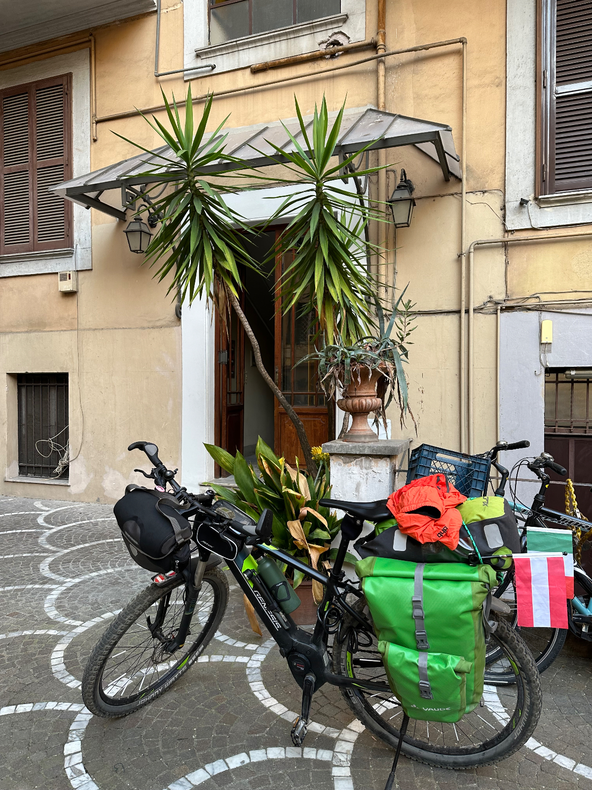 Nun hat also der zweite Teil von Tour-Retour, die retour Tour begonnen, mal sehen ob es wieder 21 Tage werden, bis ich in Graz absteige. Bis dahin heißt es aber erst mal kräftig strampeln. Letzte Nacht habe ich ganz schlecht geschlafen, zuerst konnte ich lange nicht einschlafen, und bin dann immer wieder aufgewacht mit dem Gefühl, noch gar nicht geschlafen zu haben. Mein Schlaftracking sagt ich habe 6:41 geschlafen und davon 2:18 Tiefschlaf, seltsam wie sehr sich das Empfinden von der Realität unterscheiden kann. Ausgeschlafen bin ich jedenfalls nicht, als ich zusammenpacke und das Zimmer räume. Pasquale, der Vermieter, ist ein sehr netter und freundlicher Kerl, er ist um 8 Uhr gekommen, um sich zu verabschieden. Speziell die Privatvermieter ersuchen mich oft um ein 10er Rating auf Booking.com, doch diese Gefälligkeit sehe ich absolut als kontraproduktiv. Auch ich schau mir beim Buchen immer die Ratings an, die nicht zuletzt die Entscheidung beeinflussen. Und nicht erst einmal musste ich feststellen, dass eben einige Bewertungen reine Gefälligkeiten waren, so nach dem Motto, soll er sie haben, ich komm da eh nicht nochmal hin. Ich werde daher immer meine wahren Eindrücke übermitteln, ein 10er Rating war sowieso noch nie dabei!