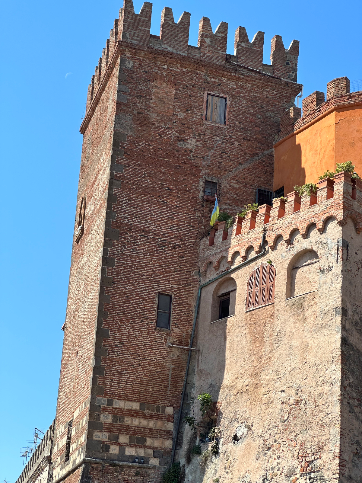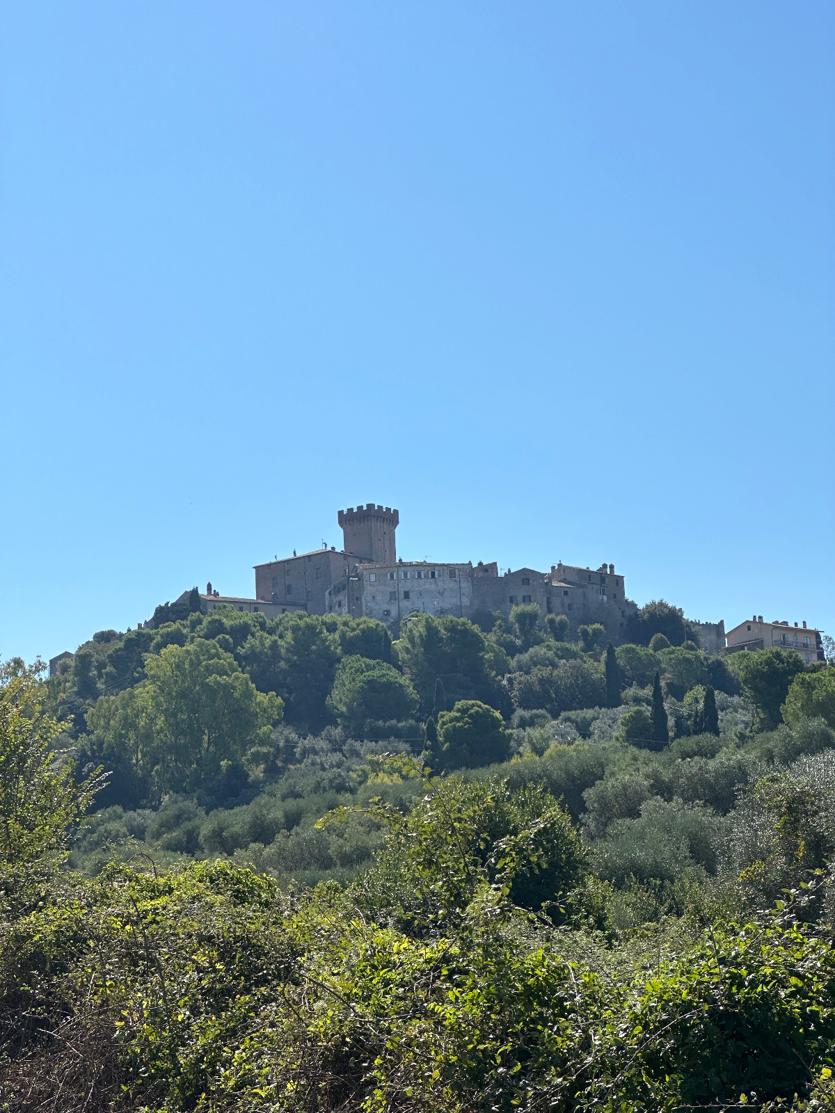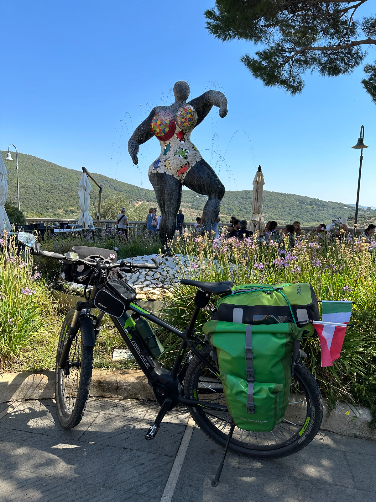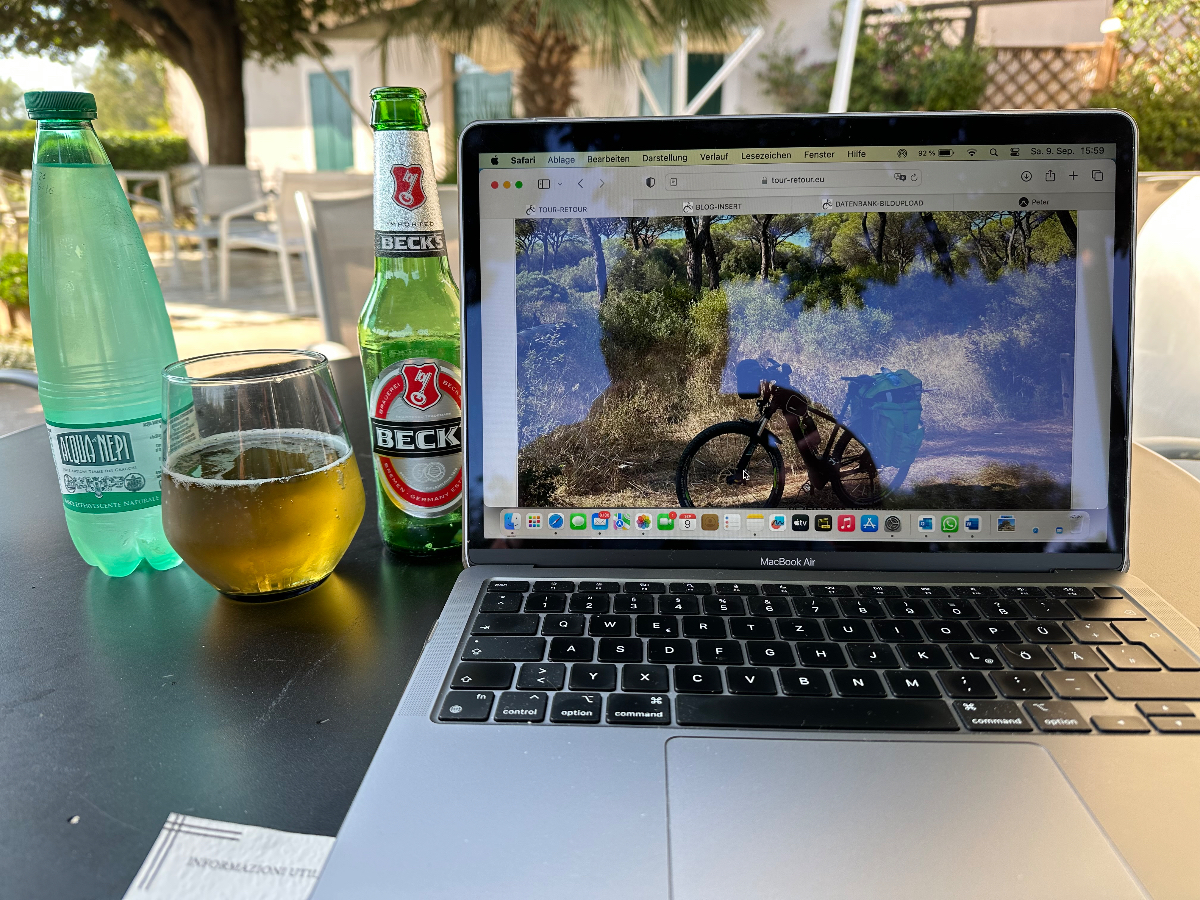 Wieder eine weiche Krippe, aber letzte Nacht habe ich das Bett ausgetrickst ;-) Es war ein Doppelbett mit geteilten Matratzen, und genau auf die Trennstelle habe ich mich gelegt, und bin nicht so tief eingesunken wie sonst mitten auf der Matratze. Dafür habe ich tief geschlafen, 8:06 Stunden und davon 3:11 Tiefschlaf. Ich vermute, die gestrige „Brettljause“ war nicht ganz astrein, in drei Durchgängen hat sich heute nach dem Aufstehen mein Körper von allem befreit, was offensichtlich nicht ganz in Ordnung war. Ein kleines Frühstück ließ ich mir dann aber gut schmecken. Das Navi lotst mich dann zuverlässig aus der Stadt, bis ich halt wieder auf einem Weg lande, der sich als Sackgasse entpuppt. Die ersten Mehrkilometer also schon am Morgen absolviert, es sollen nicht die letzten bleiben. Es geht zuerst auf einer heute nicht so stark befahrenen Straße dahin, wohl weil Samstag ist. Mir ist´s recht. Mit voller Turbounterstützung schraube ich mich über Serpentinen einen Berg hoch, und freue mich schon auf die Abfahrt, die mich auf der anderen Seite erwartet. Aber sie kommt nicht. Es geht immer weiter hinauf, und oben bleibe ich dann auch. Ich durchradle eine wunderschöne Toskanalandschaft, abgeerntete Felder wechseln sich mit weitläufigen Olivenhainen und Weinhängen ab, dazwischen tauchen oben auf den Hügeln Kirch-oder Wehrtürme von Ansiedelungen auf, an denen ich vorbeifahre. Es ist schon fast Mittag und bereits sehr heiß, als ich einer solchen Stadt Rast mache, Capalbio. Hoch oben thront eine Burg, es scheint ein beliebtes Ausflugsziel zu sein. Ich fülle mit einem Liter Wasser meine Speicher auf und fahre nach einer halben Stunde weiter. Irgendwann geht es dann doch wieder hinunter, eine Wohltat. Ich kämpfe den ganzen Tag mit dem Wind, der zumeist ein Gegenwind ist, und mir wegen der zusätzlichen Anstrengung, keine Abkühlung bringt. Bei meiner Buchung für heute habe ich ein Quartier an der Küste gewählt, einmal noch ans Meer, dachte ich mir dabei. Die Küste kommt und kommt aber nicht in Sicht, es ist bretteleben, die Berge liegen hinter mir, die Straßen endlos lang gerade, und kein Schatten bei dieser Hitze. An einer Abzweigung weist ein Schild nach Montalto die Castro, mein heutiges Ziel, eigentlich. Das Navi schickt mich aber in die andere Richtung, der ich folge, in der Hoffnung bald an der Küste zu sein. Ich erreiche Montalto die Castro auch irgendwann, aber der Ort liegt auf einem Hügel, der Umweg war sinnlos, wieder einmal. Das Navi schickt mich nach einigen Wirren für einige weitere km hinunter ins Tal. Dann kommt die Aufforderung, in einen Singletrail einzubiegen. Es reicht! Ich schaue auf Google, wo mein Hotel ist, und folge Google die gesamte Strecke wieder zurück hinauf. Ich zweifle schon an der Richtigkeit von Google, da es mich auf eine Fernverkehrsstrasse schickt, mit dem Hinweis, das Ziel sei in 300m erreicht. Aber es stimmt, das Hotel liegt an dieser Straße. Passt irgendwie eh zum heutigen Tag, nach 96km :-( Das Zimmer ist ok, das Restaurant öffnet erst um 20 Uhr. Seit einer Stunde ist es unglaublich laut geworden im Haus. Endlose Schreie in einer mir nicht bekannten Sprache, wildes Getrampel in den Gängen, Türen werden laut zugeschlagen, es ist als ob die Vandalen eingefallen wären. Ich war gerade an der Rezeption unten um zu klären, ob ich vielleicht früher essen könne. Frage, haben sie reserviert? Erstauntes Kopfschütteln meinerseits, und dann der Hammer, kein Platz für eine Person, vielleicht irgendwann später!? Geschenkt. Ich habe zum Glück noch einen Müsliriegel, und morgen beim Frühstück fülle ich wieder ordentlich auf ;-) Nach der heutigen Tour habe ich für morgen kürzer geplant, und diesmal wirklich an der Küste, hoffentlich! Und am Montag bin ich in Rom :-)))