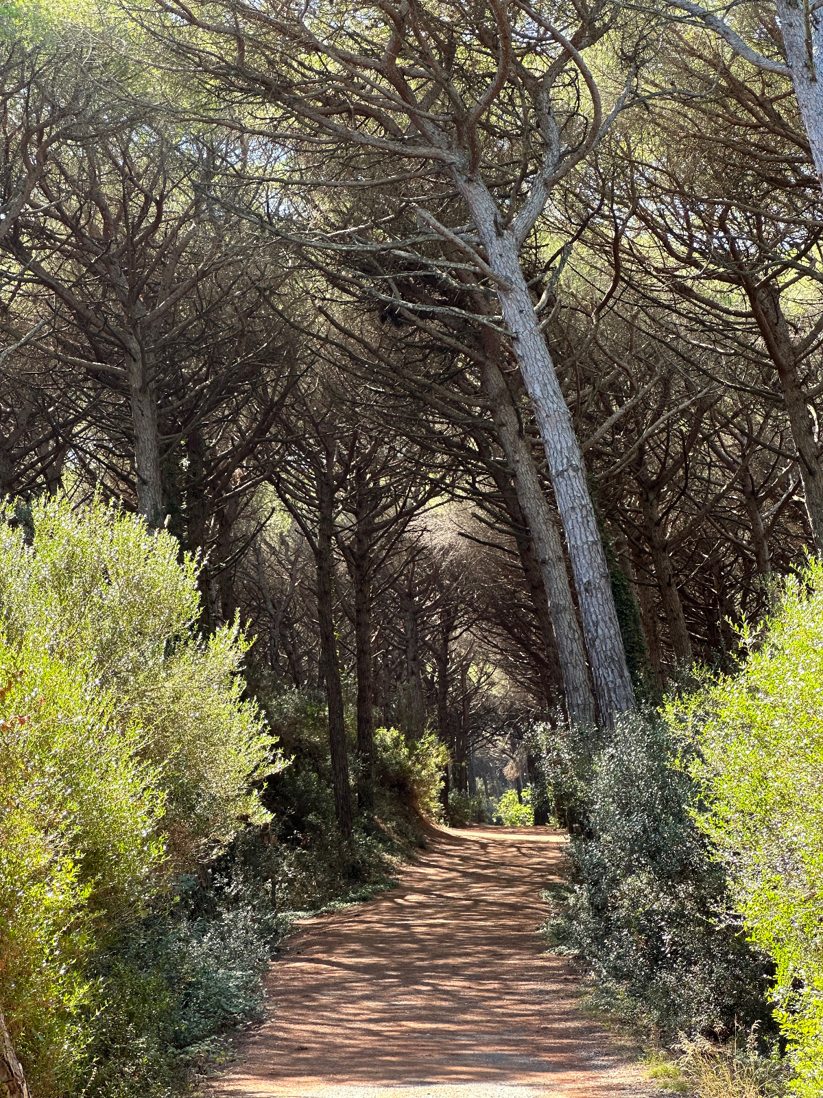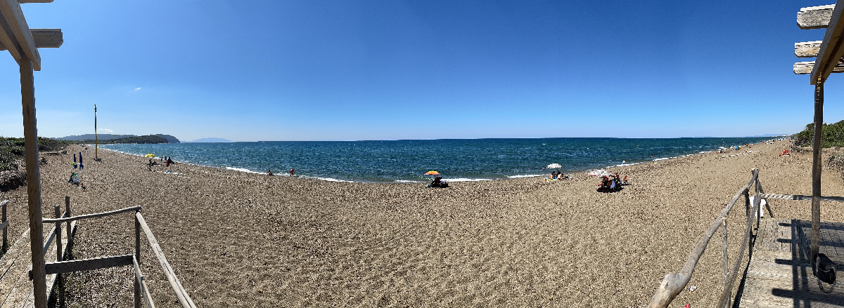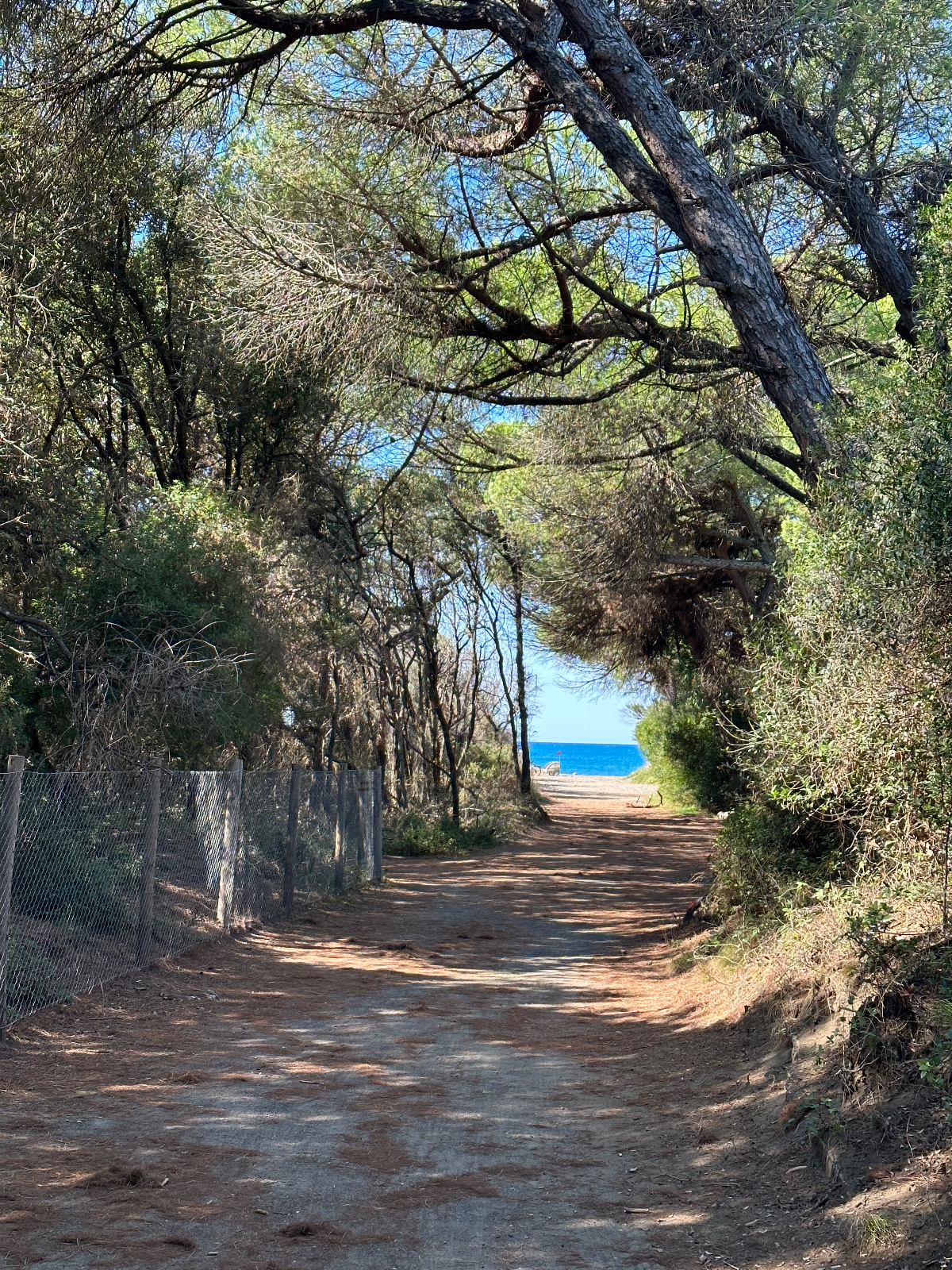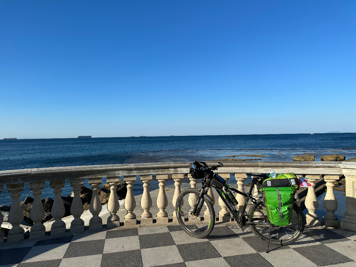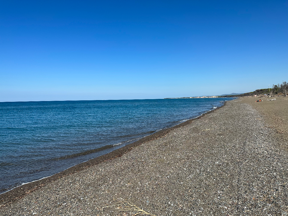 Der gestrige Tag hat geendet, wie er begonnen hat. Kein Frühstück, kein Abendessen. Dazwischen ein Brötchen, ein Eisbecher und ein Bier. Das heutige Frühstück ist demnach sehr umfangreich ausgefallen. Bisher waren die Eier im Buffet immer hartgekocht, so dachte ich auch beim heutigen Ei, das ich abzuschälen versuchte. Allerdings rann mir der Dotter des rohen Eis durch die Finger. Nun gut, war halt ein Versehen, das nächste wird sicher hart sein. War es wieder nicht, und so löffelte ich halt ein rohes, ganz leicht angekochtes Ei, natürlich gekühlt. Das Hotel lag in einem Vorort von Livorno, mit dem üblich heftigen Morgenverkehr war ich bald durch die Stadt am Hafen angelangt. Herrlich, endlich am Meer! Die Fähre nach Korsika liegt noch im Hafen, und draußen warten einige große Frachter auf ihre Einfahrt in den Hafen. Es geht einige Zeit entlang der Küste auf einem guten Radweg aus der Stadt hinaus, dann wie schon gewohnt, einreihen in den fließenden Verkehr und Gas, sprich alles geben, was die Beine – und der Motor - hergeben. Vom Meer weht eine steife Brise harauf, natürlich Gegenwind, war eh klar ;-) Es geht einige Hügel hinauf, das Meer immer in Riechweite. Bei einer Abfahrt in eine Senke muss ich sogar treten, so stark ist hier der Wind. Macht nichts, am Vormittag habe ich noch reichlich Power. Ich habe letzte Nacht sehr gut geschlafen, es war das bisher beste Bett meiner Reise, genau die richtige Härte, ich fühle mich fit :-) 45 km sind so schnell abgespult, ich bin um 10:30 schon bei Cecina. Dort beginnt ein Nationalpark, durch den man nur gehen UND radfahren darf. Über mehrere Kilometer erstreckt sich ein dichter Kiefernwald, es duftet unheimlich gut und ich mache meine erste Pause. Dieser Wald ist stellenweise mehrere 100m breit, immer zwischen der Straße und dem Meer gelegen. Nachdem ich lange gerade auf diesem wunderschönen Waldweg dahinradle, kommt eine Kurve in Richtung Meer. Laut Navi geht der Weg ganau daran entlang. Ich freu mich darauf, aber nur kurz, der Weg ist kein Weg mehr, es ist der Sand vom Strand, da habe ich mit meinem Gewicht keine Chance. Aber es lohnt ohnehin, hier abzusitzen und sich den Strand anzusehen. Obwohl so gut mit dem Fahrrad erreichbar, sind nur einige wenige Menschen an diesem Strand. Aus Treibholz und/oder abgebrochenen Ästen haben sie sich Unterstände gebaut. Das erinnert mich an unsere ersten Griechenland Urlaube als Jugendliche, wir hausten für Wochen auch nur wild an einem Strand, wir brauchten so wenig um glücklich zu sein. Heute darf´s schon ein bisserl mehr sein, eine Liege am Strand samt Sonnenschirm soll es wenn möglich schon sein ;-) Auf einem Alternativweg fahre ich dann noch einige Zeit durch diesen Duft-Wald, dann wieder hinaus auf die Straße. Mittlerweile ist es heiß geworden, im Wald war es so angenehm kühl, und kein Wind war zu spüren. Damit ist wieder Schluss. Das Fahren wird nun mühsamer, es zaaaaht sich dahin bei ständigem Gegen-oder Seitenwind. Nach einer langen Geraden halte ich bei einem Gemüsehändler an. Als sich mich aufrichte wird mir ganz schwindelig, ich bin benommen. Hab eh genug getrunken, denke ich mir, was ist da los? Tja, essen soll man halt auch. Mein kluges Handy hat mir heute geschrieben, dass ich seit 14 Tagen (heute Tag 15) einen erhöhten Energieverbrauch habe, 1880 Kalorien über dem Grundumsatz. Ich kaufe und esse 4 Tomaten und zwei Bananen und zwei Flaschen Wasser, setz mich in den Schatten, und warte bis es mir besser geht. Geht schon, und ist ja auch nicht mehr weit. Es ist magic, der Wind hat gedreht und bläst nun von hinten oder von der Seite, zur Straßenmitte hin. Ich biete ja auch genügend Angriffsfläche für den Wind. Dann endlich wieder ein Radweg, baulich getrennt von der Fahrbahn, super! Die Gegend in die ich nun komme, erscheint mir vertraut, war ich doch letztes Jahr mit Riki in diesem Gebiet im Urlaub. Für einen Tag waren wir an einem dieser wenig besuchten Strände, ganz viele schöne Erinnerungen kommen hoch. Ich halte nach einem Restaurant Ausschau, und finde es tatsächlich wieder. Hier habe ich uns mit Bier versorgt, das wir am Strand getrunken haben, und so mache ich es heute auch. Ein Holzsteig führt durch eine Wald mit Schirmakazien zum Strand und endet auf einer mit Schilf überdachten Bretterfläche. Mein Rad lasse ich zurück, wird schon noch da sein, wenn ich wiederkomme. Der Strand ist wie vor einem Jahr Jahr, beinahe menschenleer. Nur ganz verstreut stehen Sonnenschirme im Sand. Wie vor einem Jahr sitze ich unter dem Schilfdach im Halbschatten, genieße ein alkoholfreies Bier und hänge meinen Gedanken nach. Schon krass jetzt hier zu sein - und mit dem Rad hergekommen zu sein, heute sind es genau 1205 km geworden. Riki fährt ja nicht so gerne ein zweites mal an den selben Ort, aber ich wusste, hier komme ich nochmals her :-) Abgehakt ! Die letzten 5 von heute 85 km sind schnell erledigt, ich habe ein Quartier gebucht, das ich letztes Jahr im Vorüberfahren gesehen habe. Es ist eine große Anlage (kein all inkl.) mit Pizzeria, Gelateria, Waschsalon, Bike Shop und Werkstatt, Mini Market, Tennisplatz und drei Pools. Das Hauptklientel hier sind Italiener.