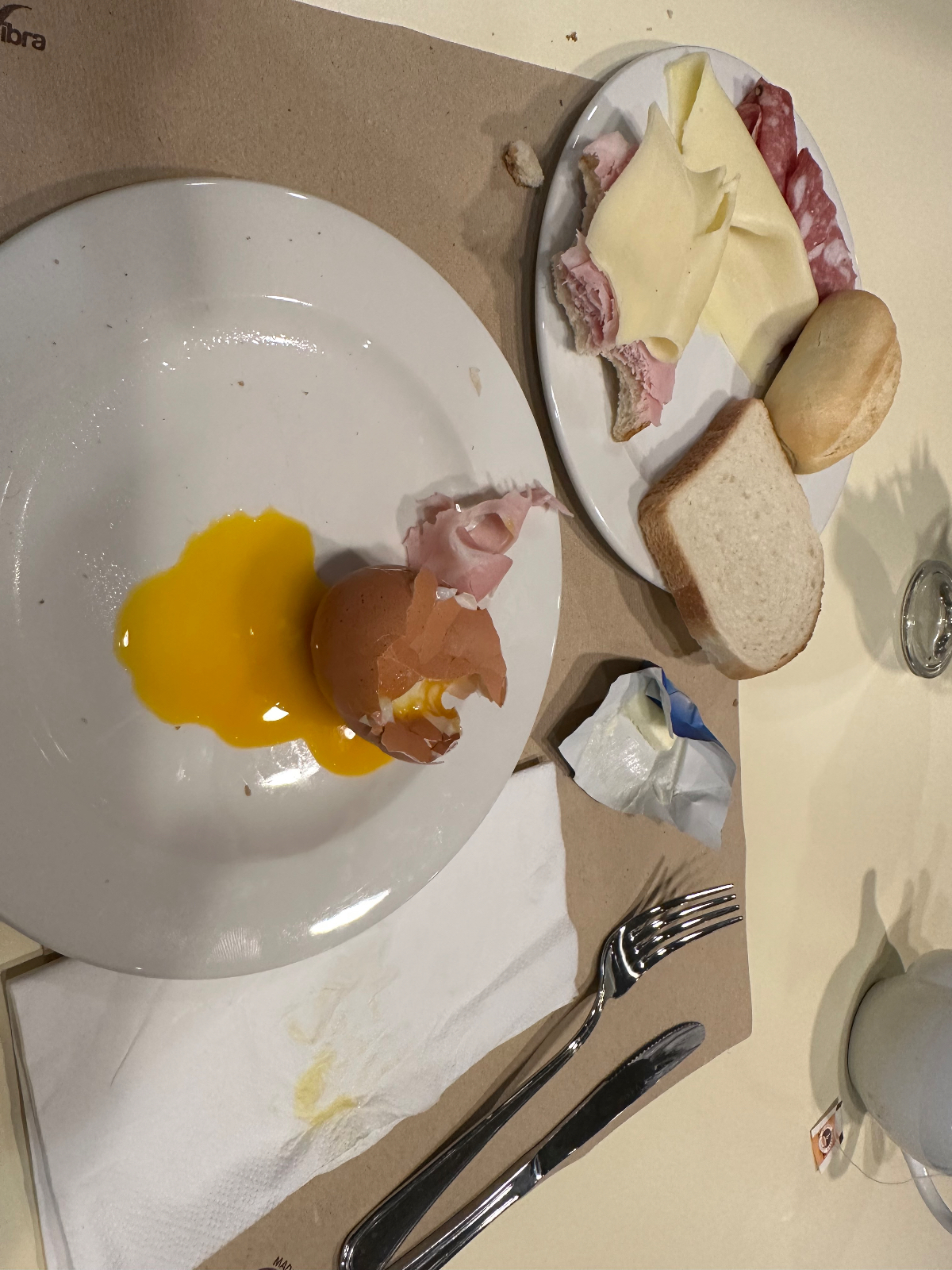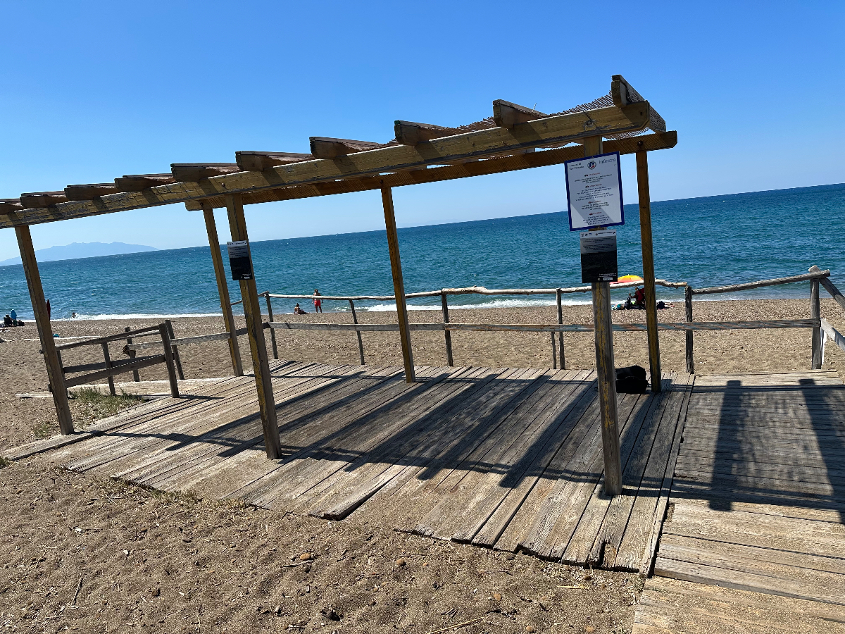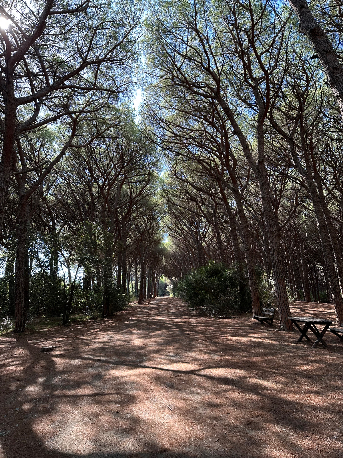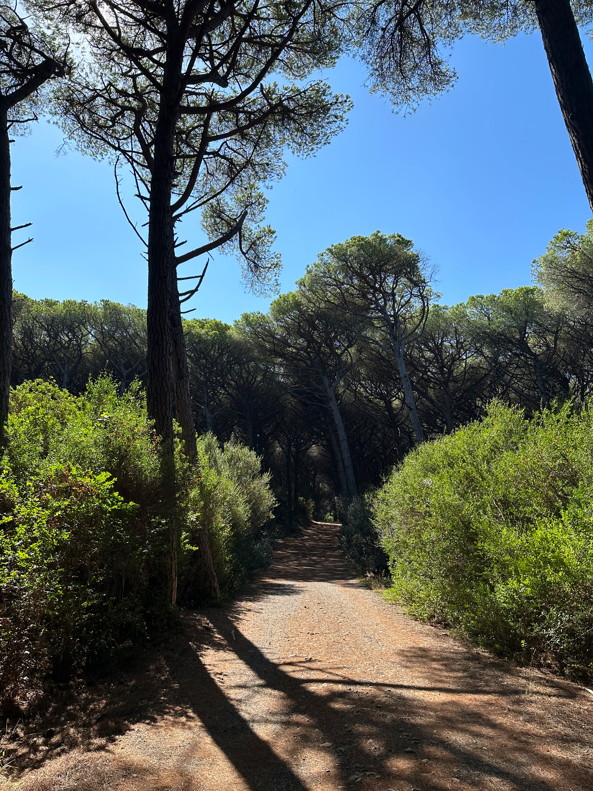 Der gestrige Tag hat geendet, wie er begonnen hat. Kein Frühstück, kein Abendessen. Dazwischen ein Brötchen, ein Eisbecher und ein Bier. Das heutige Frühstück ist demnach sehr umfangreich ausgefallen. Bisher waren die Eier im Buffet immer hartgekocht, so dachte ich auch beim heutigen Ei, das ich abzuschälen versuchte. Allerdings rann mir der Dotter des rohen Eis durch die Finger. Nun gut, war halt ein Versehen, das nächste wird sicher hart sein. War es wieder nicht, und so löffelte ich halt ein rohes, ganz leicht angekochtes Ei, natürlich gekühlt. Das Hotel lag in einem Vorort von Livorno, mit dem üblich heftigen Morgenverkehr war ich bald durch die Stadt am Hafen angelangt. Herrlich, endlich am Meer! Die Fähre nach Korsika liegt noch im Hafen, und draußen warten einige große Frachter auf ihre Einfahrt in den Hafen. Es geht einige Zeit entlang der Küste auf einem guten Radweg aus der Stadt hinaus, dann wie schon gewohnt, einreihen in den fließenden Verkehr und Gas, sprich alles geben, was die Beine – und der Motor - hergeben. Vom Meer weht eine steife Brise harauf, natürlich Gegenwind, war eh klar ;-) Es geht einige Hügel hinauf, das Meer immer in Riechweite. Bei einer Abfahrt in eine Senke muss ich sogar treten, so stark ist hier der Wind. Macht nichts, am Vormittag habe ich noch reichlich Power. Ich habe letzte Nacht sehr gut geschlafen, es war das bisher beste Bett meiner Reise, genau die richtige Härte, ich fühle mich fit :-) 45 km sind so schnell abgespult, ich bin um 10:30 schon bei Cecina. Dort beginnt ein Nationalpark, durch den man nur gehen UND radfahren darf. Über mehrere Kilometer erstreckt sich ein dichter Kiefernwald, es duftet unheimlich gut und ich mache meine erste Pause. Dieser Wald ist stellenweise mehrere 100m breit, immer zwischen der Straße und dem Meer gelegen. Nachdem ich lange gerade auf diesem wunderschönen Waldweg dahinradle, kommt eine Kurve in Richtung Meer. Laut Navi geht der Weg ganau daran entlang. Ich freu mich darauf, aber nur kurz, der Weg ist kein Weg mehr, es ist der Sand vom Strand, da habe ich mit meinem Gewicht keine Chance. Aber es lohnt ohnehin, hier abzusitzen und sich den Strand anzusehen. Obwohl so gut mit dem Fahrrad erreichbar, sind nur einige wenige Menschen an diesem Strand. Aus Treibholz und/oder abgebrochenen Ästen haben sie sich Unterstände gebaut. Das erinnert mich an unsere ersten Griechenland Urlaube als Jugendliche, wir hausten für Wochen auch nur wild an einem Strand, wir brauchten so wenig um glücklich zu sein. Heute darf´s schon ein bisserl mehr sein, eine Liege am Strand samt Sonnenschirm soll es wenn möglich schon sein ;-) Auf einem Alternativweg fahre ich dann noch einige Zeit durch diesen Duft-Wald, dann wieder hinaus auf die Straße. Mittlerweile ist es heiß geworden, im Wald war es so angenehm kühl, und kein Wind war zu spüren. Damit ist wieder Schluss. Das Fahren wird nun mühsamer, es zaaaaht sich dahin bei ständigem Gegen-oder Seitenwind. Nach einer langen Geraden halte ich bei einem Gemüsehändler an. Als sich mich aufrichte wird mir ganz schwindelig, ich bin benommen. Hab eh genug getrunken, denke ich mir, was ist da los? Tja, essen soll man halt auch. Mein kluges Handy hat mir heute geschrieben, dass ich seit 14 Tagen (heute Tag 15) einen erhöhten Energieverbrauch habe, 1880 Kalorien über dem Grundumsatz. Ich kaufe und esse 4 Tomaten und zwei Bananen und zwei Flaschen Wasser, setz mich in den Schatten, und warte bis es mir besser geht. Geht schon, und ist ja auch nicht mehr weit. Es ist magic, der Wind hat gedreht und bläst nun von hinten oder von der Seite, zur Straßenmitte hin. Ich biete ja auch genügend Angriffsfläche für den Wind. Dann endlich wieder ein Radweg, baulich getrennt von der Fahrbahn, super! Die Gegend in die ich nun komme, erscheint mir vertraut, war ich doch letztes Jahr mit Riki in diesem Gebiet im Urlaub. Für einen Tag waren wir an einem dieser wenig besuchten Strände, ganz viele schöne Erinnerungen kommen hoch. Ich halte nach einem Restaurant Ausschau, und finde es tatsächlich wieder. Hier habe ich uns mit Bier versorgt, das wir am Strand getrunken haben, und so mache ich es heute auch. Ein Holzsteig führt durch eine Wald mit Schirmakazien zum Strand und endet auf einer mit Schilf überdachten Bretterfläche. Mein Rad lasse ich zurück, wird schon noch da sein, wenn ich wiederkomme. Der Strand ist wie vor einem Jahr Jahr, beinahe menschenleer. Nur ganz verstreut stehen Sonnenschirme im Sand. Wie vor einem Jahr sitze ich unter dem Schilfdach im Halbschatten, genieße ein alkoholfreies Bier und hänge meinen Gedanken nach. Schon krass jetzt hier zu sein - und mit dem Rad hergekommen zu sein, heute sind es genau 1205 km geworden. Riki fährt ja nicht so gerne ein zweites mal an den selben Ort, aber ich wusste, hier komme ich nochmals her :-) Abgehakt ! Die letzten 5 von heute 85 km sind schnell erledigt, ich habe ein Quartier gebucht, das ich letztes Jahr im Vorüberfahren gesehen habe. Es ist eine große Anlage (kein all inkl.) mit Pizzeria, Gelateria, Waschsalon, Bike Shop und Werkstatt, Mini Market, Tennisplatz und drei Pools. Das Hauptklientel hier sind Italiener.