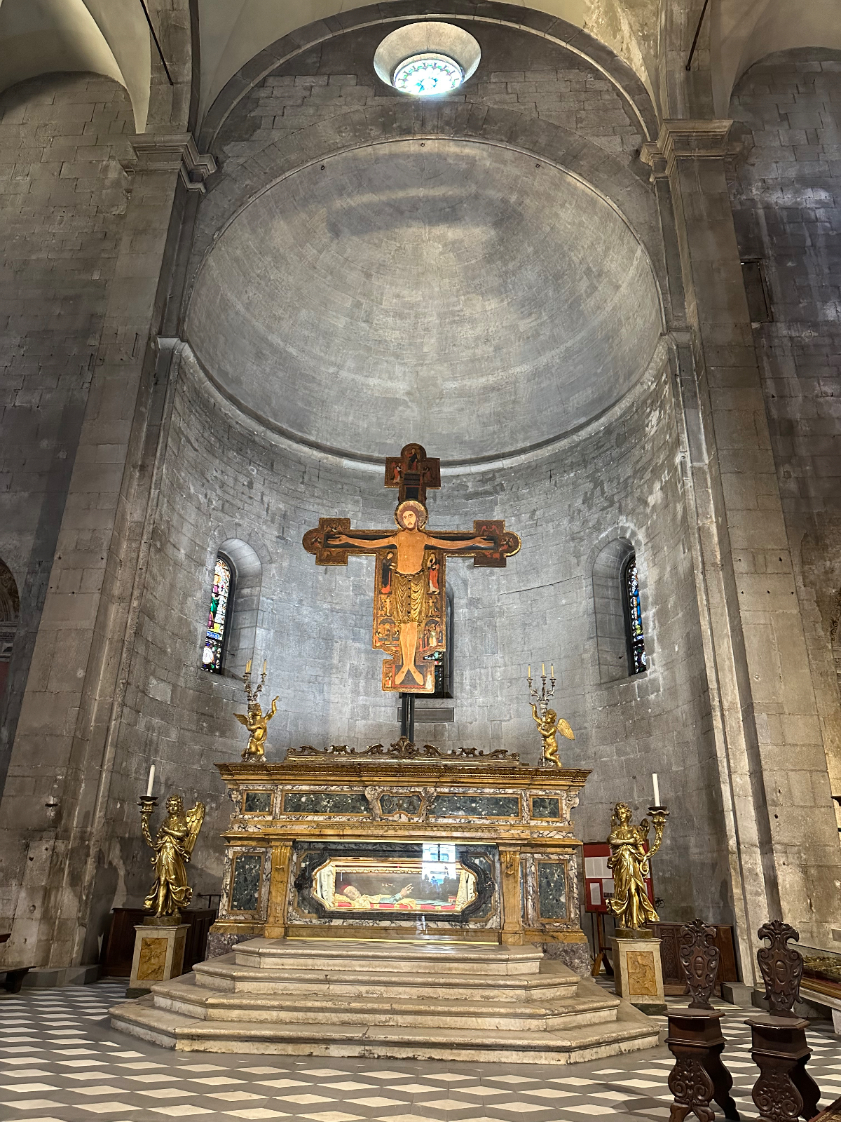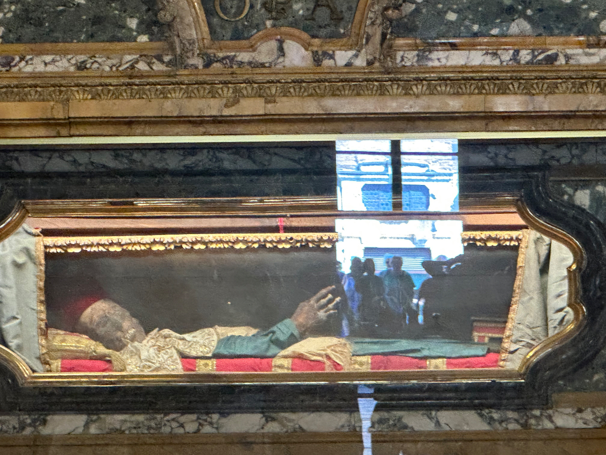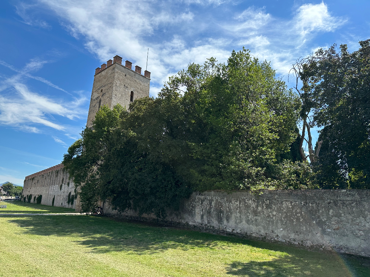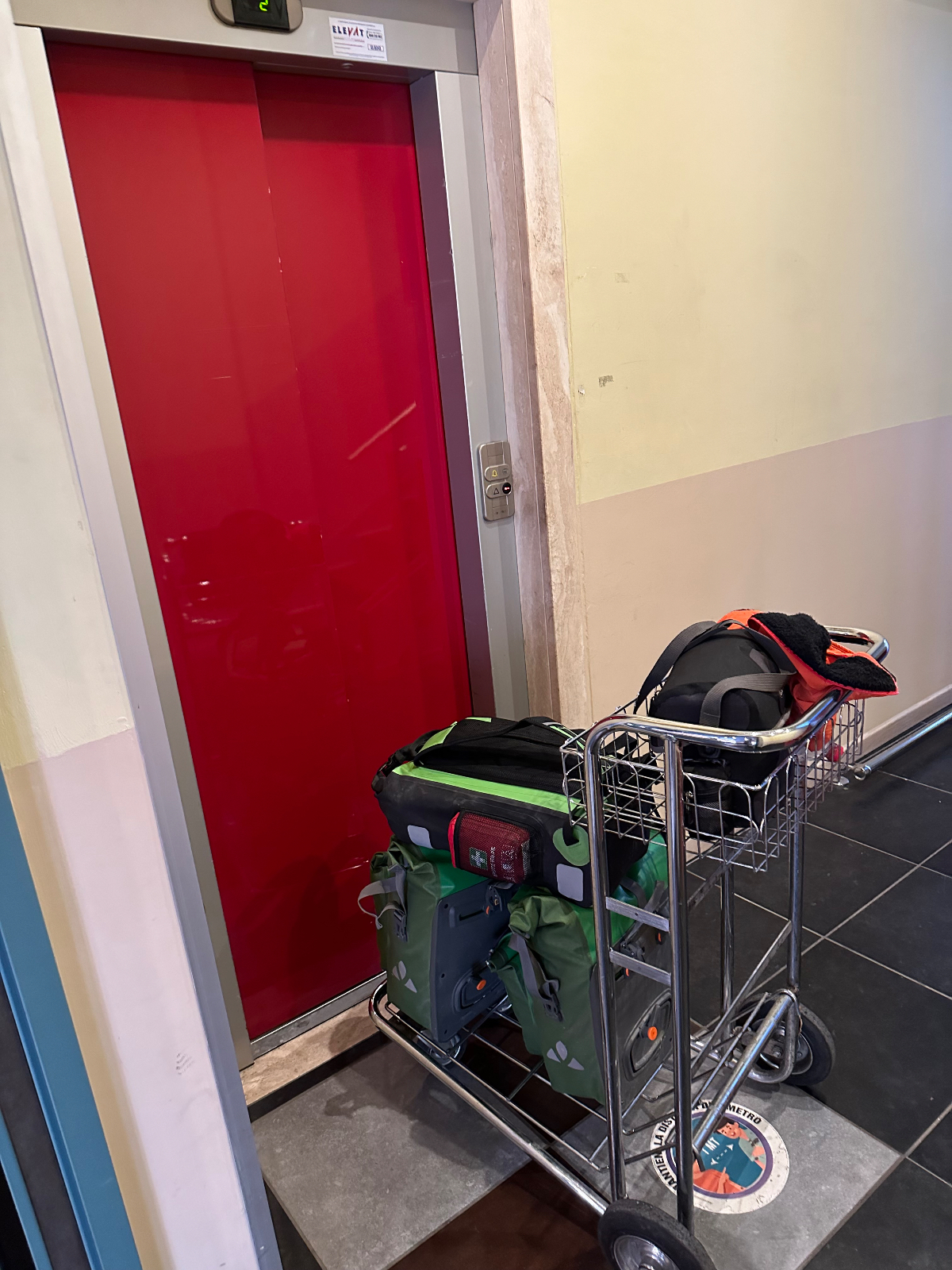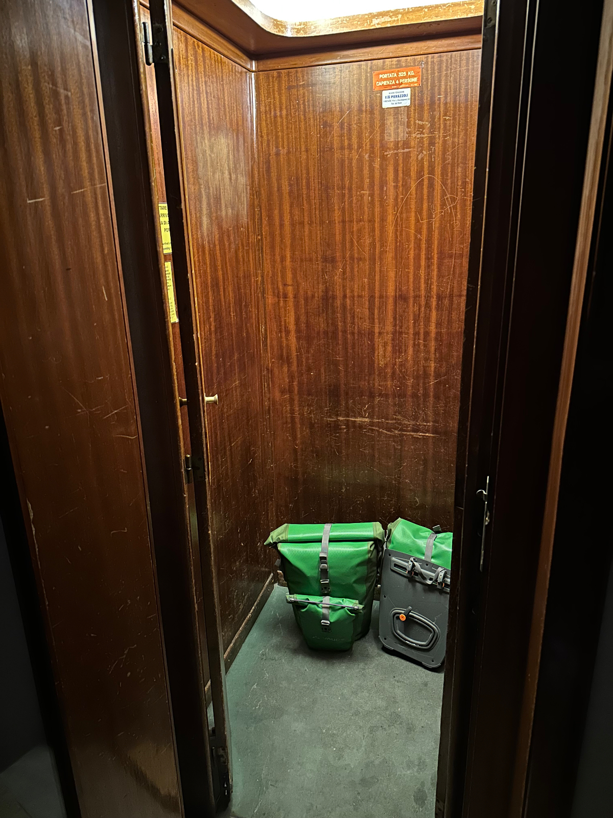 Die Unterkunft in Pistoia wird von Chiara und Fabio geführt, es handelt sich um ein Apartment in einer Wohnanlage im 3.Stock. Man trifft dort niemanden an, check in erfolgt online und man bekommt eine Zugangsmaske aufs Handy geschickt. Mittels vier Buttons wählt man das Gartentor, Hauseingang, Apartment und schließlich das Zimmer an. Doppelklick genügt, und die jeweilige Tür springt auf, wo sind die Zeiten als es noch Schlüssel gab ;-) Das Zimmer und Bad sind ok, es gibt einen Kühlschrank, leider ohne Inhalt, dafür röhrt er wie ein Helikopter. Trotzdem gut geschlafen, wie gewohnt und mittlerweile schon recht routiniert erfolgt das Packen und es kann losgehen, heute halt ohne Frühstück. Zum Glück gibt es einen Aufzug, ein sehr antiquiertes Modell allerdings. Zuerst eine Aussentür, dann eine Doppelpendeltür, die in die Kabine hinein öffnet, die ohnehin sehr klein ist. Mein Gepäck und ich haben gerade so Platz. Alle drei Türen müssen korrekt geschlossen sein, sonst fährt der no-speed Korb erst gar nicht los. Ich vermute, die meisten Bewohner nehmen lieber das Stiegenhaus. Mein Rad musste ich draussen stehen lassen, es ist noch da wo ich es abgestellt hatte :-) Es scheint nicht die feinste Gegend zu sein, unmittelbar beim Bahnhof gelegen. Das merkt man auch am Strom der Menschen, die vom Bahnhof kommend in die Stadt zur Arbeit unterwegs sind, als ich auf die Strasse fahre. Es ist wieder kurz nach acht, das Navi geleitet mich sicher aus Pistoia hinaus. Aber dann geht es los. Ich fahre beschildert und alternativlos auf einer sehr stark befahrenen Strasse in Richtung Lucca. Es herrscht das selbe Chaos auf der Strasse, wie auch bei uns am ersten Tag nach den Ferien. Meine Hoffnung diese Piste bald verlassen zu können, erfüllt sich leider nicht. Mit meiner Überbreite bin ich auf der ohnehin nicht breiten Strasse ein Hindernis für die Autos, mein Blick pendelt ständig zwischen der Fahrbahn um kein Schlagloch zu übersehen, dem Rückspiegel um zu sehen was von hinten auf mich zukommt, und aufs Navidisplay um ja keine Abzweigung zu übersehen. Es ist so laut, dass ich vom Navi nichts hören kann. Nach 20km Höllenritt muss ich mal runter von der Strasse, ich halte bei einer Bar und hole erstmal das Frühstück nach, ein Mortadella Panino und ein Croissant. Hilft nicht, ich muss weiter, es wird auch schon wieder warm, aber der Schweiß stammt wohl mehr von der hohen Konzentration und Trittfrequenz. Irgendwann wird es ruhiger und ich kann durchatmen, Nebenstrassen und sogar einige Meter Radwege folgen. Dann lotst mich das Navi auf eine Schotterpiste, der ein Feldweg folgt. Sehr angenehm denke ich noch, da steht ein Schild und weist darauf hin, dass der folgende Weg nur ein Fußweg ist. Ohne lange zu überlegen biege ich in den Weg ein, der bald nur noch ein Pfad ist. Von links und rechts überwachsen, Spinnfäden hängen von den Zweigen quer über den Pfad. Was soll´s, wird schon gehen denke ich mir, hat doch Komoot - die Software mit der ich meine Touren plane - diesen Weg vorgeschlagen. Es fällt mir ein dass ich schon mehrmals Erfahrungen von Radreisenden verfolgt habe, die davon berichten, dass Komoot hin und wieder Wege in eine Tour einbaut, die für Reiseräder ungeeignet sind. Und so ist auch dieser, nämlich ungeeignet mit einem Rad befahren zu werden, und schon gar nicht mit einer Fuhre wie der meinen. Folge dem Weg 1,4km habe ich noch gehört, dann geht es über grosse runde Steine teils steil bergan, voller Einsatz ist gefragt, und es geht immer weiter. Das Rad samt Gepäck klappert und tscheppert, und irgendwann bin ich doch oben, schweissgebadet. Nach dem Absteigen vom Rad kann ich meine Wirbelsäule erst nach einiger Zeit schmerzfrei aufrichten, und zwei Spinnenbisse unter dem Knie habe ich auch erhalten. An dieser Stelle führt eine Schotterpiste vorbei, und gegen den Protest des Navi, das mich weiter auf diesen Trail schicken möchte, nehme ich diese Piste. Nach einigen km treffe ich eh wieder auf meine Route, geschafft. Und auch wieder etwas gelernt, Fußwege heissen Fußwege weil es Fußwege sind, Punkt! Bei der Weiterfahrt kommen mir Wanderer entgegen und dann vereinzelt weitere. Dann sehe ich das Schild, ich befinde mich gerade auf einem Abschnitt des Franziskuswegs, der via Francigena nord, den ich in Gegenrichtung fahre. Also sind diese Wanderer Pilger, wie ich unterwegs nach Rom. Ich fahre ja nicht die direkte Route, morgen fahre ich entlang der ligurischen Küste nach Piombino hinunter, und dann irgendwie weiter nach Rom. Bald darauf ist Lucca erreicht, wow, was für eine Stadt. Auf der Stadtmauer kann man die ganze Altstadt umrunden, dazu werde ich nochmals herkommen, und ich weiß auch schon, wer mich da gerne begleiten wird :-) Es ist auffallend, dass gegenüber den letzten Tagen sehr viele Familien mit kleinen, noch nicht schulpflichtigen Kindern unterwegs sind. Mehrheitlich Touristen bevölkern die schönen Gassen und Plätze, direkt vor dem Dom lasse ich mich nieder und geniesse einen Eisbecher und sehe dem Treiben zu. Ich kann nicht sagen ob es immer schon so war, aber es kommt hier in Italien niemand zum kassieren an den Tisch, alle Gäste gehen hinein um zu bezahlen, so auch ich. Dann schlendere ich über den Vorplatz zum Dom und greife zum Handy um Fotos zu machen. Kein Handy da wo es sein sollte, Panik! Zurück zur Bar liegt es noch an dem Platz, an dem ich es liegen ließ. Im Dom zünde ich dann eine Kerze an ......... Am Eingang zum Dom hängt ein Schild, SILENZIO, davon ist drinnen nichts zu merken, es ähnelt ohnehin mehr einem Museum. Ganz vorne unter dem Altar, liegt eine Reliquie, wohl die Leiche eines Heiligen oder sonstig Verehrten. Mit diesem Kult kann ich nicht viel anfangen, es erinnert mich an die vielen derartigen Reliquien am spanischen Jakobsweg. Interessante Bauwerke sind diese Kirchen und Kathedralen mit Sicherheit, doch wieviel Blut, Schweiß und Tränen von Ausgebeuteten haben diese Mauern schon gesehen ..... Anyway, es is
