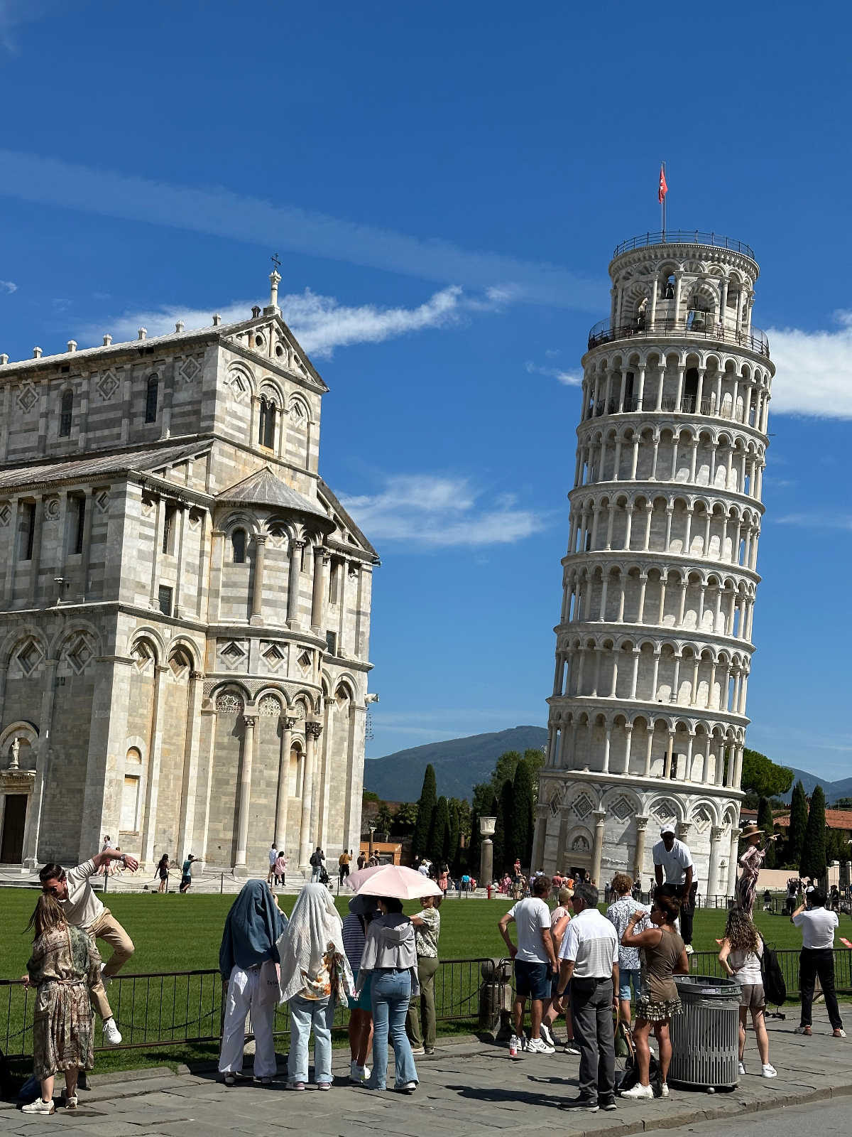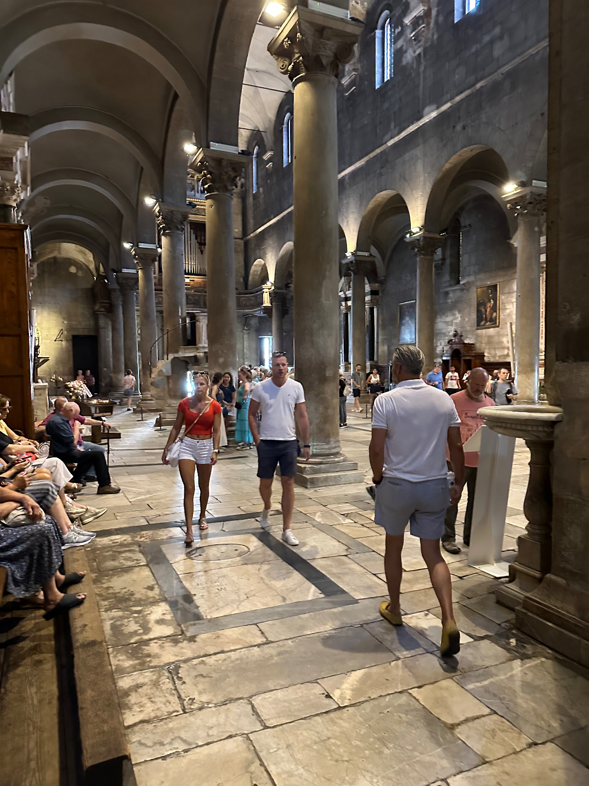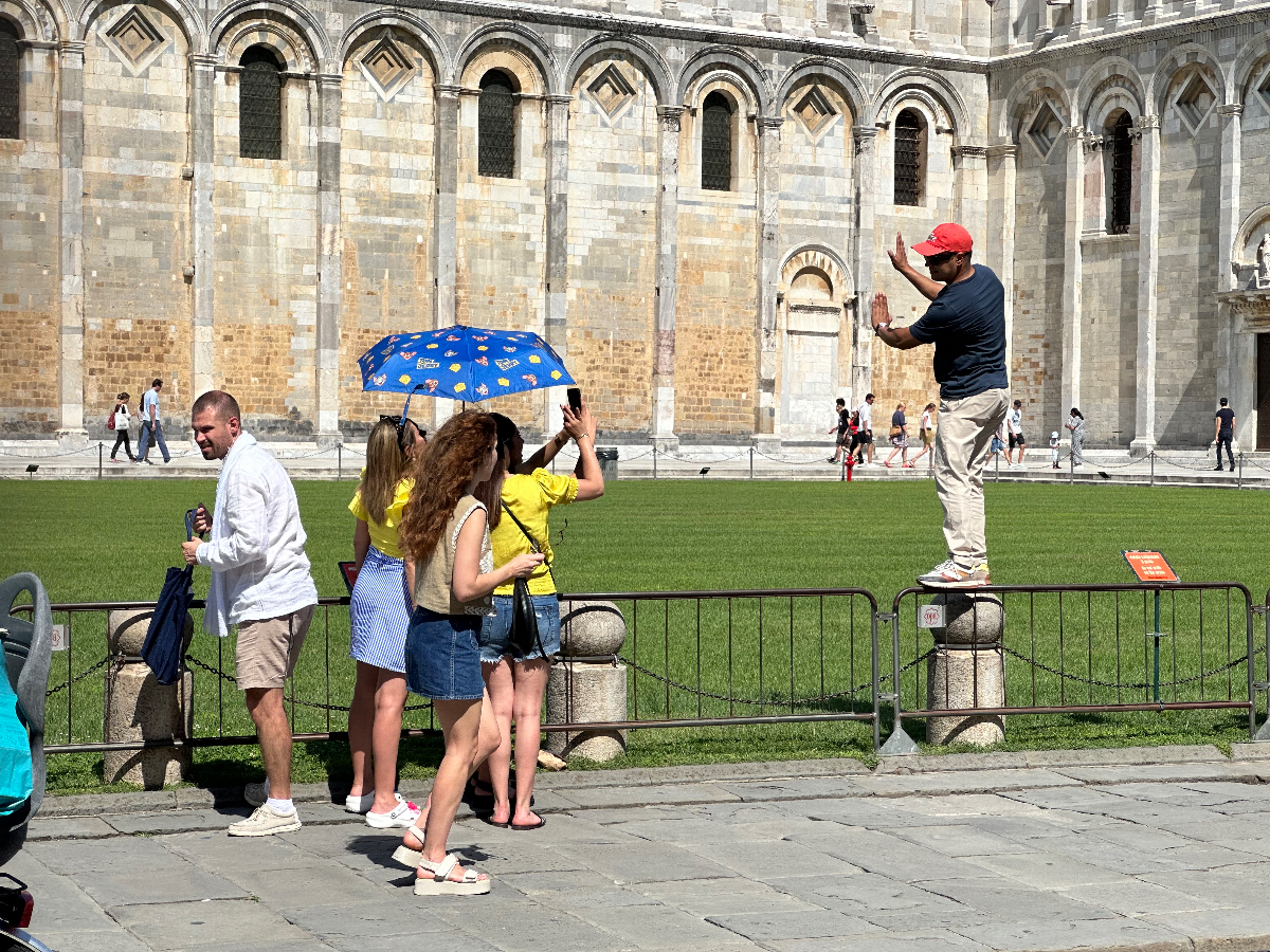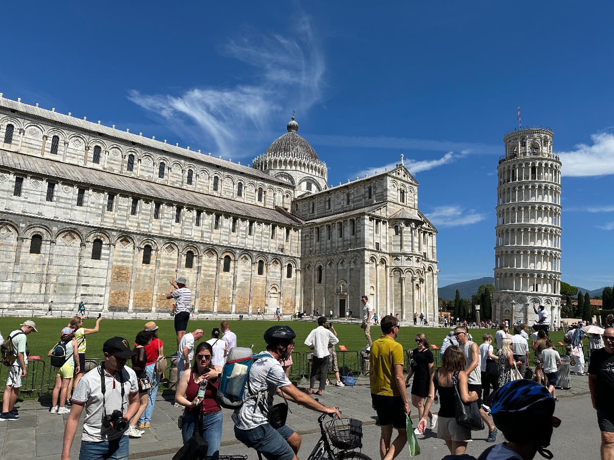 Die Unterkunft in Pistoia wird von Chiara und Fabio geführt, es handelt sich um ein Apartment in einer Wohnanlage im 3.Stock. Man trifft dort niemanden an, check in erfolgt online und man bekommt eine Zugangsmaske aufs Handy geschickt. Mittels vier Buttons wählt man das Gartentor, Hauseingang, Apartment und schließlich das Zimmer an. Doppelklick genügt, und die jeweilige Tür springt auf, wo sind die Zeiten als es noch Schlüssel gab ;-) Das Zimmer und Bad sind ok, es gibt einen Kühlschrank, leider ohne Inhalt, dafür röhrt er wie ein Helikopter. Trotzdem gut geschlafen, wie gewohnt und mittlerweile schon recht routiniert erfolgt das Packen und es kann losgehen, heute halt ohne Frühstück. Zum Glück gibt es einen Aufzug, ein sehr antiquiertes Modell allerdings. Zuerst eine Aussentür, dann eine Doppelpendeltür, die in die Kabine hinein öffnet, die ohnehin sehr klein ist. Mein Gepäck und ich haben gerade so Platz. Alle drei Türen müssen korrekt geschlossen sein, sonst fährt der no-speed Korb erst gar nicht los. Ich vermute, die meisten Bewohner nehmen lieber das Stiegenhaus. Mein Rad musste ich draussen stehen lassen, es ist noch da wo ich es abgestellt hatte :-) Es scheint nicht die feinste Gegend zu sein, unmittelbar beim Bahnhof gelegen. Das merkt man auch am Strom der Menschen, die vom Bahnhof kommend in die Stadt zur Arbeit unterwegs sind, als ich auf die Strasse fahre. Es ist wieder kurz nach acht, das Navi geleitet mich sicher aus Pistoia hinaus. Aber dann geht es los. Ich fahre beschildert und alternativlos auf einer sehr stark befahrenen Strasse in Richtung Lucca. Es herrscht das selbe Chaos auf der Strasse, wie auch bei uns am ersten Tag nach den Ferien. Meine Hoffnung diese Piste bald verlassen zu können, erfüllt sich leider nicht. Mit meiner Überbreite bin ich auf der ohnehin nicht breiten Strasse ein Hindernis für die Autos, mein Blick pendelt ständig zwischen der Fahrbahn um kein Schlagloch zu übersehen, dem Rückspiegel um zu sehen was von hinten auf mich zukommt, und aufs Navidisplay um ja keine Abzweigung zu übersehen. Es ist so laut, dass ich vom Navi nichts hören kann. Nach 20km Höllenritt muss ich mal runter von der Strasse, ich halte bei einer Bar und hole erstmal das Frühstück nach, ein Mortadella Panino und ein Croissant. Hilft nicht, ich muss weiter, es wird auch schon wieder warm, aber der Schweiß stammt wohl mehr von der hohen Konzentration und Trittfrequenz. Irgendwann wird es ruhiger und ich kann durchatmen, Nebenstrassen und sogar einige Meter Radwege folgen. Dann lotst mich das Navi auf eine Schotterpiste, der ein Feldweg folgt. Sehr angenehm denke ich noch, da steht ein Schild und weist darauf hin, dass der folgende Weg nur ein Fußweg ist. Ohne lange zu überlegen biege ich in den Weg ein, der bald nur noch ein Pfad ist. Von links und rechts überwachsen, Spinnfäden hängen von den Zweigen quer über den Pfad. Was soll´s, wird schon gehen denke ich mir, hat doch Komoot - die Software mit der ich meine Touren plane - diesen Weg vorgeschlagen. Es fällt mir ein dass ich schon mehrmals Erfahrungen von Radreisenden verfolgt habe, die davon berichten, dass Komoot hin und wieder Wege in eine Tour einbaut, die für Reiseräder ungeeignet sind. Und so ist auch dieser, nämlich ungeeignet mit einem Rad befahren zu werden, und schon gar nicht mit einer Fuhre wie der meinen. Folge dem Weg 1,4km habe ich noch gehört, dann geht es über grosse runde Steine teils steil bergan, voller Einsatz ist gefragt, und es geht immer weiter. Das Rad samt Gepäck klappert und tscheppert, und irgendwann bin ich doch oben, schweissgebadet. Nach dem Absteigen vom Rad kann ich meine Wirbelsäule erst nach einiger Zeit schmerzfrei aufrichten, und zwei Spinnenbisse unter dem Knie habe ich auch erhalten. An dieser Stelle führt eine Schotterpiste vorbei, und gegen den Protest des Navi, das mich weiter auf diesen Trail schicken möchte, nehme ich diese Piste. Nach einigen km treffe ich eh wieder auf meine Route, geschafft. Und auch wieder etwas gelernt, Fußwege heissen Fußwege weil es Fußwege sind, Punkt! Bei der Weiterfahrt kommen mir Wanderer entgegen und dann vereinzelt weitere. Dann sehe ich das Schild, ich befinde mich gerade auf einem Abschnitt des Franziskuswegs, der via Francigena nord, den ich in Gegenrichtung fahre. Also sind diese Wanderer Pilger, wie ich unterwegs nach Rom. Ich fahre ja nicht die direkte Route, morgen fahre ich entlang der ligurischen Küste nach Piombino hinunter, und dann irgendwie weiter nach Rom. Bald darauf ist Lucca erreicht, wow, was für eine Stadt. Auf der Stadtmauer kann man die ganze Altstadt umrunden, dazu werde ich nochmals herkommen, und ich weiß auch schon, wer mich da gerne begleiten wird :-) Es ist auffallend, dass gegenüber den letzten Tagen sehr viele Familien mit kleinen, noch nicht schulpflichtigen Kindern unterwegs sind. Mehrheitlich Touristen bevölkern die schönen Gassen und Plätze, direkt vor dem Dom lasse ich mich nieder und geniesse einen Eisbecher und sehe dem Treiben zu. Ich kann nicht sagen ob es immer schon so war, aber es kommt hier in Italien niemand zum kassieren an den Tisch, alle Gäste gehen hinein um zu bezahlen, so auch ich. Dann schlendere ich über den Vorplatz zum Dom und greife zum Handy um Fotos zu machen. Kein Handy da wo es sein sollte, Panik! Zurück zur Bar liegt es noch an dem Platz, an dem ich es liegen ließ. Im Dom zünde ich dann eine Kerze an ......... Am Eingang zum Dom hängt ein Schild, SILENZIO, davon ist drinnen nichts zu merken, es ähnelt ohnehin mehr einem Museum. Ganz vorne unter dem Altar, liegt eine Reliquie, wohl die Leiche eines Heiligen oder sonstig Verehrten. Mit diesem Kult kann ich nicht viel anfangen, es erinnert mich an die vielen derartigen Reliquien am spanischen Jakobsweg. Interessante Bauwerke sind diese Kirchen und Kathedralen mit Sicherheit, doch wieviel Blut, Schweiß und Tränen von Ausgebeuteten haben diese Mauern schon gesehen ..... Anyway, es is