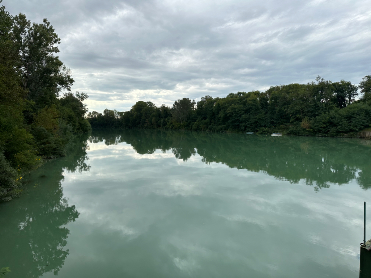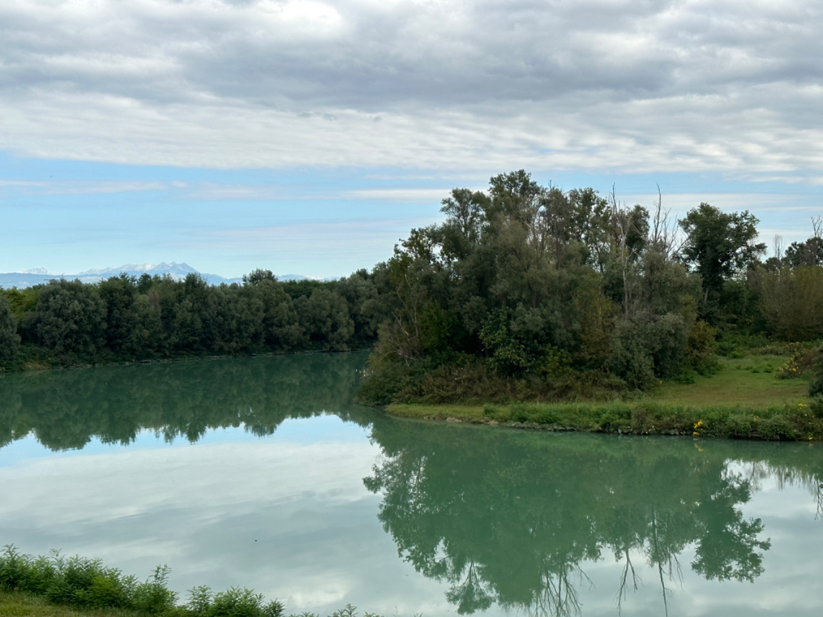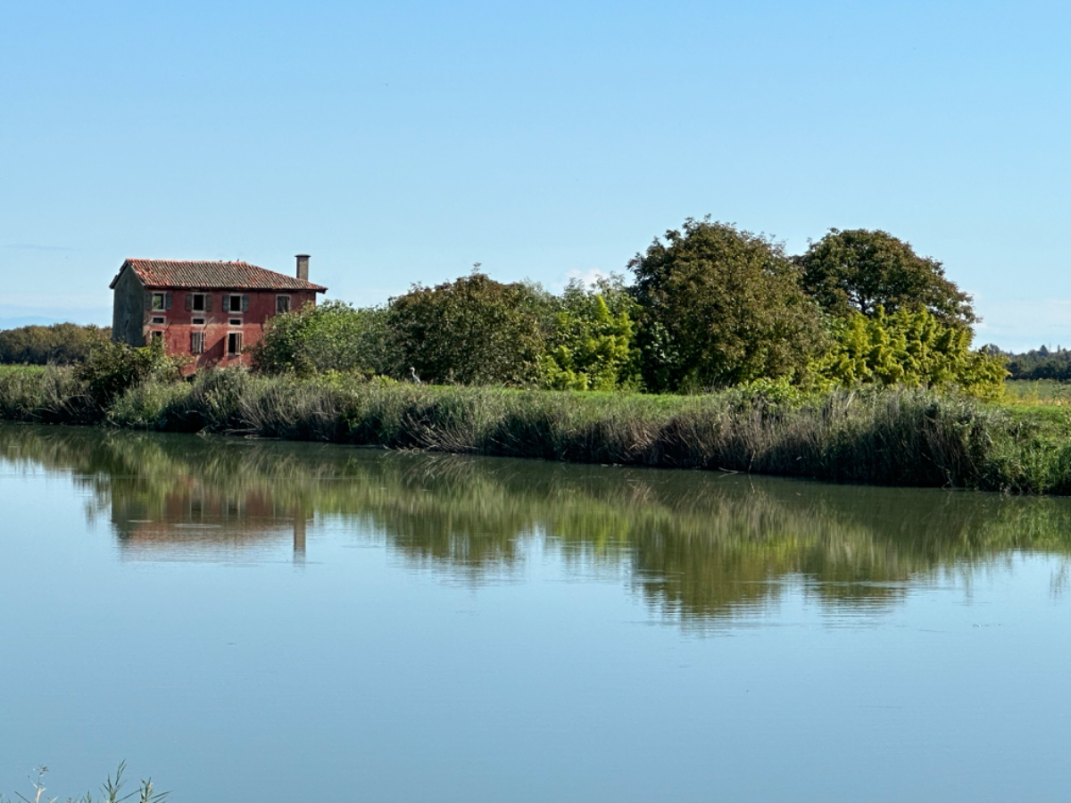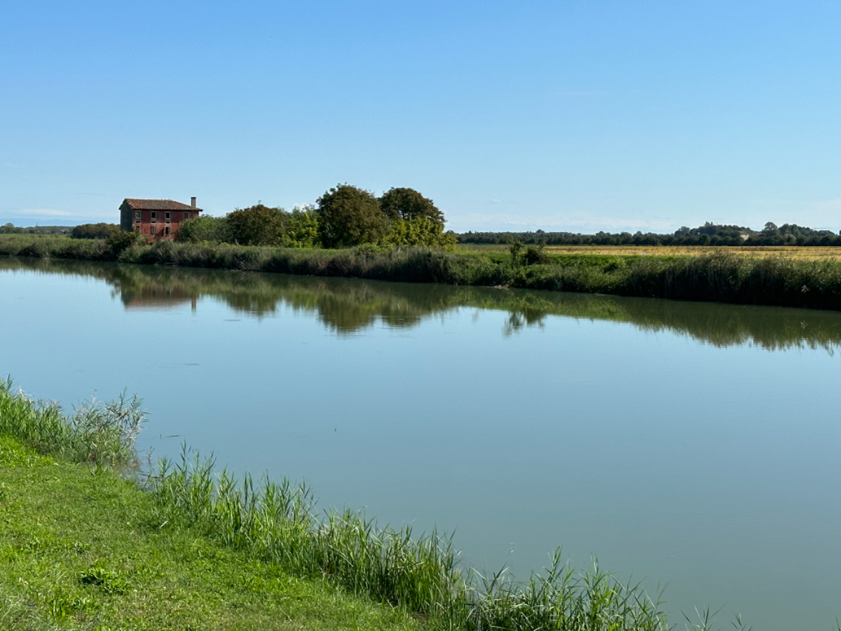 Mich führt mein Weg heute nach Caorle, noch einmal ans Meer, ehe der Herbst dem Sommer gnadenlos ein Ende setzt ;-) Um acht Uhr hatte es heute dreizehn Grad, es ist bewölkt, aber Regen ist nicht angesagt. Erst um die Mittagszeit kommt die Sonne durch die Wolken, und es wird endlich wärmer. Letzte Nacht bin ich gegen ein Uhr wach geworden, weil mir dermaßen kalt war, ich habe gefroren. Zum Glück fand ich im Schrank eine Decke, die Zeit des Schlafens, mit nur einem Leintuch zugedeckt, scheint für heuer vorbei zu sein. Gegen Mittag also konnte ich mein Windblouson ausziehen, wobei, Wind gab es reichlich, zumeist Gegenwind. Ich fahre wieder das volle Programm, Hauptstraßen, Nebenstraßen, Radwege und viele Kilometer auf Dämmen entlang von Flüssen und Kanälen. Ein Abschnitt war eine Premiere, ein kaum sichtbarer Trampelpfad durch eine Wiese, zuerst steil hinunter, dann steil nach oben, keine Chance, da musste ich schieben, aber es war eine Abkürzung ;-) Ein Highlight war eine Brücke über den Piave, mit einer " Mautstation" in der Mitte der Brücke. Da saß tatsächlich ein Mann drinnen, der von den Autofahrern Wegemaut kassierte, mich hat er durchgewunken. Einer meiner ersten Urlaube, ich glaube ich war sechzehn, führte mich nach Jesolo. In den Folgejahren fuhren wir des Öfteren nach Italen, vor allem um Mode einzukaufen. Damals, noch vor dem großen Erdbeben, gab es noch keine Autobahn durch das Kanaltal, und auch nicht über die Pack, es war eine abenteuerliche, lange Fahrt. Heute unvorstellbar! Und immer waren mir hier Wegweiser nach San Donà di Piave aufgefallen, aber nie war ich dort, bis heute. Ich will ja nicht sagen, nicht hier gewesen zu sein wäre ein großes Versäumnis, aber abgehakt ist abgehakt. Ebenso die Flüsse Sile, Piave und Livenza, oft gelesen, jetzt gesehen. Entlang von Flüssen radle ich dahin, auf endlosen Geraden, zur linken Seite immer die Berge die auf mich warten, aber nicht heute, vielleicht schon morgen ....