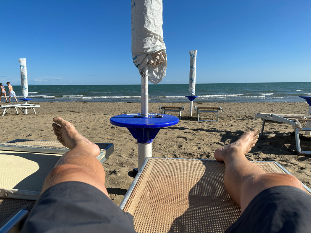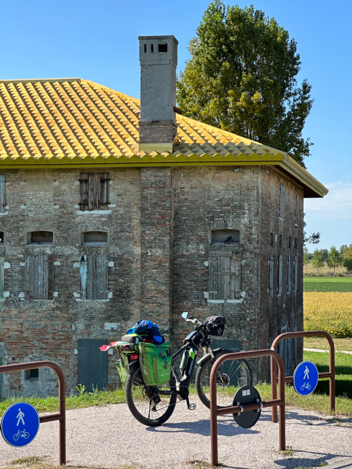 Viel Abwechslung gab es heute nicht, aber alles gut. Um dreizehn Uhr erreiche ich das erste Ortsschild von Caorle, nach über siebzig Kilometer Fahrt. Das Hotel liegt an einer (in der Nachsaison) ruhigen Straße, frühes Einchecken kein Problem. Das Rad kann im Foier unter der Treppe stehen bleiben, die Tür ist in der Nacht verschlossen. Heute lasse ich es mir richtig gut gehen, ich esse in einem angesagten Fischlokal gebackene Thunfischbällchen, danach gegrillte Calamari mit gegrilltem Gemüse, dazu ein Glas Weißwein, astrein! Ich liebe eine gute Pizza, aber nach Wochen Pizza und Pasta tut Abwechslung gut. By the way, ich freue mich schon sehr auf ein Wiener beim Dorfwirt meines Vertrauens, beim Gasthaus Prall :-) (keine bezahlte Webung, zutiefste Überzeugung) Am Nachmittag lasse ich mir am Strand die Sonne auf den gut gefüllten Bauch scheinen, man merkt, die Saison ist in ihren letzten Tagen, der Strand ist fast menschenleer, obwohl es mit 26 Grad noch sehr angenehm warm und sonnig ist. Direkt am Wasser bläst ein starker Wind, das Wasser wäre mir zum Baden bereits zu kalt, es sind auch nur ganz wenige Menschen am oder im Wasser. Ich habe gehört, Caorle hat eine schöne Altstadt, die will ich sehen, also los. Es ist nicht weit dahin, auch hier hält sich der Menschenauflauf in Grenzen, allerdings ist gefühlt jeder zweite Deutscher oder Österreicher. Aber die sehr kleine Altstadt hat Charme, bunte, kleine Häuser, jede Art von Shops und Caorle hat auch einen schiefen Turm, könnte auch eine optische Täuschung sein ;-) Zurück im Hotel beginne ich mit dem Blog, um 19 Uhr musst ich unterbrechen, ich habe Abendessen gebucht, wie gesagt, ich lasse es mir heute gut gehen. Eine zweite Nacht, wie ursprünglich geplant, werde ich dennoch nicht hier bleiben, morgen geht es in Richtung Berge, nach Spilimbergo. Buona Notte :-)