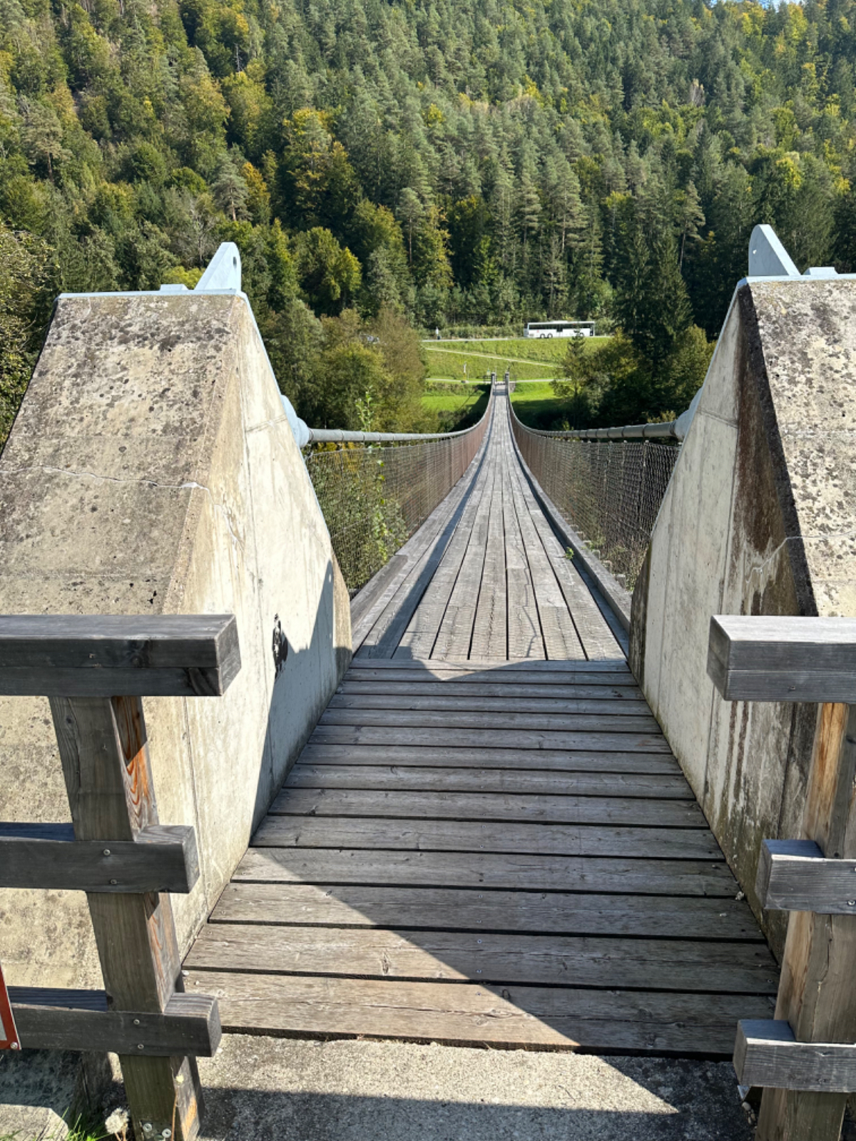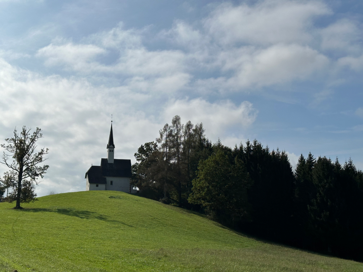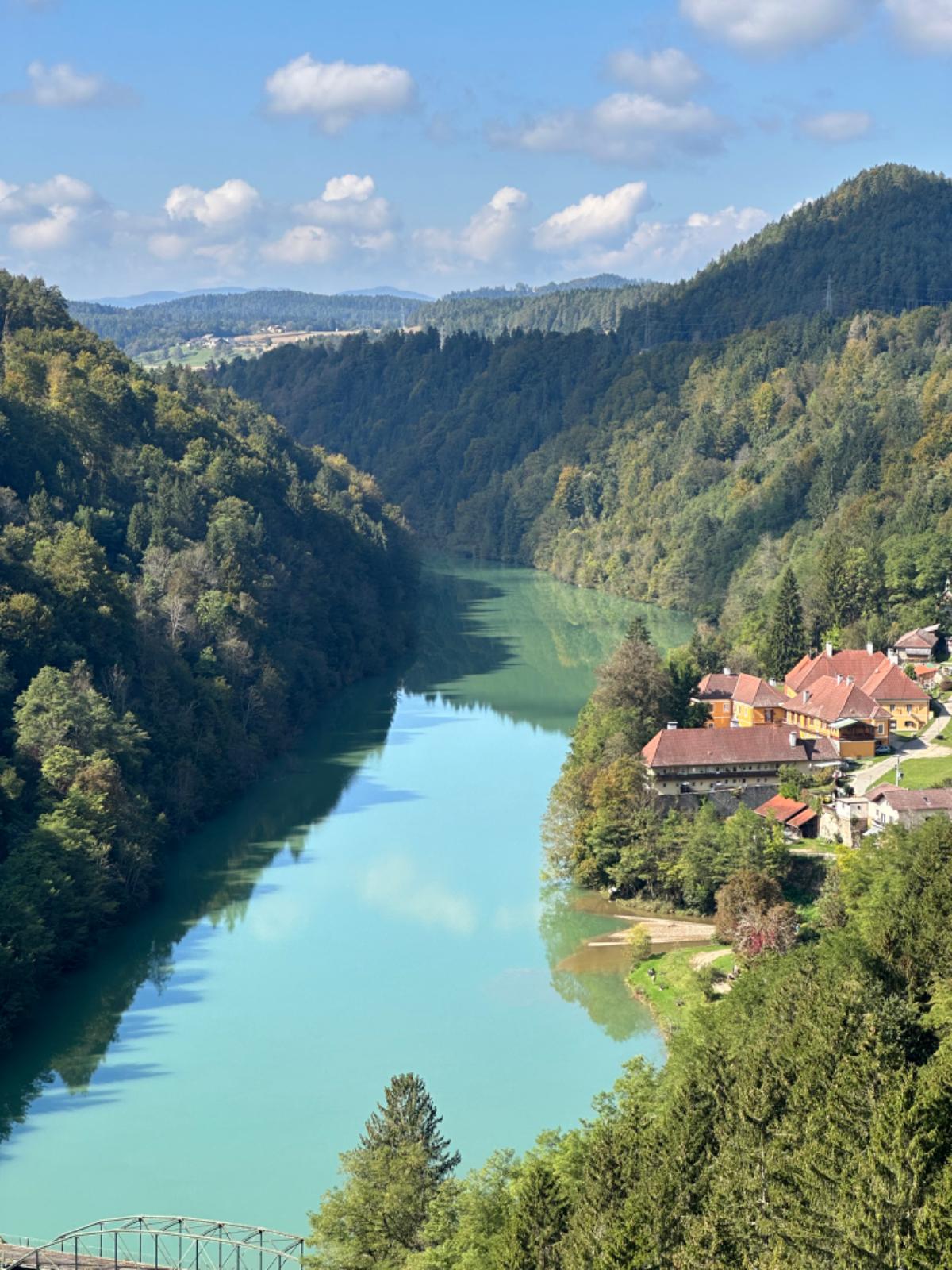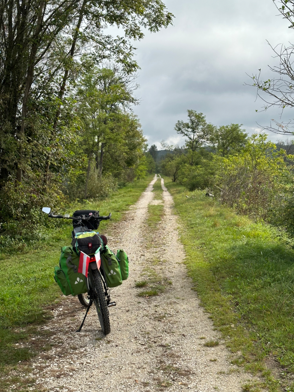 Es ist bereits nach zehn Uhr, als ich mich auf das Rad schwinge. Heute habe ich alle Zeit der Welt, so mein Gefühl, heute fahre ich mit knapp fünfzig Kilometer die kürzeste Etappe der gesamten Tour, und die Wettervorhersage war auch vielversprechend. Nach der letzten Nacht bin ich froh, dass die Rückenschmerzen der Nacht sich mit dem Verlassen dieser unseligen, ultraweichen Bettstatt nicht manifestiert haben, alles gut :-) Noch ist es bewölkt und recht kühl, aber es geht gut dahin. Ich habe mir vorgenommen, heute wirklich zu bummeln und die Fahrt an jedem Kilometer bewusst zu genießen, doch so einfach ist das gar nicht, ich bin es seit Wochen gewöhnt, immer recht zügig zu fahren. So wird auch der Radweg am Damm entlang der Drau als sehr angenehm erlebbar ;-) Wieder fahre ich durch Dörfer, es geht rauf und runter, fast schon wie in der Toskana, halt wirklich nur fast. Bevor ich Völkermarkt erreiche, beginnt der Bereich mit den extremen Sturmschäden im Wald. Die vor sechs Wochen noch überall sichtbaren Schäden sind großteils aufgearbeitet, überall im Wald hört man das Kreischen der Motorsägen, große Stapel von abgelängten Baumstämmen warten auf ihren Abtransport. Dann setzt sich endlich die Sonne durch, es wird angenehm warm, die Jacke kann weg. Jetzt wird das Radfahren zu einer Genussfahrt durch die sonnenbeschiene Herbstlandschaft, es macht richtig Freude. Heute ist ja der Tag des Lächelns, das fällt mir heute auch wirklich nicht schwer :-) Bei Ruden mache ich an einem Rastplatz halt und genieße die warmen Sonnenstrahlen, was für ein Tag! Dann erreiche ich die Jörg Haider Brücke, die über die Drau führt und Ruden und Bleiburg verbindet. Es ist Kärntens höchste Brücke, mit Höhenangst ausgestattet kostete es mich große Überwindung in der Brückenmitte abzusteigen, hinunter zu schauen und Fotos zu machen, ich war froh, als ich die Brücke hinter mir hatte. Eine weitere Brücke hatte ich noch vor mir, über die ich vor Wochen schon das Rad geschoben habe, die Hängebrücke Santa Lucia über den fünfzig Meter tiefen Feistritzbachgraben. Vor der Brücke treffe ich einen Mann, der sich die Sonne auf den gebräunten Körper scheinen lässt. Ernsti ist mit seiner Begleiterin Hanni gestern in Bleiburg bei einem Jazz Konzert gewesen. Er erzählt mir, dass er schon Spanien und Portugal durchwandert hat. Heute wollen sie noch das Liaunig Museum besuchen. Noch ein paar Fotos, und mit guten Wünschen fahre ich weiter. Schön euch kennengelernt zu haben! Die Fahrt über die Brücke ist ok, ich schaue halt nur gerade voraus und nicht links oder rechts hinunter. Nach Lavamünd ist nun nicht mehr weit, als ich gerade eine Anhöhe hinunterrolle, sehe ich auf der anderen Straßenseite das Liaunig Museum. Spontan kehre ich um und fahre hin. Die Zufahrt ist für Fahrräder verboten, ich fahre trotzdem hinein, ich möchte ja nur ein paar Fotos machen. Es dauert nicht lange, da kommt eine junge Frau heraus und auf mich zu. Ich bin schon auf einen Verweis eingestellt, doch sie fragt mich freundlich, ob sie mir weiterhelfen kann, und überreicht mir einen Folder des Museums. Ich bekomme einen Privatvortrag zur Geschichte des Museums, dessen Gründer, der Industrielle Herbert Liaunig, erst letzten Freitag verstorben ist. Die schwarze Fahne an der Einfahrt war mir aufgefallen. Es war sehr interessant, nicht ausgeschlossen, dass ich das Museum einmal besuchen werde. Kurz nach 14 Uhr erreiche ich Lavamünd, trinke im sonnigen Gastgarten ein Ankommensbier, checke ein, dusche, und dennoch ist noch reichlich Zeit bis 17 Uhr, erst dann gibt es was zu essen. Ich gehe spazieren, mit Attraktionen ist dieser Ort wahrlich nicht gesegnet. Was auffällt, sind die kürzlich erfolgten Bauarbeiten zur Hochwasservermeidung. Hier, am Zusammenfluss der Lavant in die Drau, gab es wohl schon die eine oder andere Katastrophe. Alles andere als eine Katastrophe war dann mein Abendessen, zuerst Käsespätzle, doch dann das kulinarische Highlight, Kärntner Nudeln mit Topfen und Marillen, wow, was für ein Genuss! :-) dazu ein Glas Chardonnay........ im Radio habe ich einen italienischen Sender gefunden, ich verstehe zwar kaum etwas, aber es fühlt sich heute einfach gut an :-)
