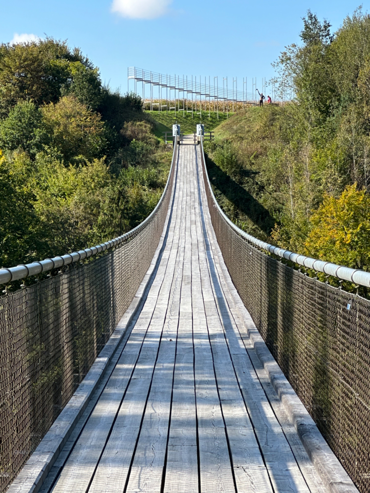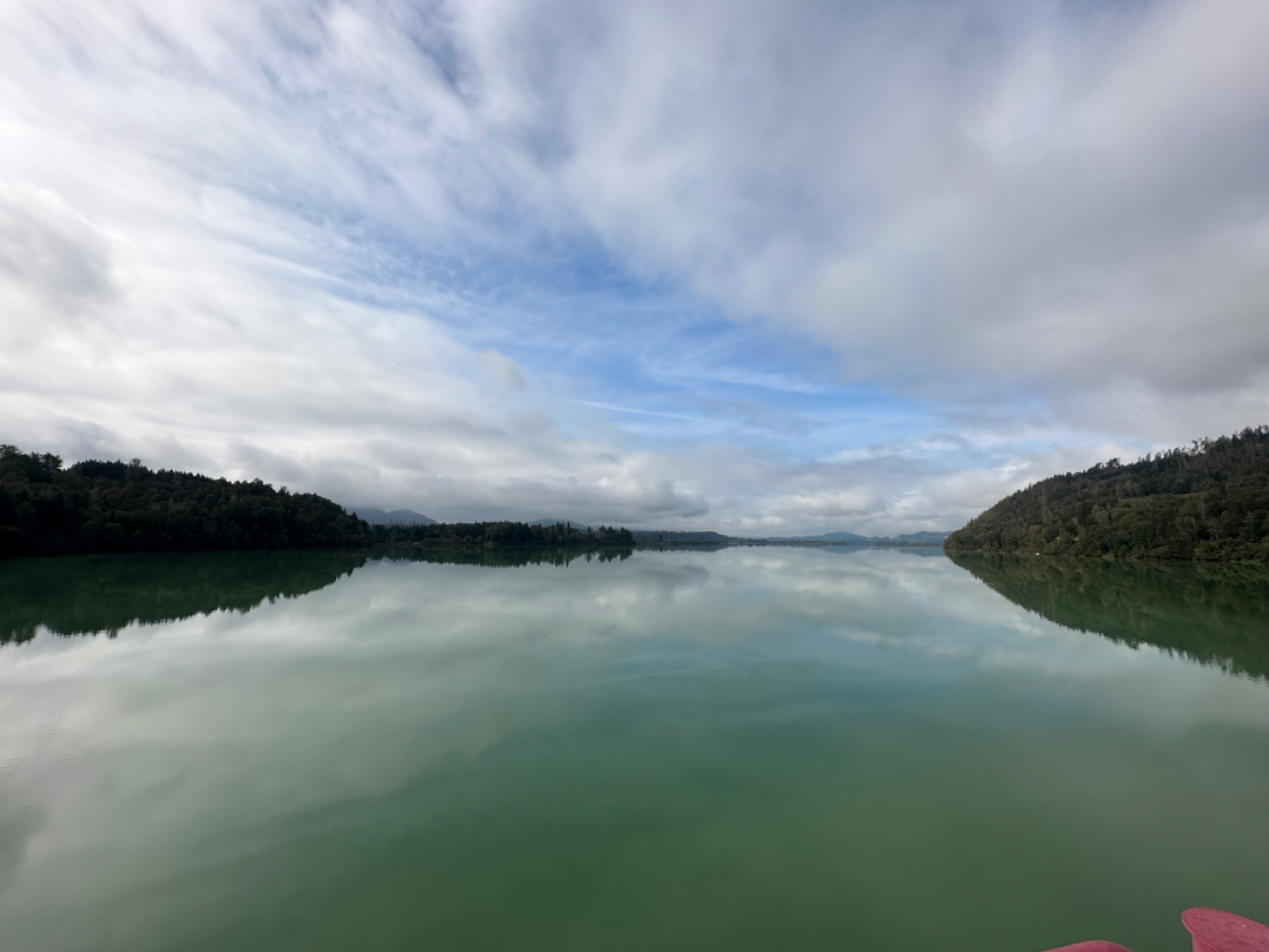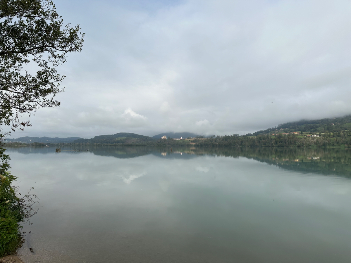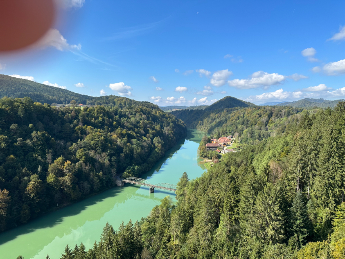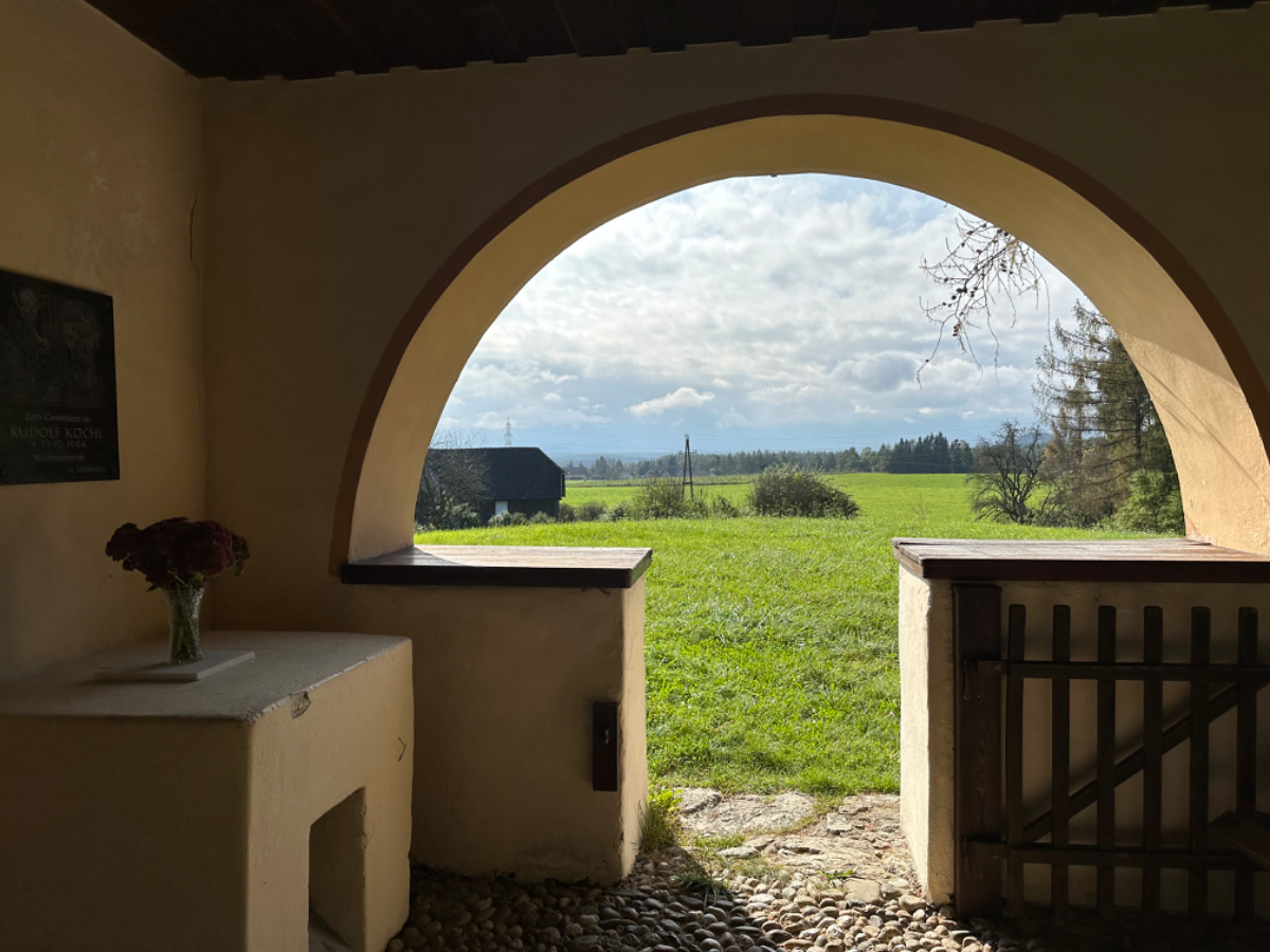Es ist bereits nach zehn Uhr, als ich mich auf das Rad schwinge. Heute habe ich alle Zeit der Welt, so mein Gefühl, heute fahre ich mit knapp fünfzig Kilometer die kürzeste Etappe der gesamten Tour, und die Wettervorhersage war auch vielversprechend. Nach der letzten Nacht bin ich froh, dass die Rückenschmerzen der Nacht sich mit dem Verlassen dieser unseligen, ultraweichen Bettstatt nicht manifestiert haben, alles gut :-) Noch ist es bewölkt und recht kühl, aber es geht gut dahin. Ich habe mir vorgenommen, heute wirklich zu bummeln und die Fahrt an jedem Kilometer bewusst zu genießen, doch so einfach ist das gar nicht, ich bin es seit Wochen gewöhnt, immer recht zügig zu fahren. So wird auch der Radweg am Damm entlang der Drau als sehr angenehm erlebbar ;-) Wieder fahre ich durch Dörfer, es geht rauf und runter, fast schon wie in der Toskana, halt wirklich nur fast. Bevor ich Völkermarkt erreiche, beginnt der Bereich mit den extremen Sturmschäden im Wald. Die vor sechs Wochen noch überall sichtbaren Schäden sind großteils aufgearbeitet, überall im Wald hört man das Kreischen der Motorsägen, große Stapel von abgelängten Baumstämmen warten auf ihren Abtransport. Dann setzt sich endlich die Sonne durch, es wird angenehm warm, die Jacke kann weg. Jetzt wird das Radfahren zu einer Genussfahrt durch die sonnenbeschiene Herbstlandschaft, es macht richtig Freude. Heute ist ja der Tag des Lächelns, das fällt mir heute auch wirklich nicht schwer :-) Bei Ruden mache ich an einem Rastplatz halt und genieße die warmen Sonnenstrahlen, was für ein Tag! Dann erreiche ich die Jörg Haider Brücke, die über die Drau führt und Ruden und Bleiburg verbindet. Es ist Kärntens höchste Brücke, mit Höhenangst ausgestattet kostete es mich große Überwindung in der Brückenmitte abzusteigen, hinunter zu schauen und Fotos zu machen, ich war froh, als ich die Brücke hinter mir hatte. Eine weitere Brücke hatte ich noch vor mir, über die ich vor Wochen schon das Rad geschoben habe, die Hängebrücke Santa Lucia über den fünfzig Meter tiefen Feistritzbachgraben. Vor der Brücke treffe ich einen Mann, der sich die Sonne auf den gebräunten Körper scheinen lässt. Ernsti ist mit seiner Begleiterin Hanni gestern in Bleiburg bei einem Jazz Konzert gewesen. Er erzählt mir, dass er schon Spanien und Portugal durchwandert hat. Heute wollen sie noch das Liaunig Museum besuchen. Noch ein paar Fotos, und mit guten Wünschen fahre ich weiter. Schön euch kennengelernt zu haben! Die Fahrt über die Brücke ist ok, ich schaue halt nur gerade voraus und nicht links oder rechts hinunter. Nach Lavamünd ist nun nicht mehr weit, als ich gerade eine Anhöhe hinunterrolle, sehe ich auf der anderen Straßenseite das Liaunig Museum. Spontan kehre ich um und fahre hin. Die Zufahrt ist für Fahrräder verboten, ich fahre trotzdem hinein, ich möchte ja nur ein paar Fotos machen. Es dauert nicht lange, da kommt eine junge Frau heraus und auf mich zu. Ich bin schon auf einen Verweis eingestellt, doch sie fragt mich freundlich, ob sie mir weiterhelfen kann, und überreicht mir einen Folder des Museums. Ich bekomme einen Privatvortrag zur Geschichte des Museums, dessen Gründer, der Industrielle Herbert Liaunig, erst letzten Freitag verstorben ist. Die schwarze Fahne an der Einfahrt war mir aufgefallen. Es war sehr interessant, nicht ausgeschlossen, dass ich das Museum einmal besuchen werde. Kurz nach 14 Uhr erreiche ich Lavamünd, trinke im sonnigen Gastgarten ein Ankommensbier, checke ein, dusche, und dennoch ist noch reichlich Zeit bis 17 Uhr, erst dann gibt es was zu essen. Ich gehe spazieren, mit Attraktionen ist dieser Ort wahrlich nicht gesegnet. Was auffällt, sind die kürzlich erfolgten Bauarbeiten zur Hochwasservermeidung. Hier, am Zusammenfluss der Lavant in die Drau, gab es wohl schon die eine oder andere Katastrophe. Alles andere als eine Katastrophe war dann mein Abendessen, zuerst Käsespätzle, doch dann das kulinarische Highlight, Kärntner Nudeln mit Topfen und Marillen, wow, was für ein Genuss! :-) dazu ein Glas Chardonnay........ im Radio habe ich einen italienischen Sender gefunden, ich verstehe zwar kaum etwas, aber es fühlt sich heute einfach gut an :-)