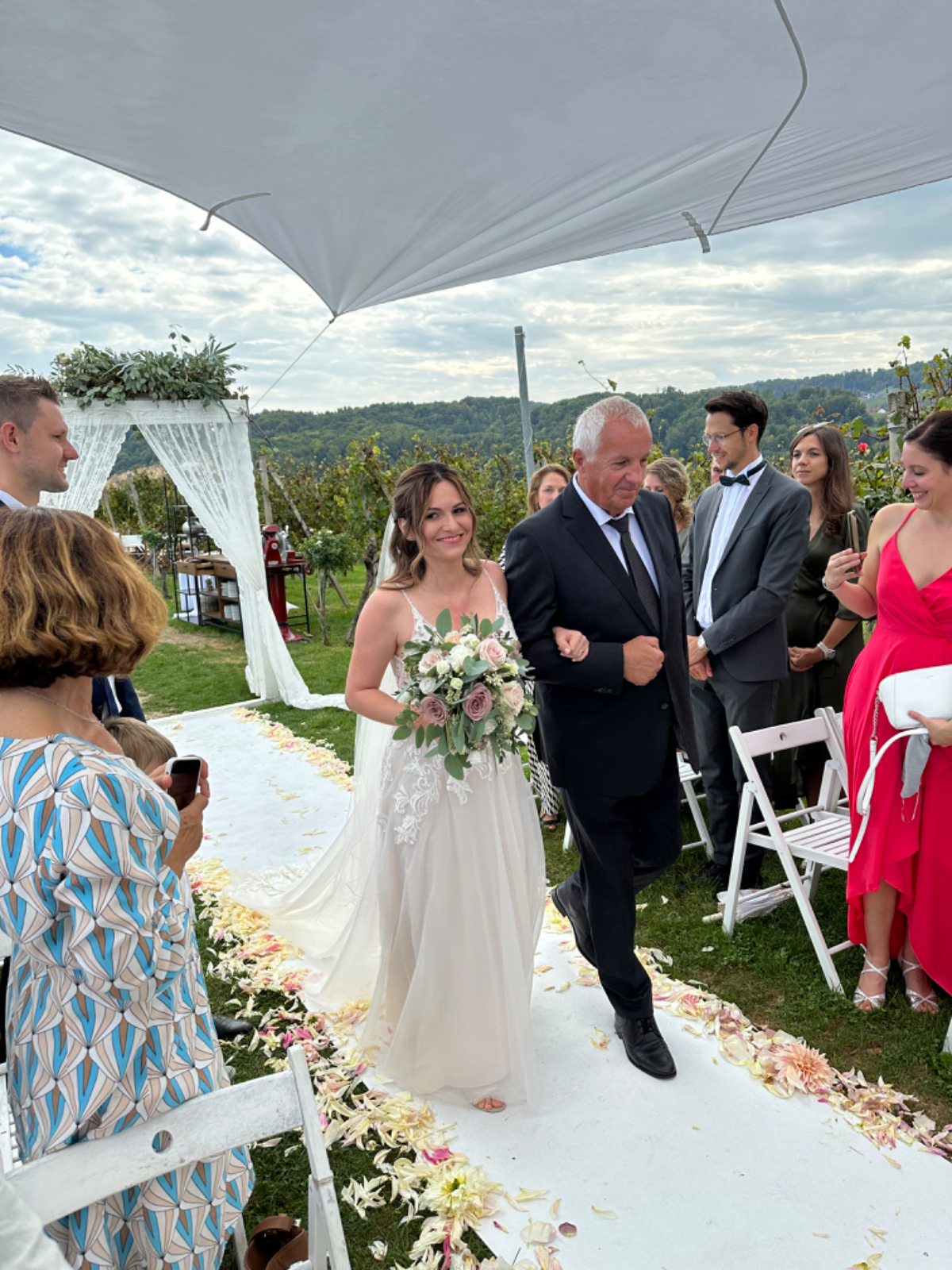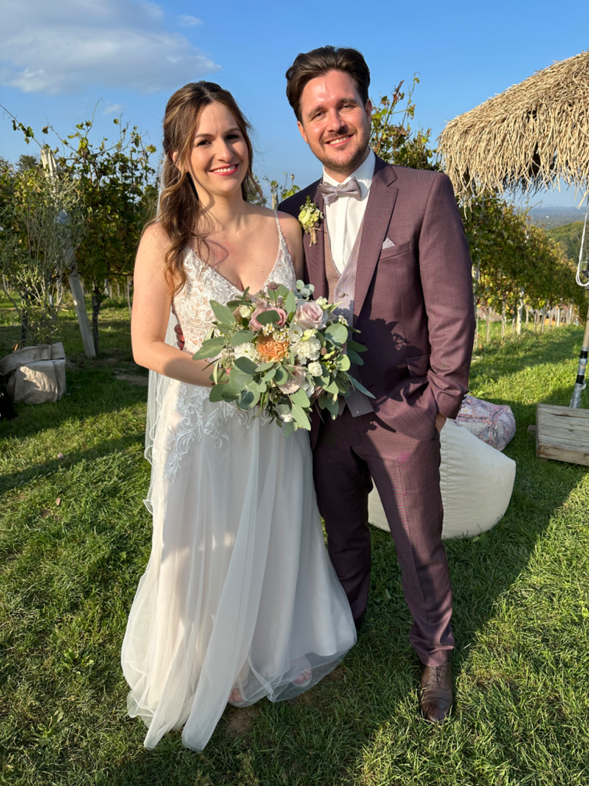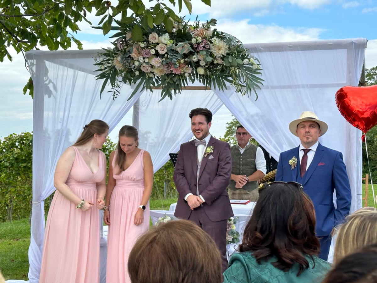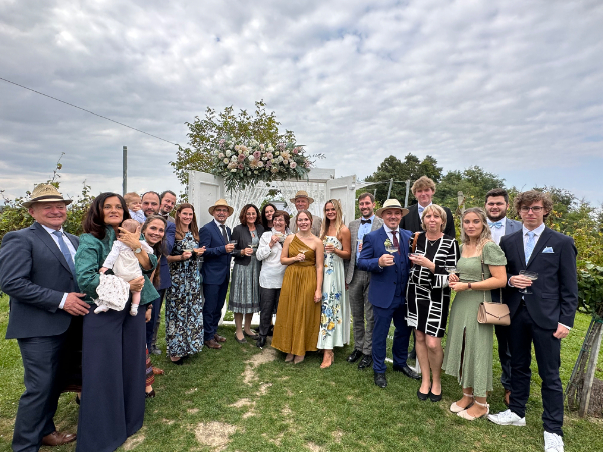 Lange vor Antritt zu meiner Tour gab es mit dem 30. September ein bestimmtes Datum, das zum damaligen Zeitpunkt mit höchster Wahrscheinlichkeit in meine Tour fallen würde. An diesem 30. September findet die Hochzeit von Rikis Neffen Sebastian statt, zu der auch ich eingeladen war, es aber kaum schaffen würde, bis dahin wieder zurück zu sein. Geht net, gibts net ;-) Schon in Bologna spielte ich mit dem Gedanken, vielleicht doch, und wenn, dann überraschend zuhause zu sein, um am Fest teilzunehmen. Ich buchte vorsorglich gleich einmal einen Flix Bus von Venedig nach Graz für den 29. September. In Venedig gibt es großzügige, gesicherte Bike Boxen zu mieten, dort kann das Rad bis zu meiner Rückkehr sicher verwahrt werden. Schon nach Tagen sah ich aber, dass ich in Venedig weitere drei Tage verlieren würde, ich wäre zu früh dort. Also Plan -und Routenänderung, auf möglichst direktem Weg nach Villach. Dort wurde ich am Freitag den 29. von meiner Schwester abgeholt, das Rad bleibt in Villach, ganz lieben Dank Eval! Am Samstag konnte ich somit als Überraschungsgast an der Hochzeitsfeier teilnehmen. Passenderweise fand die Hochzeit im Weingut Holler in der steirischen Toskana statt, bei bestem Wetter ein wahrlich stimmungsvoller Rahmen für die Trauung von Verena und Sebastian. Danke Euch beiden, dass ich dabei sein durfte, ich wünsche Euch dreien alles Glück dieser Erde für Eure gemeinsame Zukunft! :-) Mit Zustimmung von Verena und Sebastian darf ich hier ein paar Fotos veröffentlichen.