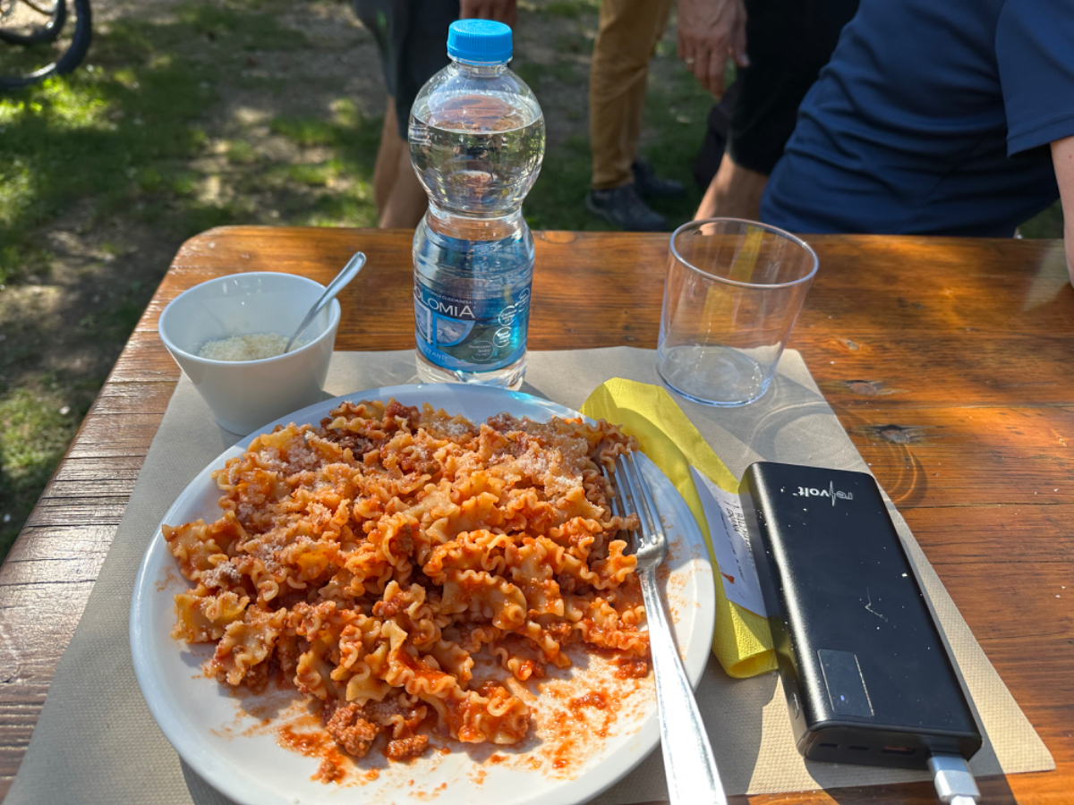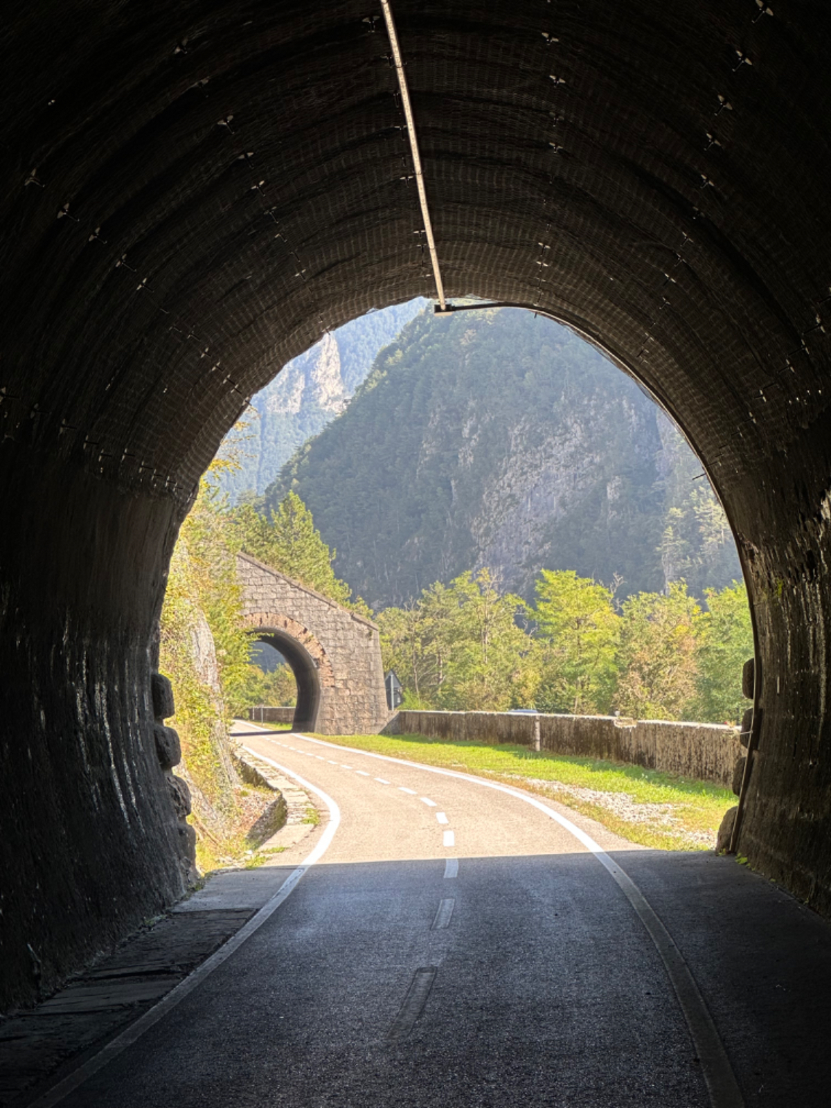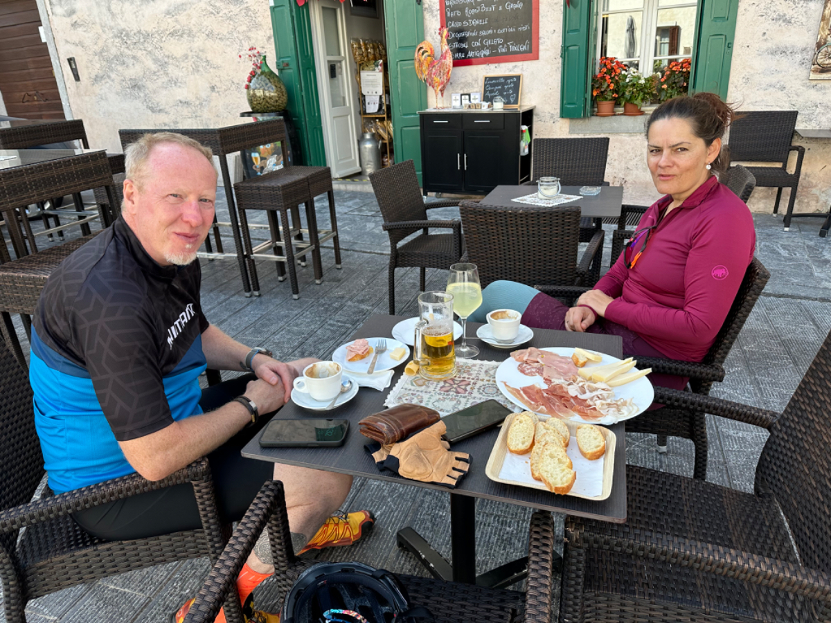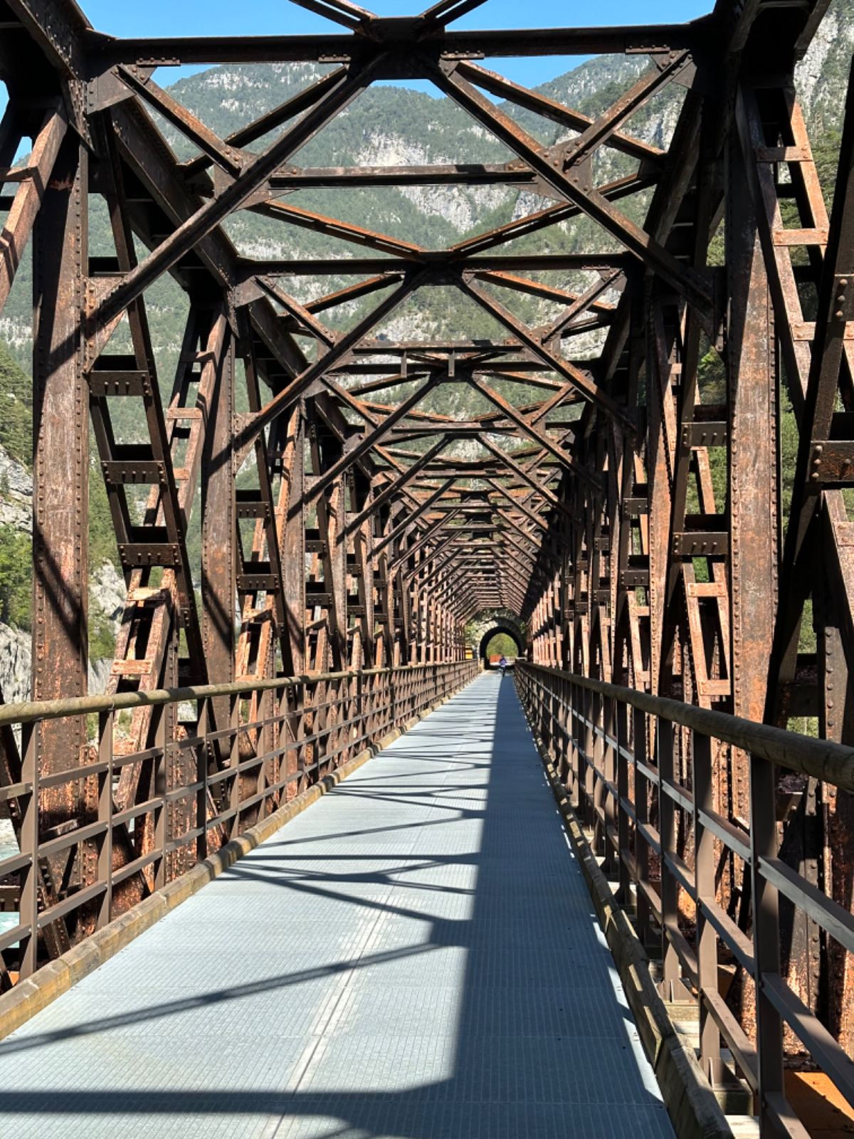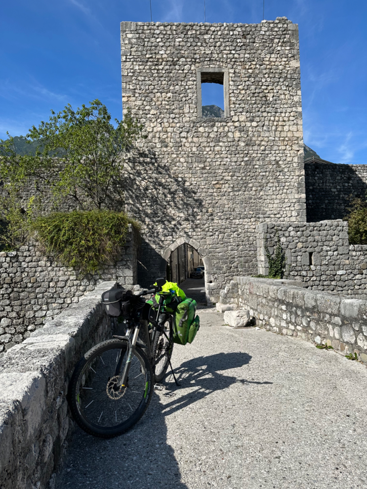 Das Hotel President in Spilimbergo ist ein weiteres auf meiner Reise, das ein großes Restaurant hat, welches aber nicht mehr geöffnet ist. Überall nur noch bed & breakfast, aber das Frühstück war sehr in Ordnung. Das Rad war im Keller sicher untergebracht, auch diesbezüglich hatte ich immer Glück. Beim Rausfahren aus Spilimbergo zeigt sich, dieser Ort ist größer als ich dachte, aber mit dem Navi keinerlei Probleme, die richtigen Wege zu finden. Kaum aus der Stadt, werde ich gleich auf einen Nebenweg geleitet. Nicht schon wieder! Wieder eine derartige Rumpelpiste, dass es kaum ein Vorankommen gibt. Endlich wieder auf der Straße, beschließe ich, nur noch dieser zu folgen, solange es Sinn macht. Ich fahre auf die Berge zu, und bin schon gleich mitten drinnen, es steigt stetig an, wie es in den Bergen so ist ;-) Die Straße ist sehr schmal und kurvenreich, aber es herrscht kaum Verkehr, es geht gut voran. Ich erreiche den Lago di Cornino, einen idyllischen kleinen Bergsee. Dann geht es lange Zeit entlang des Tagliamento auf ruhigen Straßen dahin, bis ich eine Brücke erreiche. Auf der anderen Seite liegt Venzone, mein heutiges Zwischenziel nach 40 Kilometer. Durch das Stadttor erreiche ich einen Platz, an beiden Seiten eine Bar. Ich entscheide mich für links, der Platz liegt in der Sonne. Allerdings trifft das Angebot nicht meinen Geschmack, ich wechsle die Seiten. Gute Wahl, hier gibt es frischen Apfelstrudel, dazu einen café, da ist der Schattenplatz zu vernachlässigen. Am Nebentisch sitzt ein Paar, sie sind auch mit Rädern da. Ich frage nach dem woher und wohin, und erkundige mich über ihre auffallenden Bikes. Es sind Fahrräder aus Holz, eBikes, Made in Oberösterreich, cool! Die beiden, Elisabeth und Eugen kommen aus Wien, sie sind sowohl Motorrad wie auch Rad-Biker. Es war sehr angenehm mit ihnen zu plaudern, dann bekommen sie ihr Essen, und ich muss weiter. Habt noch eine schöne Zeit! :-) Der weitere Weg führt entlang der Bundesstraße bis kurz vor Moggio Udinese, immer leicht ansteigend, anders wird es heute auch nicht mehr. Ich fahre auf den Alpe Adria Radweg, den schönsten Abschnitt vor mir, die ehemalige Bahnstrecke Pontebbana, mit ihren zahllosen Tunnels - in denen es arschkalt ist - und herrlichen Ausblicken auf das Kanaltal. Diesen Weg bin ich schon dreimal gefahren, heute erstmals in die Gegenrichtung. Wie bereits gesagt, es geht nun 30 Kilometer stetig bergan, aber sehr moderat. Der erste Tunnel, wie alle weiteren, ist gut beleuchtet, viele Lichter im Gegenverkehr, es ist noch recht viel Verkehr in Richtung Süden. Wieviel es tatsächlich ist, sehe ich bei meinem nächsten Stopp in Chiusaforte, ein Restaurant in einer ehemalige Bahnstation. Ein älterer Herr, der auch gerade hier halt macht, sagt zu mir, hier stehen Räder im Wert von mindestens 100.000 Euro, er hat Recht! So voll ist es hier. Auch auf der gegenüberliegenden Straßenseite stehen Tische, hier wird mir ein Platz zugewiesen. Am Tisch ein Schild mit der Aufschrift " Riservato Peter 13:30" Mir ist nicht bewusst dass ich reserviert hätte, aber passt doch. Ich bestelle pasta con ragu und Wasser, da kommt eine größere Gruppe von Radlern an, die Reservierung Peter. Peter ist Hotelier in Bodensdorf, er macht mit seinen Gästen eine Tagestour von Tarvisio bis Moggio Udinese, dort werden sie wieder abgeholt. Eine nette Truppe aus Deutschen und Österreichern, wir plaudern eine Weile, dann muss ich aber weiter, wir wünschen uns zum Abschied noch eine gute Reise. Nach dem Essen ist es dann doch ein bisschen mühsam, aber ich finde bald wieder meinen Rhythmus. Pontebba ist bald erreicht, an der Ortseinfahrt eine Werkstatt, Alfa Marchesan. Dio mio, da werden Erinnerungen wach! Vor dreißig Jahren! bin erstmals mit einem Alfa hierher zu Walter gefahren, eine Reparatur die in Österreich ein kleines Vermögen gekostet hätte, wurde von Walter, einem Edelschrauber, kostengünstig erledigt. Seitdem bin ich immer wieder mit diversen Autos zu Walter gefahren. Wenn man die Gesamtkosten inkl. Anfahrt berechnet, war es nicht immer nur eine Kostenentscheidung, Walter hatte einfach mein ultimatives Vertrauen. Gerne hätte ich ihn heute wiedergesehen, doch er war nicht da, er ist auch schon in Pension. Das Albergo Spina in Pontebba ist einfach aber absolut ok, ein eigener abgesperrter Radraum und liegt direkt am Radweg. Bei meiner Ankunft hatte es noch angenehme 22 Grad, ich habe am Hauptplatz in der Sonne zwei kleine Bier genossen. Rund um Pontebba sind hohe Berge, da ist die Sonne leider bald verschwunden, und es wird schnell unangenehm kalt, ich muss hinein und eine Jacke anziehen. Morgens hat es hier zehn Grad ....... Das ist heute also l'ultima notte in Italia, kaum zu glauben, und auch wenn Riki es nicht versteht, es macht mich ein wenig schwermütig. Vielleicht sollte ich morgen umkehren und in den Süden radeln, Zeit habe ich, und die nächste Pension kommt auch in den kommenden Tagen auf's Konto ;-) Realistisch ist aber, morgen habe ich in Villach gebucht, da bleibe ich zwei Tage, ich habe keine saubere Wäsche mehr, und Riki braucht dringend eine Kettenpflege. Dann noch einige Tage am Drauradweg über Maribor heim nach Graz. Ich freue mich darauf! :-))