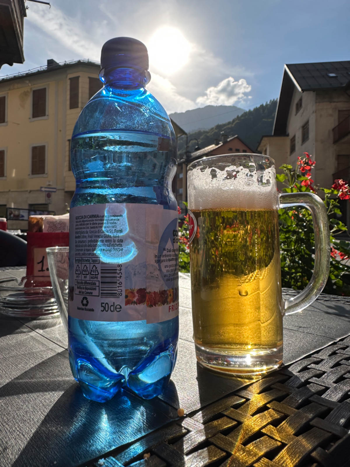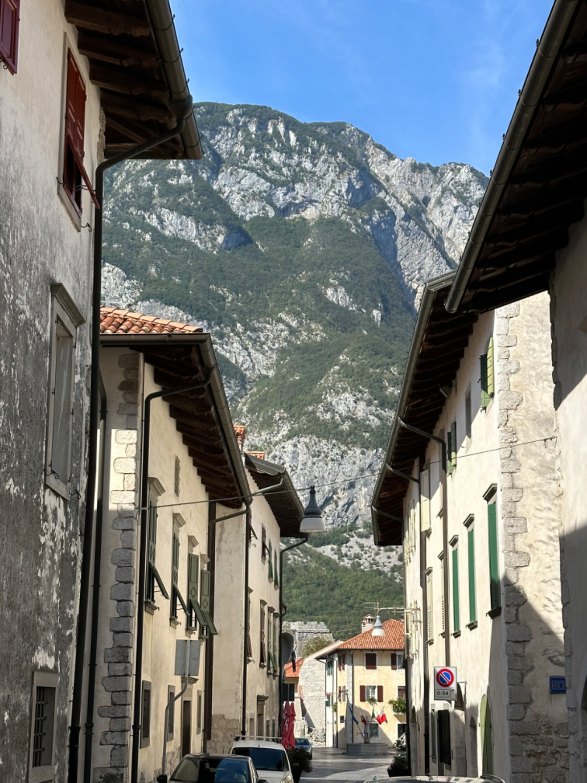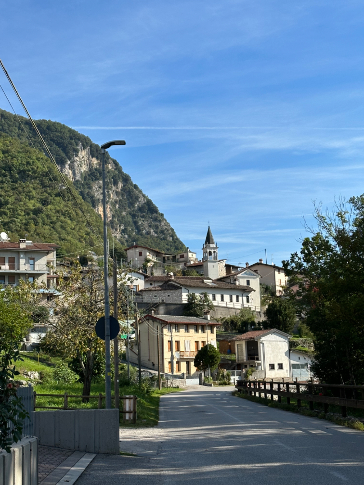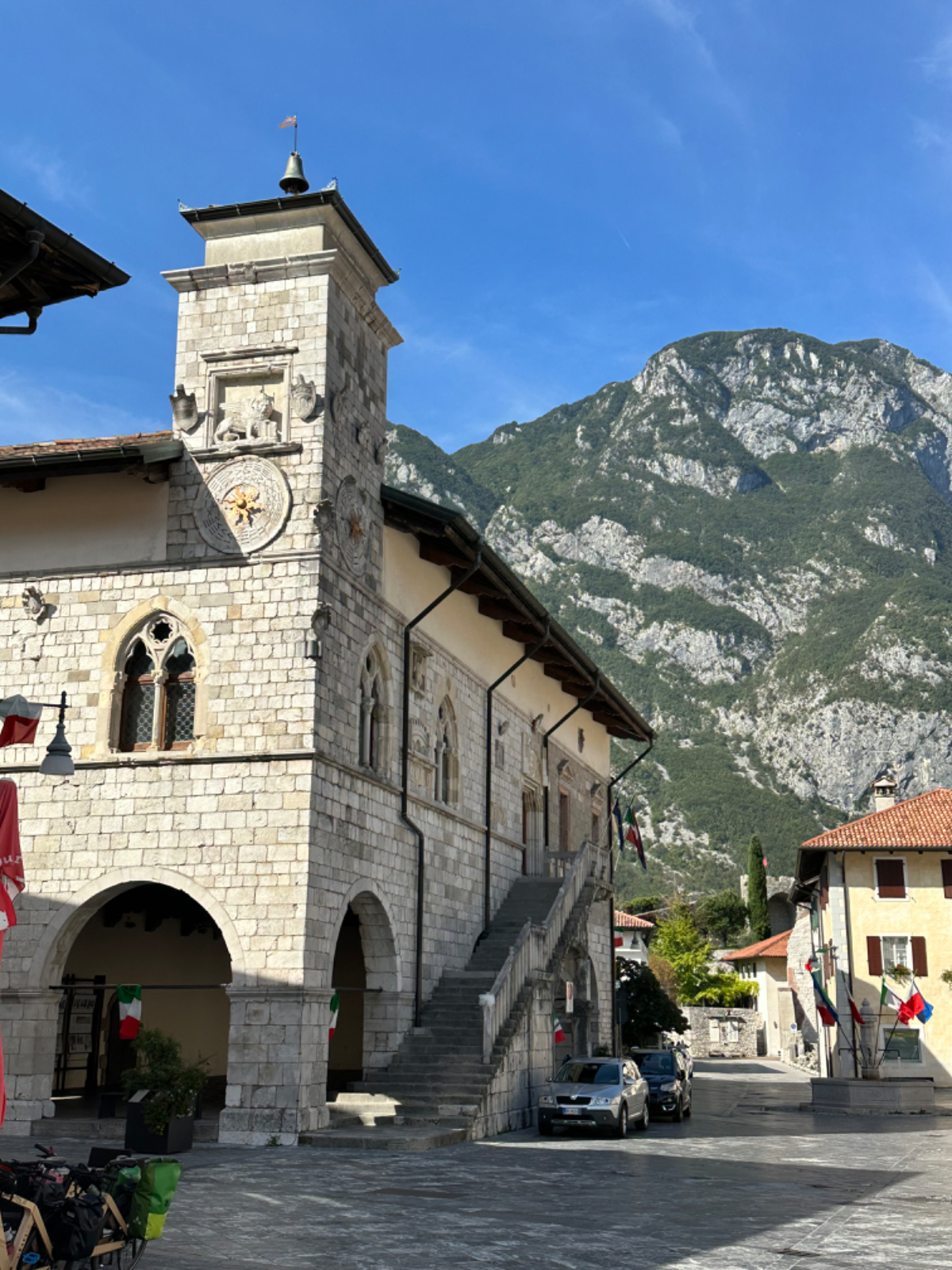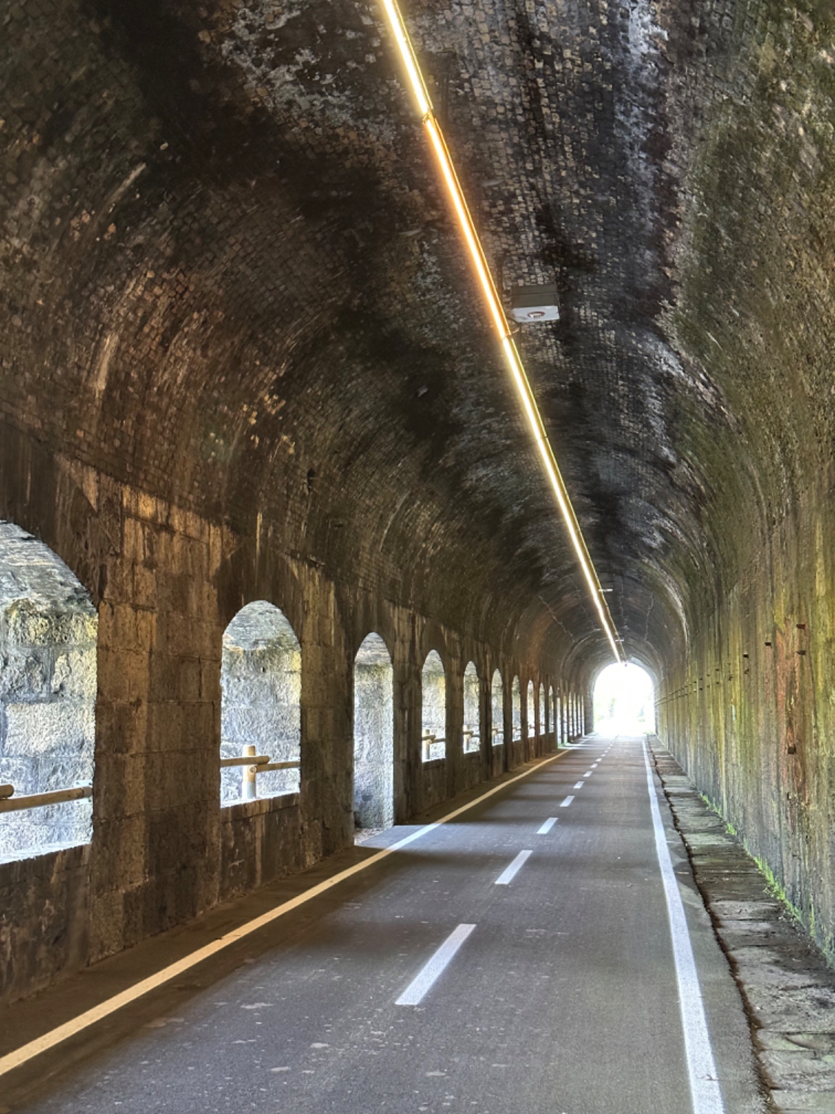 Das Hotel President in Spilimbergo ist ein weiteres auf meiner Reise, das ein großes Restaurant hat, welches aber nicht mehr geöffnet ist. Überall nur noch bed & breakfast, aber das Frühstück war sehr in Ordnung. Das Rad war im Keller sicher untergebracht, auch diesbezüglich hatte ich immer Glück. Beim Rausfahren aus Spilimbergo zeigt sich, dieser Ort ist größer als ich dachte, aber mit dem Navi keinerlei Probleme, die richtigen Wege zu finden. Kaum aus der Stadt, werde ich gleich auf einen Nebenweg geleitet. Nicht schon wieder! Wieder eine derartige Rumpelpiste, dass es kaum ein Vorankommen gibt. Endlich wieder auf der Straße, beschließe ich, nur noch dieser zu folgen, solange es Sinn macht. Ich fahre auf die Berge zu, und bin schon gleich mitten drinnen, es steigt stetig an, wie es in den Bergen so ist ;-) Die Straße ist sehr schmal und kurvenreich, aber es herrscht kaum Verkehr, es geht gut voran. Ich erreiche den Lago di Cornino, einen idyllischen kleinen Bergsee. Dann geht es lange Zeit entlang des Tagliamento auf ruhigen Straßen dahin, bis ich eine Brücke erreiche. Auf der anderen Seite liegt Venzone, mein heutiges Zwischenziel nach 40 Kilometer. Durch das Stadttor erreiche ich einen Platz, an beiden Seiten eine Bar. Ich entscheide mich für links, der Platz liegt in der Sonne. Allerdings trifft das Angebot nicht meinen Geschmack, ich wechsle die Seiten. Gute Wahl, hier gibt es frischen Apfelstrudel, dazu einen café, da ist der Schattenplatz zu vernachlässigen. Am Nebentisch sitzt ein Paar, sie sind auch mit Rädern da. Ich frage nach dem woher und wohin, und erkundige mich über ihre auffallenden Bikes. Es sind Fahrräder aus Holz, eBikes, Made in Oberösterreich, cool! Die beiden, Elisabeth und Eugen kommen aus Wien, sie sind sowohl Motorrad wie auch Rad-Biker. Es war sehr angenehm mit ihnen zu plaudern, dann bekommen sie ihr Essen, und ich muss weiter. Habt noch eine schöne Zeit! :-) Der weitere Weg führt entlang der Bundesstraße bis kurz vor Moggio Udinese, immer leicht ansteigend, anders wird es heute auch nicht mehr. Ich fahre auf den Alpe Adria Radweg, den schönsten Abschnitt vor mir, die ehemalige Bahnstrecke Pontebbana, mit ihren zahllosen Tunnels - in denen es arschkalt ist - und herrlichen Ausblicken auf das Kanaltal. Diesen Weg bin ich schon dreimal gefahren, heute erstmals in die Gegenrichtung. Wie bereits gesagt, es geht nun 30 Kilometer stetig bergan, aber sehr moderat. Der erste Tunnel, wie alle weiteren, ist gut beleuchtet, viele Lichter im Gegenverkehr, es ist noch recht viel Verkehr in Richtung Süden. Wieviel es tatsächlich ist, sehe ich bei meinem nächsten Stopp in Chiusaforte, ein Restaurant in einer ehemalige Bahnstation. Ein älterer Herr, der auch gerade hier halt macht, sagt zu mir, hier stehen Räder im Wert von mindestens 100.000 Euro, er hat Recht! So voll ist es hier. Auch auf der gegenüberliegenden Straßenseite stehen Tische, hier wird mir ein Platz zugewiesen. Am Tisch ein Schild mit der Aufschrift " Riservato Peter 13:30" Mir ist nicht bewusst dass ich reserviert hätte, aber passt doch. Ich bestelle pasta con ragu und Wasser, da kommt eine größere Gruppe von Radlern an, die Reservierung Peter. Peter ist Hotelier in Bodensdorf, er macht mit seinen Gästen eine Tagestour von Tarvisio bis Moggio Udinese, dort werden sie wieder abgeholt. Eine nette Truppe aus Deutschen und Österreichern, wir plaudern eine Weile, dann muss ich aber weiter, wir wünschen uns zum Abschied noch eine gute Reise. Nach dem Essen ist es dann doch ein bisschen mühsam, aber ich finde bald wieder meinen Rhythmus. Pontebba ist bald erreicht, an der Ortseinfahrt eine Werkstatt, Alfa Marchesan. Dio mio, da werden Erinnerungen wach! Vor dreißig Jahren! bin erstmals mit einem Alfa hierher zu Walter gefahren, eine Reparatur die in Österreich ein kleines Vermögen gekostet hätte, wurde von Walter, einem Edelschrauber, kostengünstig erledigt. Seitdem bin ich immer wieder mit diversen Autos zu Walter gefahren. Wenn man die Gesamtkosten inkl. Anfahrt berechnet, war es nicht immer nur eine Kostenentscheidung, Walter hatte einfach mein ultimatives Vertrauen. Gerne hätte ich ihn heute wiedergesehen, doch er war nicht da, er ist auch schon in Pension. Das Albergo Spina in Pontebba ist einfach aber absolut ok, ein eigener abgesperrter Radraum und liegt direkt am Radweg. Bei meiner Ankunft hatte es noch angenehme 22 Grad, ich habe am Hauptplatz in der Sonne zwei kleine Bier genossen. Rund um Pontebba sind hohe Berge, da ist die Sonne leider bald verschwunden, und es wird schnell unangenehm kalt, ich muss hinein und eine Jacke anziehen. Morgens hat es hier zehn Grad ....... Das ist heute also l'ultima notte in Italia, kaum zu glauben, und auch wenn Riki es nicht versteht, es macht mich ein wenig schwermütig. Vielleicht sollte ich morgen umkehren und in den Süden radeln, Zeit habe ich, und die nächste Pension kommt auch in den kommenden Tagen auf's Konto ;-) Realistisch ist aber, morgen habe ich in Villach gebucht, da bleibe ich zwei Tage, ich habe keine saubere Wäsche mehr, und Riki braucht dringend eine Kettenpflege. Dann noch einige Tage am Drauradweg über Maribor heim nach Graz. Ich freue mich darauf! :-))