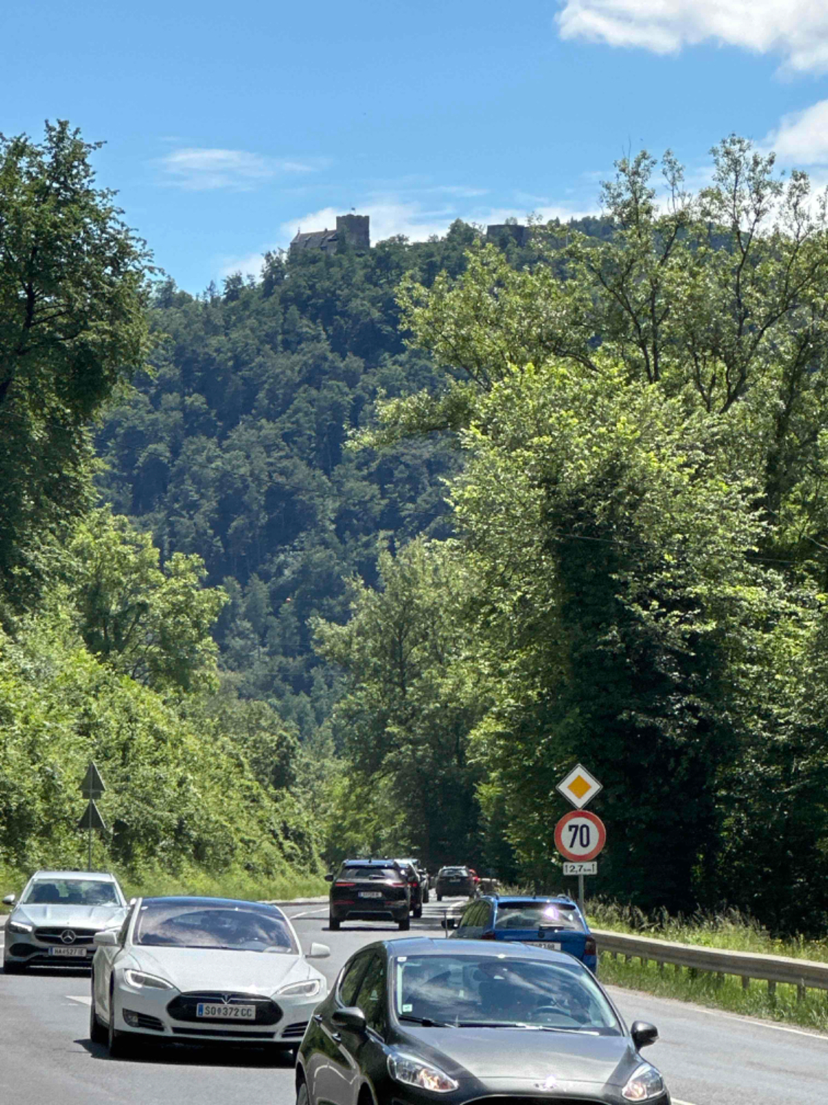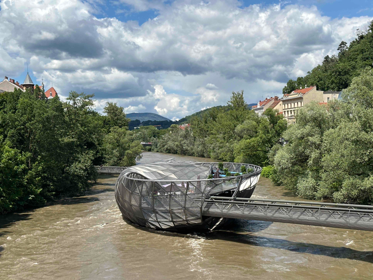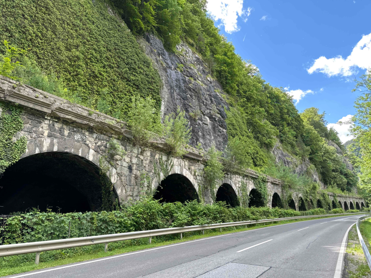 Bis Frohnleiten sind noch einige Spuren der starken Regenfälle der vergangenen Tage zu sehen, ich bin froh nicht vor zwei Tagen hier durchgefahren zu sein. Der Wettergott hatte dankenswerterweise über die gesamte Reise hinweg das schlechte Wetter von mir ferngehalten. In Frohnleiten wollte ich einem Schulfreund kurz Hallo sagen, er betreibt ein Lokal dort. Besser gesagt, betrieb er es, er ist schon wieder weiter gezogen und eröffnet im Juni ein neues Lokal. Entlang der Badlwand Galerie bis hinein nach Peggau muss ich auf die vielbefahrene Landesstraße mit reichlich Schwerverkehr, nicht schön! Viel schöner wird es dann auch bis Graz nicht mehr, bei Gegenwind immer entlang der B67, es ist einfach nur laut. In Peggau gönne ich mir einen letzten Besuch beim Billa, und ja, natürlich hole ich mir eine Leberkässemmel, ein ritueller Abschluß, quasi ;-)