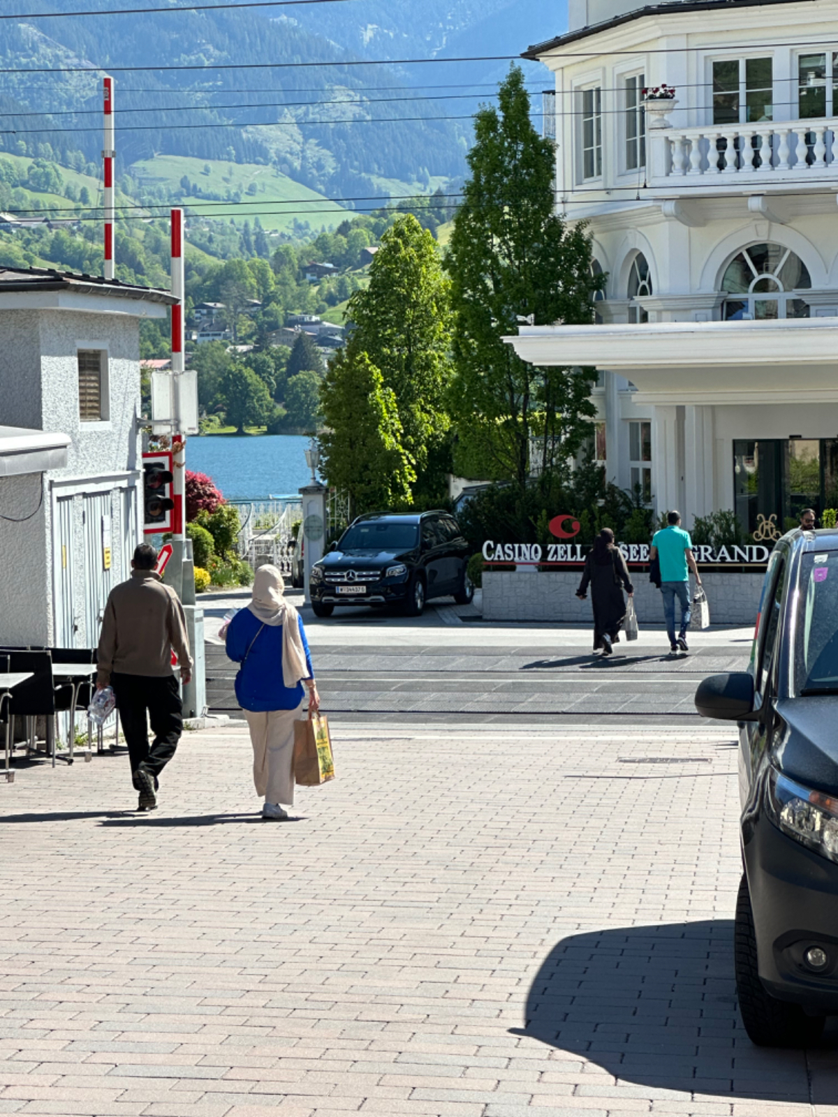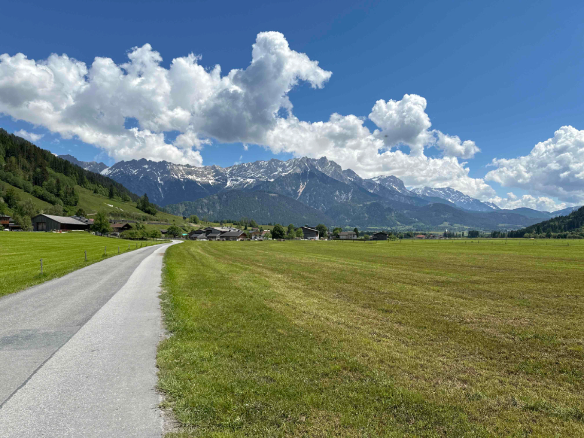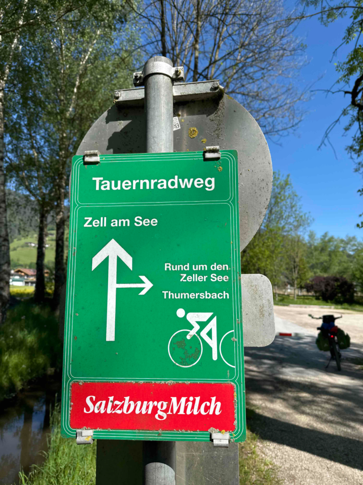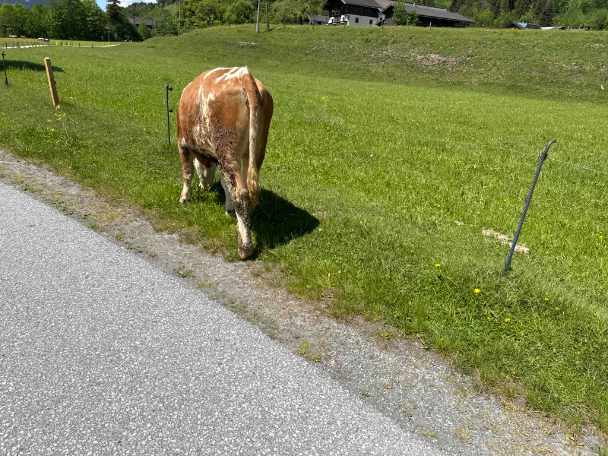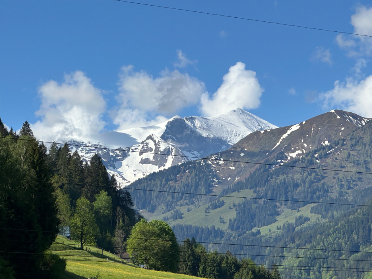 Ein neuer Tag, ein neues Abenteuer:-) Ich hatte mir vorgenommen, mir mehrere Ortsnamen, die an meinem Weg liegen zu merken. Aber aussichtslos, ich bin schon zufrieden wenn ich mir ein paar Highlights merke ;-) Und deren gab es heute viele! Ich muss meine Aussage über den schönsten Tourabschnitt revidieren, Tag 3 Ennstal war super schön, aber heute Tag 5 war eine absolute Steigerung! Beispielsweise Zell am See (und natürlich auch die Fahrt bis dorthin) war eines der Highlights. Über schöne Radwege, verkehrsarme Nebenstraßen erreiche ich nach 20 Kilometer Sellamse. Scheich habe ich in dieser schönen Stadt am See keinen gesehen, aber im Bereich rund um das Grandhotel und Casino etliche, die heute als solche durchgehen ;-) Aber sie lassen sich nicht gerne fotografieren. Entlang des Sees ist die Luft sehr kühl, obwohl bei fast wolkenlosen Himmel die Sonne scheint. Bei der Weiterfahrt ziehe ich mein Gilet verkehrt herum an, damit mir durch den Fahrtwind nicht zu kalt wird, und am Rücken der Schweiß verdunsten kann. So der Plan, aber ganz funktioniert es doch nicht, ich hoffe darauf, dass es bald wärmer wird. Wird es dann auch, als ich gegen Mittag Saalfelden am steinernen Meer erreiche. Die Landschaft bis hierhin war beeindruckend, rundum türmen sich hohe, schneebedeckte Berge auf, schön anzusehen, wenn ich nicht hinauf muss ;-) Entlang einer laaangen Allee radle ich nach Salfelden hinein. Auf der Suche nach einer Möglichkeit, meinen Akku aufzuladen, verliere ich einige Zeit, bin aber nicht erfolgreich. Im Tourismusbüro verweist man mich nach Leogang. Auf gehts nach Leogang. In einer app für ebiker finden sich öffentliche Lademöglichkeiten, alle Angaben für Saalfelden waren allerdings Nieten. In Leogang am Gemeindeamt soll es eine Möglichkeit geben. Gibt es natürlich nicht, aber der Bedienstete gibt mir den entscheidenden Tipp, beim Sport und Freizeitzentrum, das idealerweise an meiner Route liegt, dort haut es hin. Ich lerne dort Dirk kennen, den Betreiber des Restaurant Birnhorn, ein unheimlich netter Typ, bei dem ich fast zwei Stunden verbringe, während der Akku lädt. Dirk ist vor sechs Jahren mit Frau und Kind von Deutschland nach Leogang gezogen um zu bleiben. Leogang ist Sport Hotspot, Sommer wie Winter. Im Winter ein beliebtes Schigebiet, und danach bis zum nächsten Winter fallen die Downhill Biker dort ein, somit ist das ganze Jahr Saison. Wir verabschieden uns, ich muss weiter, vor mir liegen noch etliche Höhenmeter, der höchste Punkt auf 1000 Meter. Es ist jetzt 14 Uhr und die Sonne brennt vom Himmel, auf meiner linken Wade habe ich bereits einen Sonnenbrand. Dass ich Tirol erreicht habe zeigt sich an den Kfz Kennzeichen, aber auch an den Bauernhöfen und Häusern die an meinem Weg liegen. Und an den noch mehr und noch höheren Bergen ringsum. Selbst mir, der es nicht so mit den Bergen hat, entfährt so manches wow, so schön und mächtig sind sie anzusehen. Wie würde es da erst Riki gefallen hier zu radeln, die ja diese Panoramen und die Berge überhaupt liebt. Diese Leidenschaft teilen wir leider gar nicht. Ja, aber sie ist nicht hier, drückt lieber die Schulbank ;-)) Über wunderbare Radwege und teilweise auch Schotterpisten geht es immer weiter hinauf, auf Almen, mit freilaufenden Kühen die meinen Weg kreuzen. Ich glaube, ohne Nachladung des Akkus wäre es sich heute nicht ausgegangen, so steil sind manche Anstiege, dass ich die höchste Unterstützungsstufe verwenden muß. Aber es geht auch wieder hinunter, durch grosse bäuerliche Anwesen hindurch, hinunter, aber auch wieder hinauf. Über der ganzen Gegend liegt ein Geruch nach Kuhdung. Arg, als plötzlich mitten auf der Alm ein riesiger Industrieschornstein auftaucht. Es ist ein Magnesitwerk hier heroben. Die Reihenfolge des geschilderten wird eventuell nicht ganz stimmen, es waren einfach zuviele Eindrücke! Um 16 Uhr nach knapp 80 km erreiche ich St.Johann, wieder eine nette Stadt. Bei einem Italiener genehmige ich mir ein Eis, das ich auf leeren Magen gar nicht gut vertragen habe, ich hab jetzt noch Bauchschmerzen :-( Heute schlafe ich in einem von Rainer Schönfelders Hotels, dem Cooee Hotel, ein tolles Haus. Ich habe Halbpension gebucht, wusste ich gar nicht, habe ich erst gestern auf meiner Buchung gesehen. Also mal ein Tag ohne Billa :-)