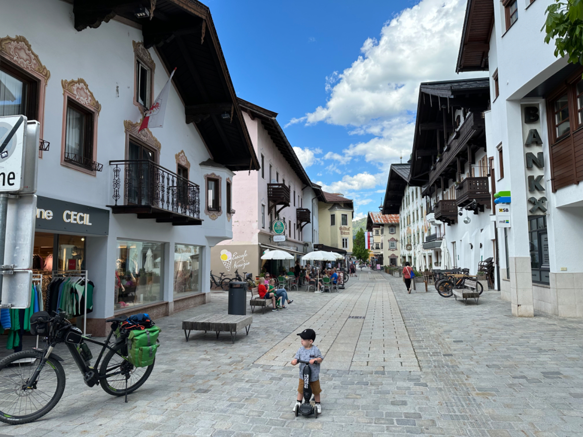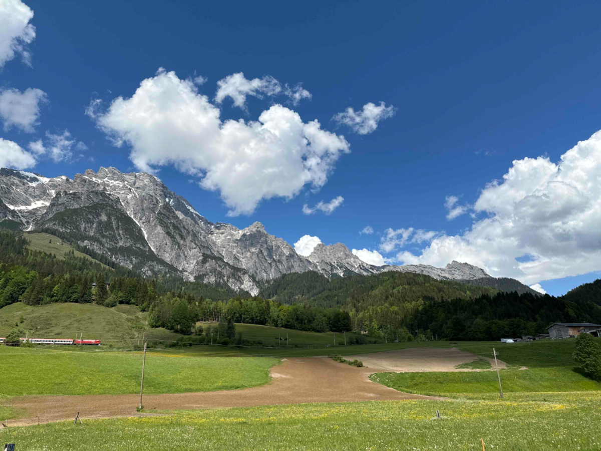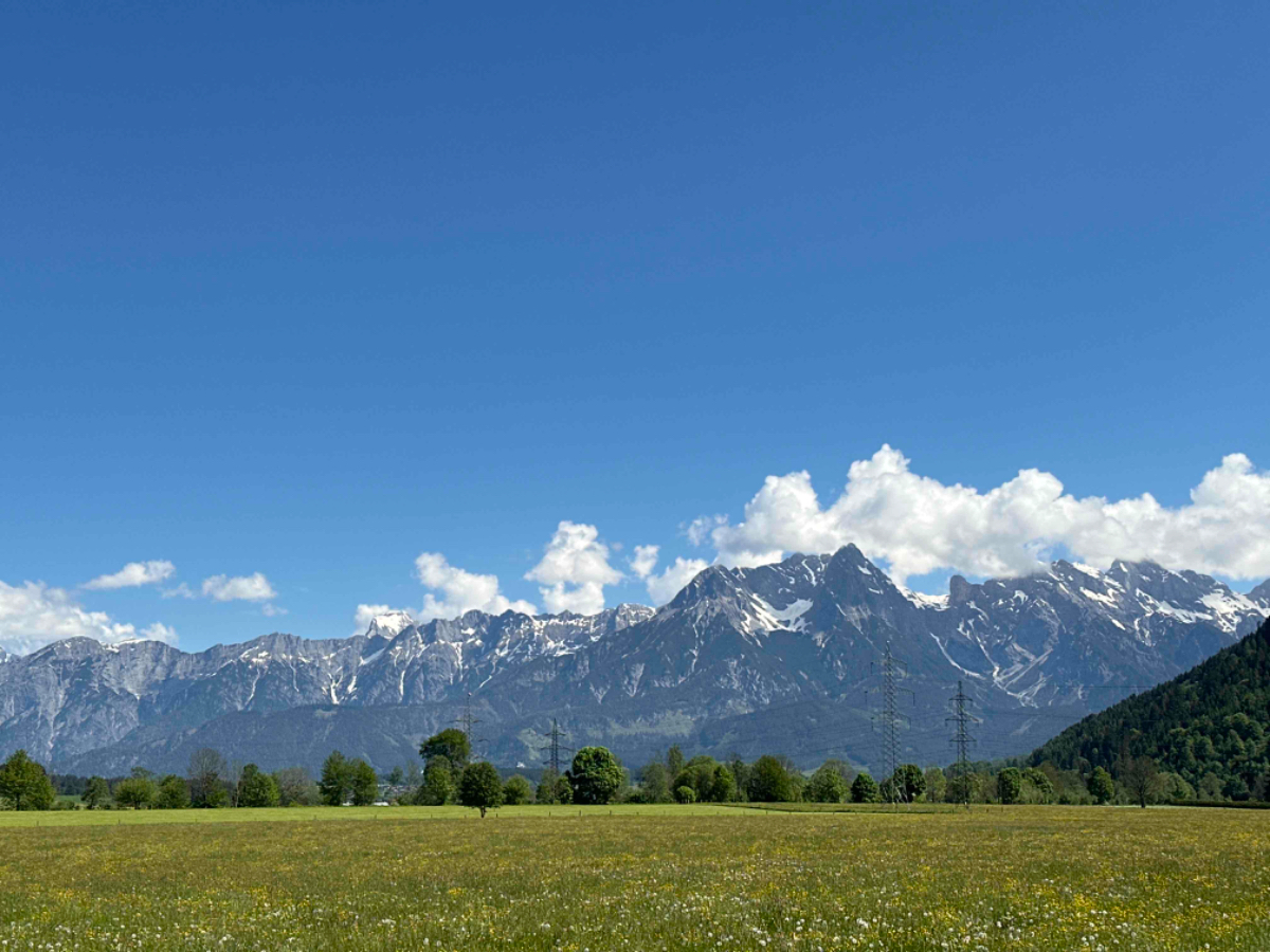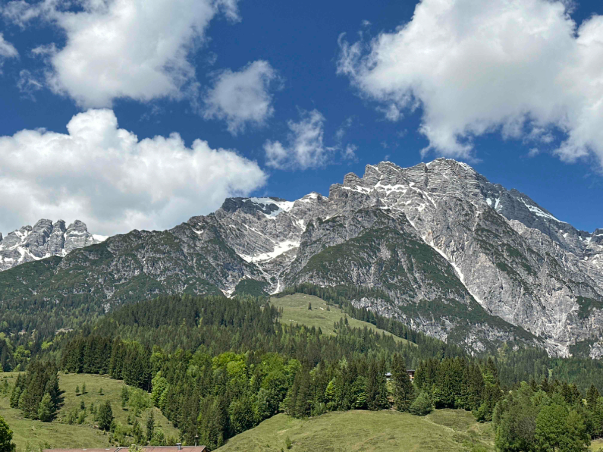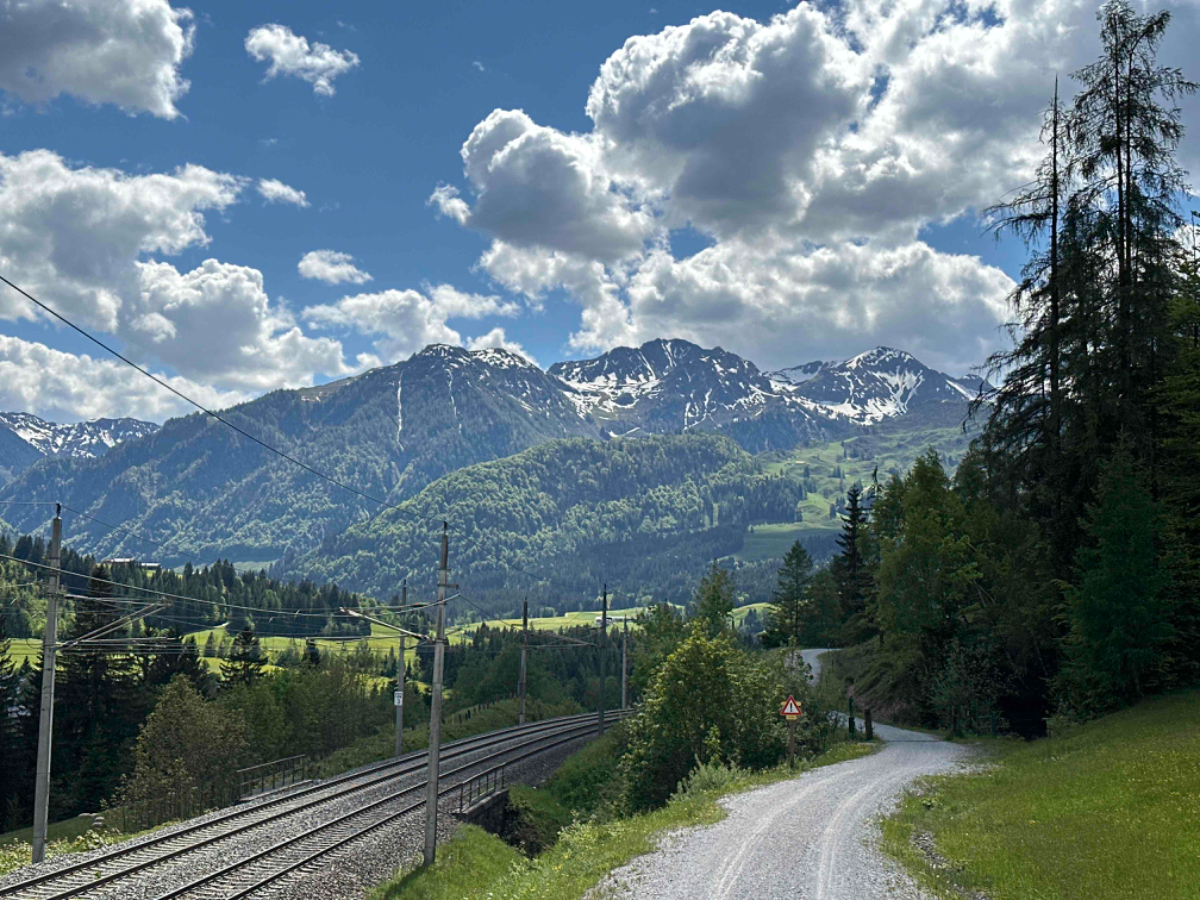 Ein neuer Tag, ein neues Abenteuer:-) Ich hatte mir vorgenommen, mir mehrere Ortsnamen, die an meinem Weg liegen zu merken. Aber aussichtslos, ich bin schon zufrieden wenn ich mir ein paar Highlights merke ;-) Und deren gab es heute viele! Ich muss meine Aussage über den schönsten Tourabschnitt revidieren, Tag 3 Ennstal war super schön, aber heute Tag 5 war eine absolute Steigerung! Beispielsweise Zell am See (und natürlich auch die Fahrt bis dorthin) war eines der Highlights. Über schöne Radwege, verkehrsarme Nebenstraßen erreiche ich nach 20 Kilometer Sellamse. Scheich habe ich in dieser schönen Stadt am See keinen gesehen, aber im Bereich rund um das Grandhotel und Casino etliche, die heute als solche durchgehen ;-) Aber sie lassen sich nicht gerne fotografieren. Entlang des Sees ist die Luft sehr kühl, obwohl bei fast wolkenlosen Himmel die Sonne scheint. Bei der Weiterfahrt ziehe ich mein Gilet verkehrt herum an, damit mir durch den Fahrtwind nicht zu kalt wird, und am Rücken der Schweiß verdunsten kann. So der Plan, aber ganz funktioniert es doch nicht, ich hoffe darauf, dass es bald wärmer wird. Wird es dann auch, als ich gegen Mittag Saalfelden am steinernen Meer erreiche. Die Landschaft bis hierhin war beeindruckend, rundum türmen sich hohe, schneebedeckte Berge auf, schön anzusehen, wenn ich nicht hinauf muss ;-) Entlang einer laaangen Allee radle ich nach Salfelden hinein. Auf der Suche nach einer Möglichkeit, meinen Akku aufzuladen, verliere ich einige Zeit, bin aber nicht erfolgreich. Im Tourismusbüro verweist man mich nach Leogang. Auf gehts nach Leogang. In einer app für ebiker finden sich öffentliche Lademöglichkeiten, alle Angaben für Saalfelden waren allerdings Nieten. In Leogang am Gemeindeamt soll es eine Möglichkeit geben. Gibt es natürlich nicht, aber der Bedienstete gibt mir den entscheidenden Tipp, beim Sport und Freizeitzentrum, das idealerweise an meiner Route liegt, dort haut es hin. Ich lerne dort Dirk kennen, den Betreiber des Restaurant Birnhorn, ein unheimlich netter Typ, bei dem ich fast zwei Stunden verbringe, während der Akku lädt. Dirk ist vor sechs Jahren mit Frau und Kind von Deutschland nach Leogang gezogen um zu bleiben. Leogang ist Sport Hotspot, Sommer wie Winter. Im Winter ein beliebtes Schigebiet, und danach bis zum nächsten Winter fallen die Downhill Biker dort ein, somit ist das ganze Jahr Saison. Wir verabschieden uns, ich muss weiter, vor mir liegen noch etliche Höhenmeter, der höchste Punkt auf 1000 Meter. Es ist jetzt 14 Uhr und die Sonne brennt vom Himmel, auf meiner linken Wade habe ich bereits einen Sonnenbrand. Dass ich Tirol erreicht habe zeigt sich an den Kfz Kennzeichen, aber auch an den Bauernhöfen und Häusern die an meinem Weg liegen. Und an den noch mehr und noch höheren Bergen ringsum. Selbst mir, der es nicht so mit den Bergen hat, entfährt so manches wow, so schön und mächtig sind sie anzusehen. Wie würde es da erst Riki gefallen hier zu radeln, die ja diese Panoramen und die Berge überhaupt liebt. Diese Leidenschaft teilen wir leider gar nicht. Ja, aber sie ist nicht hier, drückt lieber die Schulbank ;-)) Über wunderbare Radwege und teilweise auch Schotterpisten geht es immer weiter hinauf, auf Almen, mit freilaufenden Kühen die meinen Weg kreuzen. Ich glaube, ohne Nachladung des Akkus wäre es sich heute nicht ausgegangen, so steil sind manche Anstiege, dass ich die höchste Unterstützungsstufe verwenden muß. Aber es geht auch wieder hinunter, durch grosse bäuerliche Anwesen hindurch, hinunter, aber auch wieder hinauf. Über der ganzen Gegend liegt ein Geruch nach Kuhdung. Arg, als plötzlich mitten auf der Alm ein riesiger Industrieschornstein auftaucht. Es ist ein Magnesitwerk hier heroben. Die Reihenfolge des geschilderten wird eventuell nicht ganz stimmen, es waren einfach zuviele Eindrücke! Um 16 Uhr nach knapp 80 km erreiche ich St.Johann, wieder eine nette Stadt. Bei einem Italiener genehmige ich mir ein Eis, das ich auf leeren Magen gar nicht gut vertragen habe, ich hab jetzt noch Bauchschmerzen :-( Heute schlafe ich in einem von Rainer Schönfelders Hotels, dem Cooee Hotel, ein tolles Haus. Ich habe Halbpension gebucht, wusste ich gar nicht, habe ich erst gestern auf meiner Buchung gesehen. Also mal ein Tag ohne Billa :-)