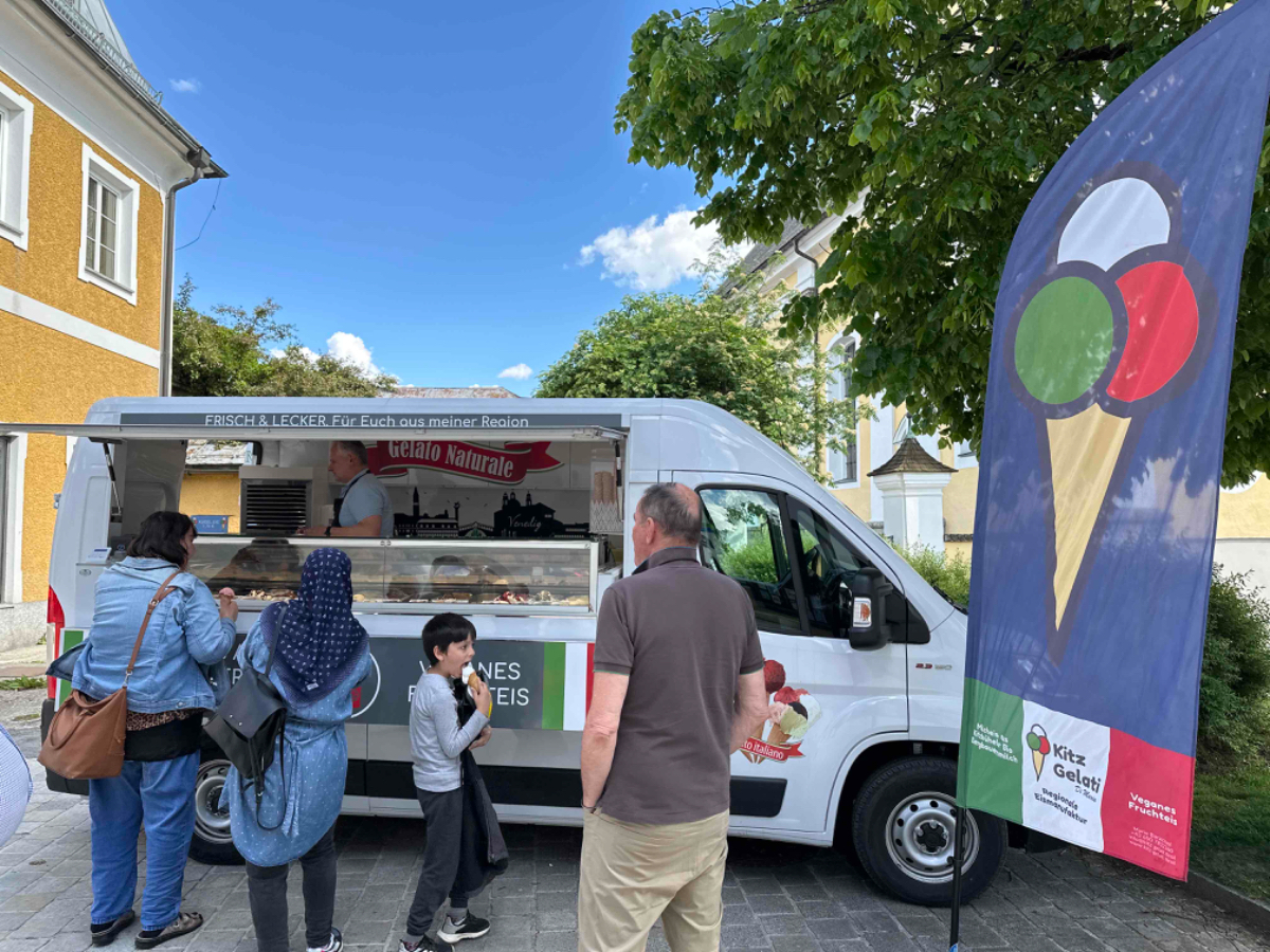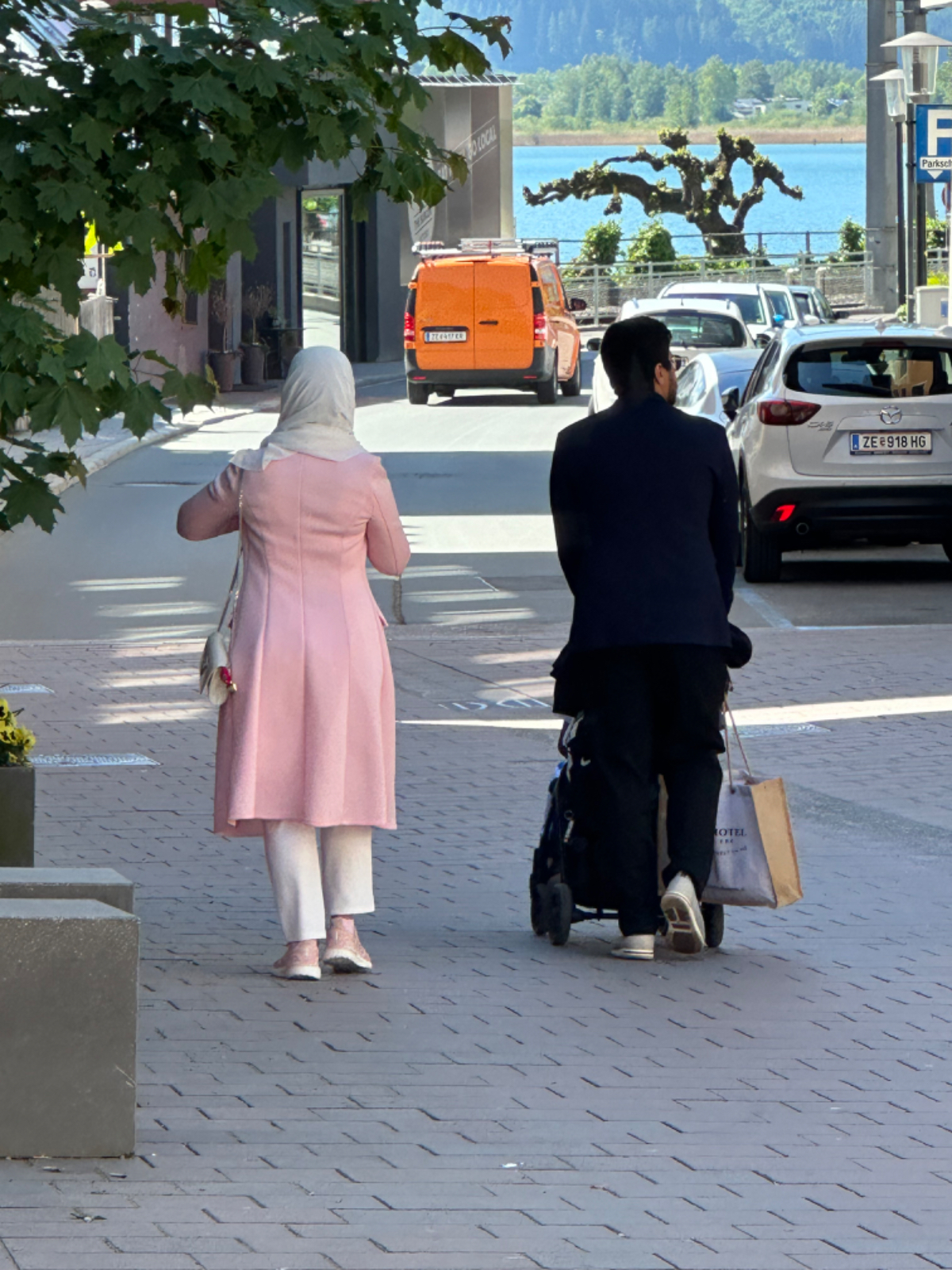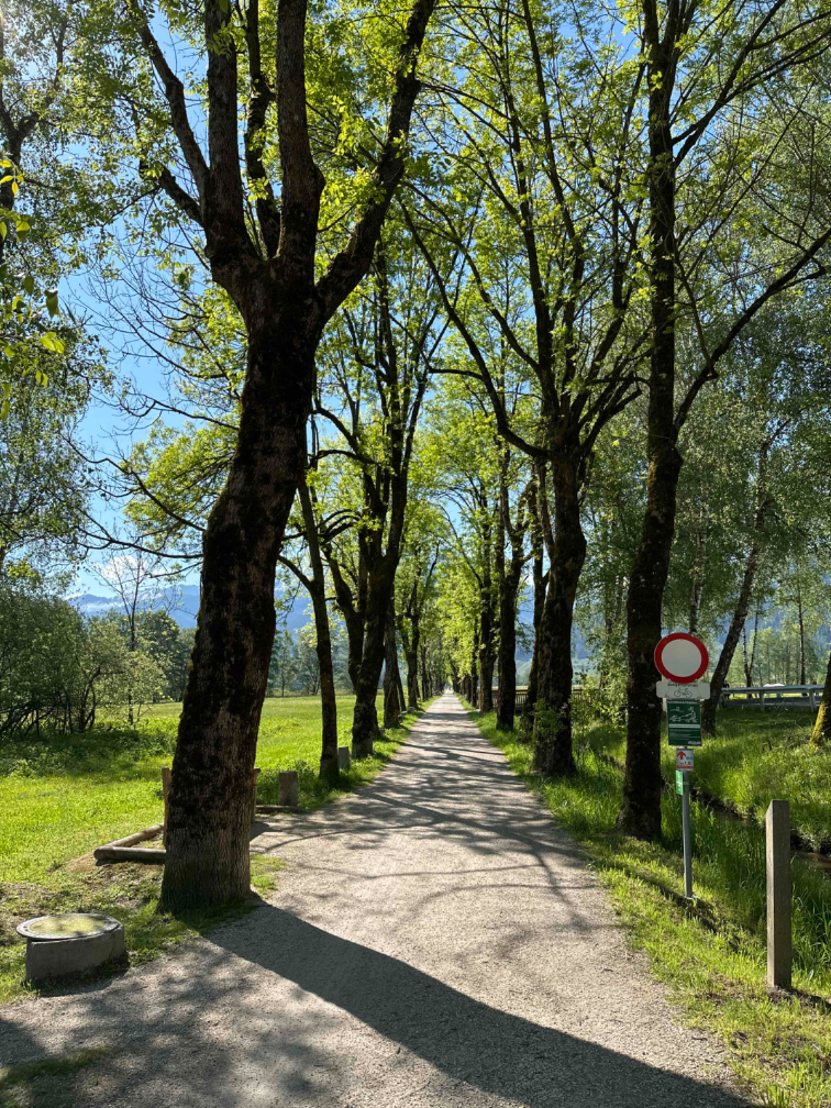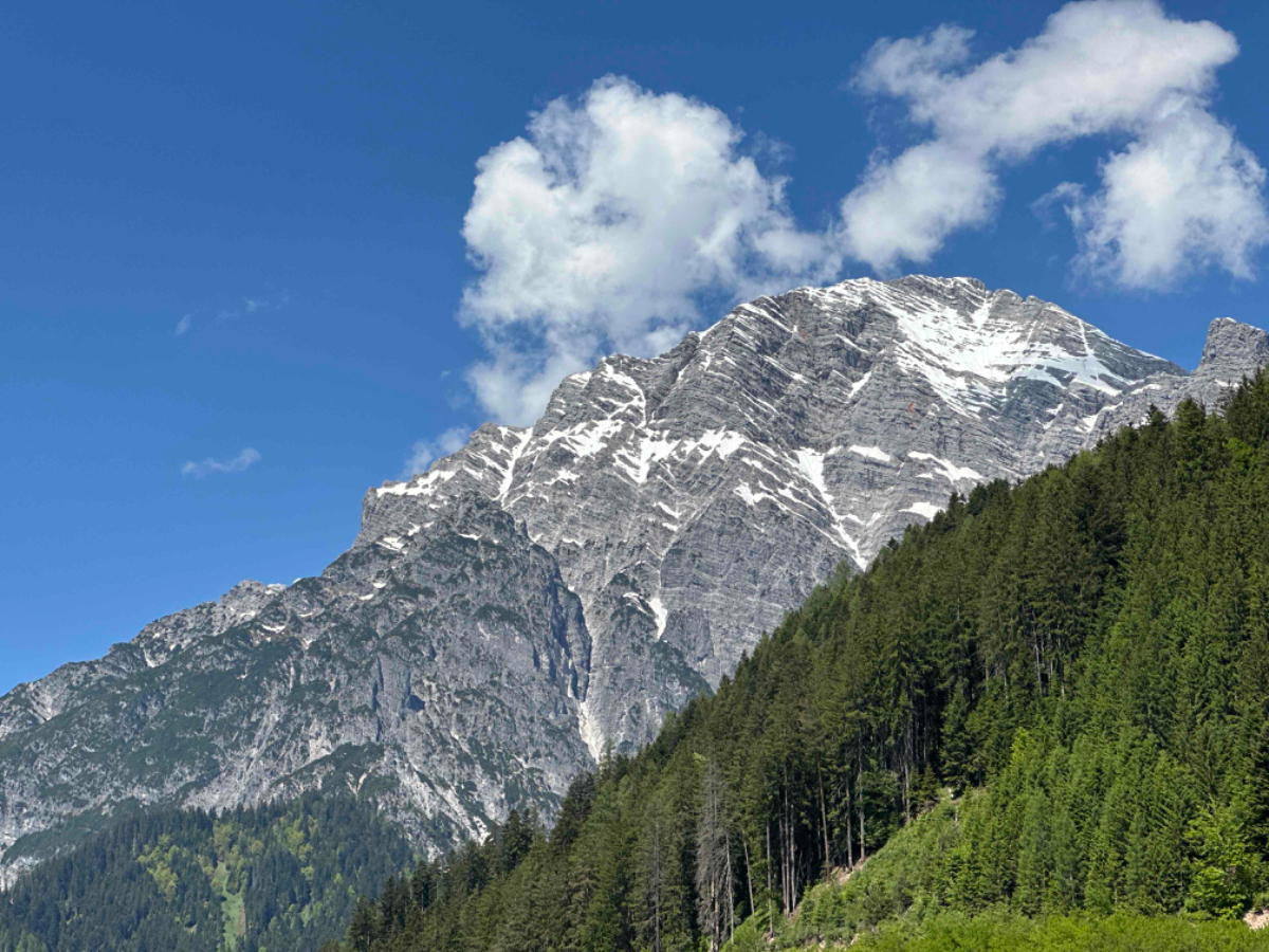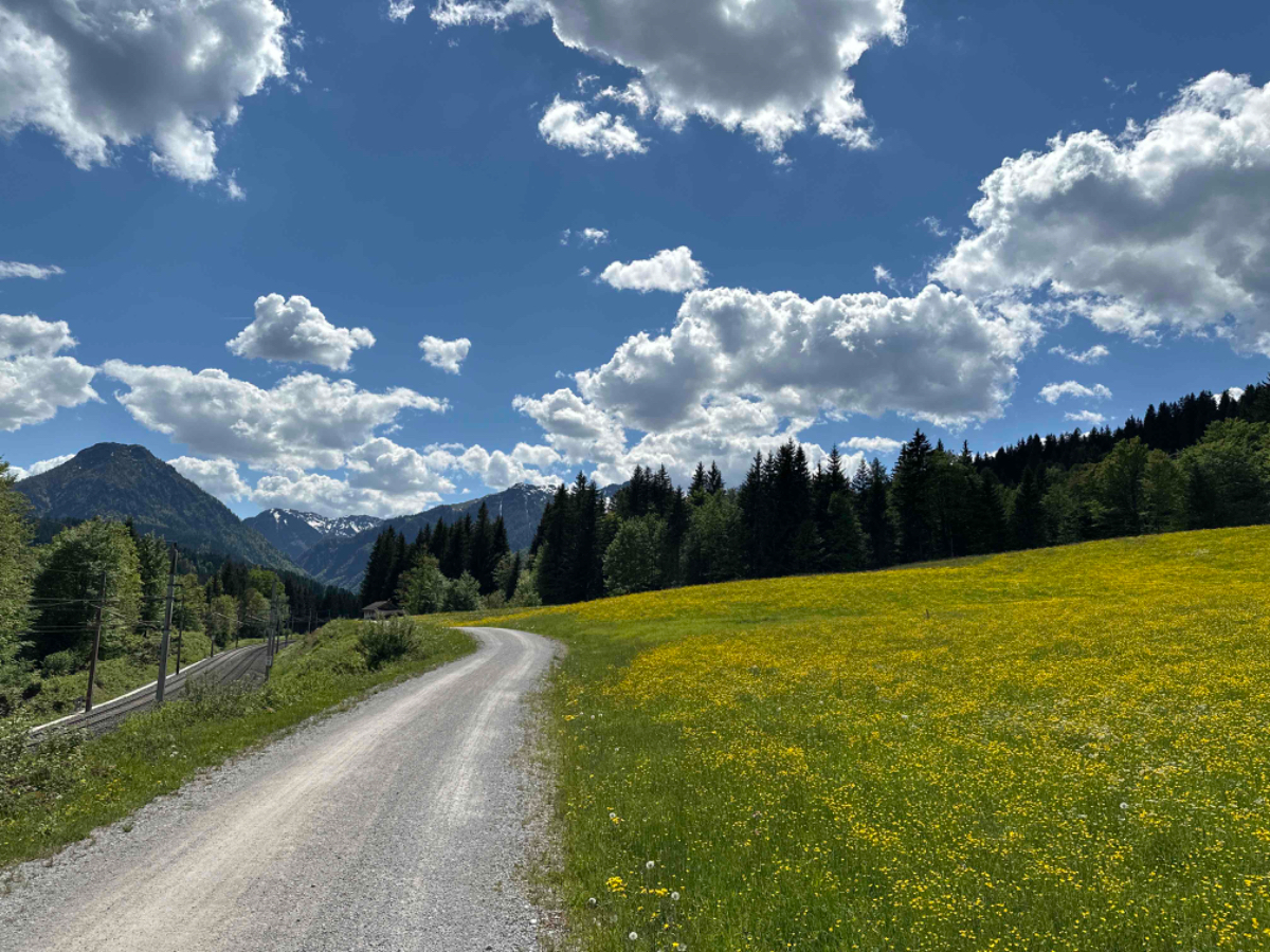 Ein neuer Tag, ein neues Abenteuer:-) Ich hatte mir vorgenommen, mir mehrere Ortsnamen, die an meinem Weg liegen zu merken. Aber aussichtslos, ich bin schon zufrieden wenn ich mir ein paar Highlights merke ;-) Und deren gab es heute viele! Ich muss meine Aussage über den schönsten Tourabschnitt revidieren, Tag 3 Ennstal war super schön, aber heute Tag 5 war eine absolute Steigerung! Beispielsweise Zell am See (und natürlich auch die Fahrt bis dorthin) war eines der Highlights. Über schöne Radwege, verkehrsarme Nebenstraßen erreiche ich nach 20 Kilometer Sellamse. Scheich habe ich in dieser schönen Stadt am See keinen gesehen, aber im Bereich rund um das Grandhotel und Casino etliche, die heute als solche durchgehen ;-) Aber sie lassen sich nicht gerne fotografieren. Entlang des Sees ist die Luft sehr kühl, obwohl bei fast wolkenlosen Himmel die Sonne scheint. Bei der Weiterfahrt ziehe ich mein Gilet verkehrt herum an, damit mir durch den Fahrtwind nicht zu kalt wird, und am Rücken der Schweiß verdunsten kann. So der Plan, aber ganz funktioniert es doch nicht, ich hoffe darauf, dass es bald wärmer wird. Wird es dann auch, als ich gegen Mittag Saalfelden am steinernen Meer erreiche. Die Landschaft bis hierhin war beeindruckend, rundum türmen sich hohe, schneebedeckte Berge auf, schön anzusehen, wenn ich nicht hinauf muss ;-) Entlang einer laaangen Allee radle ich nach Salfelden hinein. Auf der Suche nach einer Möglichkeit, meinen Akku aufzuladen, verliere ich einige Zeit, bin aber nicht erfolgreich. Im Tourismusbüro verweist man mich nach Leogang. Auf gehts nach Leogang. In einer app für ebiker finden sich öffentliche Lademöglichkeiten, alle Angaben für Saalfelden waren allerdings Nieten. In Leogang am Gemeindeamt soll es eine Möglichkeit geben. Gibt es natürlich nicht, aber der Bedienstete gibt mir den entscheidenden Tipp, beim Sport und Freizeitzentrum, das idealerweise an meiner Route liegt, dort haut es hin. Ich lerne dort Dirk kennen, den Betreiber des Restaurant Birnhorn, ein unheimlich netter Typ, bei dem ich fast zwei Stunden verbringe, während der Akku lädt. Dirk ist vor sechs Jahren mit Frau und Kind von Deutschland nach Leogang gezogen um zu bleiben. Leogang ist Sport Hotspot, Sommer wie Winter. Im Winter ein beliebtes Schigebiet, und danach bis zum nächsten Winter fallen die Downhill Biker dort ein, somit ist das ganze Jahr Saison. Wir verabschieden uns, ich muss weiter, vor mir liegen noch etliche Höhenmeter, der höchste Punkt auf 1000 Meter. Es ist jetzt 14 Uhr und die Sonne brennt vom Himmel, auf meiner linken Wade habe ich bereits einen Sonnenbrand. Dass ich Tirol erreicht habe zeigt sich an den Kfz Kennzeichen, aber auch an den Bauernhöfen und Häusern die an meinem Weg liegen. Und an den noch mehr und noch höheren Bergen ringsum. Selbst mir, der es nicht so mit den Bergen hat, entfährt so manches wow, so schön und mächtig sind sie anzusehen. Wie würde es da erst Riki gefallen hier zu radeln, die ja diese Panoramen und die Berge überhaupt liebt. Diese Leidenschaft teilen wir leider gar nicht. Ja, aber sie ist nicht hier, drückt lieber die Schulbank ;-)) Über wunderbare Radwege und teilweise auch Schotterpisten geht es immer weiter hinauf, auf Almen, mit freilaufenden Kühen die meinen Weg kreuzen. Ich glaube, ohne Nachladung des Akkus wäre es sich heute nicht ausgegangen, so steil sind manche Anstiege, dass ich die höchste Unterstützungsstufe verwenden muß. Aber es geht auch wieder hinunter, durch grosse bäuerliche Anwesen hindurch, hinunter, aber auch wieder hinauf. Über der ganzen Gegend liegt ein Geruch nach Kuhdung. Arg, als plötzlich mitten auf der Alm ein riesiger Industrieschornstein auftaucht. Es ist ein Magnesitwerk hier heroben. Die Reihenfolge des geschilderten wird eventuell nicht ganz stimmen, es waren einfach zuviele Eindrücke! Um 16 Uhr nach knapp 80 km erreiche ich St.Johann, wieder eine nette Stadt. Bei einem Italiener genehmige ich mir ein Eis, das ich auf leeren Magen gar nicht gut vertragen habe, ich hab jetzt noch Bauchschmerzen :-( Heute schlafe ich in einem von Rainer Schönfelders Hotels, dem Cooee Hotel, ein tolles Haus. Ich habe Halbpension gebucht, wusste ich gar nicht, habe ich erst gestern auf meiner Buchung gesehen. Also mal ein Tag ohne Billa :-)