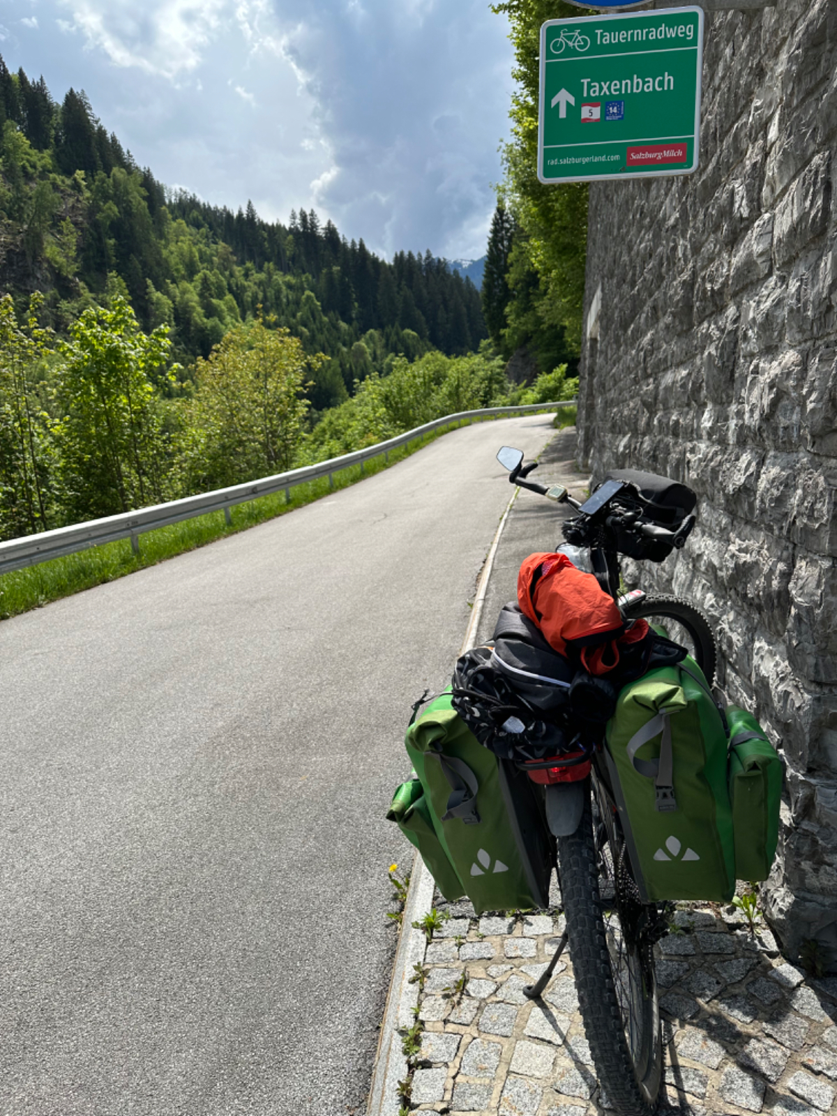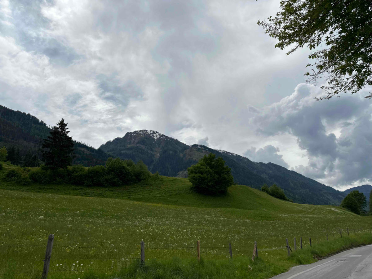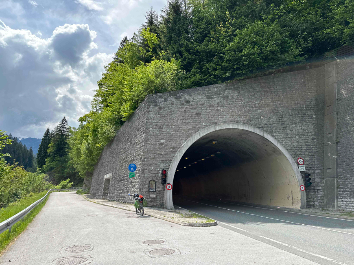 Matratze ultraweich, Rückenschmerzen dennoch erträglich, Frühstück na ja, geht so aber eh ok, kurzum Schladming abgeschlossen. Und dennoch, der Tourabschnitt gestern von Selzthal nach Schladming wird schwer zu toppen sein, es hat so vieles gepasst und hat mir großen Spaß gebracht. Heute geht’s bei wolkenverhangenem Himmel schon um 8:30 los, erstes Ziel Radstadt. Schöne Wege, durch Wald und Wiesen, im Wald doch so kalt, dass ich stehenbleibe um eine langärmelige Jacke anzuziehen. Als ich weiterfuhr, durchzuckte mich plötzlich ein Gedanke, habe ich wohl das verschwitzte Gilet wieder eingepackt. Stehenbleiben, nachsehen, alles da. Aber da erst bemerke ich, dass ich beim Jackenwechsel vergessen habe, meine Gürteltasche wieder umzuhängen, und die liegt ungesichert und unbefestigt hinten am Rad. Glück gehabt, dass ich auf meine innere Stimme gehört habe, Danke Unterbewusstsein! Wäre denkbar schlecht gewesen, bei Verlust der Tasche wäre ich ohne Geld, Karten etc. ziemlich blöd dagestanden. Ich erreiche Altenmarkt und fahre am Atomic Betriebsgelände vorbei, eine erstaunlich große Anlage „nur“ um Schi zu produzieren. Auf einigen Bergspitzen rundum liegt noch Schnee, es regnet zwar nicht, aber warm ist anders. Es geht ständig bergauf, ich schwitze in meinen drei Lagen, aber ohne wäre es einfach zu kalt heute. Endlich oben angekommen, beginnt eine rasante Talfahrt hinunter nach Wagrain. Es ist wieder ein Billa, der mich magisch anzieht, obwohl ich dieses Geschäft eigentlich nicht mag. Aber auf dieser Tour lande ich täglich bei einem. Ich hole mir Wasser und eine Käsesemmel und Bananen. Es kommt sogar die Sonne kurz durch die Wolkendecke, die mich bei meiner Jause vorm Billa wärmt. Mich fröstelt, ich bin total durchgeschwitzt und ziehe die nasse Jacke aus. Das Shirt trocknet in der Sonne am Körper, sehr angenehm :-) Jetzt erweist es sich als Glücksfall, dass ich mehrere Jacken eingepackt habe, so habe ich noch eine trockene für die Weiterfahrt. Die brauche ich dann auch, es geht über eine wenig befahrene, kurvenreiche Straße einige Kilometer bis hinunter nach Sankt Johann im Pongau, dort wird es endlich wärmer. Nun folge ich für einige Zeit dem Tauern Radweg entlang der Salzach bis Schwarzach. Endlich für ein paar Kilometer gemütlich radeln, gefällt mir :-) Aber es bleibt nicht so, der Weg führt zum Teil sehr steil immer höher hinauf, weit unten an den steilen Hängen fließt die Salzach. Wer wohnt freiwillig hier heroben und bewirtschaftet die steilen Leiten, von der mühsamen Zu-und Abfahrt überkommt mich - als nur bedingt höhenfest bekannt - schon im Sommer das Grauen, wie ist‘s dann erst im Winter? Weiter oben erreiche ich einen großen leeren Speichersee. Laut einer Spaziergängerin ist er nur im Herbst voll. Er gehört zu einem Kraftwerk in Schwarzach. Bevor es runter geht, nochmals hinauf, ich mach mir langsam Sorgen, ob mein Akku heute durchhält. Bei normaler Belastung und nur geringen Steigungen reicht die Vollladung für gerade mal 85km. Bei vielen Höhenmetern bin ich froh, wenn ich 70km schaffe. Und um die 70 werden es heute auch werden. Als es endlich bergab geht, muss ich an einer Kreuzung eine Entscheidung treffen, folge ich dem Tauernradweg, oder folge ich meiner Navi Route. Ich entscheide mich fürs Navi, und hoffe dass es kein Fehler war, denn nochmals zurück nach oben ist mit dem Akku keine Option. Es geht eine steile Rampe hinunter, ein handgeschriebenes Schild weist darauf hin, dass für Fahrräder die Durchfahrt nach Schwarzach nicht möglich ist. Gilt nicht für mich, denke ich, ich komme ja aus dieser Richtung, also weiter. Das Gefälle hat sicher 20%, hinauf ist definitiv ausgeschlossen. Unten an der Landesstrasse entlang der Salzach angekommen, bin ich das einzige Fahrzeug. Kurz vor Lind weiß ich auch warum, die Straße ist wegen einer Großbaustelle gesperrt, aber mit dem Rad komme ich glücklicherweise durch, obwohl mich die Arbeiter sehr sparsam mustern und meinen Gruß nicht erwidern. Ich fahre noch einige Zeit allein dahin, hin und wieder kommt ein Baustellen LKW daher. Als ich die Bundesstraße erreiche, gibt es auch wieder einen Radweg neben der Straße. Durch den Tunnel der vor mir auftaucht, muss ich zum Glück nicht durch, die alte Straße führt außen herum. Und dann ist nach 73km endlich Taxenbach erreicht. Mein Quartier nennt sich Sportpension Sonnhof, und ist kurz gesagt, schon seeehr in die Jahre gekommen. Den Inhaber, der gebrochen deutsch spricht, musste ich im Keller suchen, um den Zimmerschlüssel zu bekommen. Die Tür ist ein optischer, aber kein akustischer Verschluss, genauso wie die Tür zum Balkon, der direkt auf die vielbefahrene Bundesstraße hinaus geht. Von den hellhörigen Wänden gar nicht zu sprechen. An und für sich bin ich beim schlafen nicht sehr lärmempfindlich, mal sehen ob‘s stimmt ;-) Zu essen gibt es hier natürlich nichts, und auch in Taxenbach City habe ich nichts gefunden. Also was bleibt? Genau, mein Billa, den es hier natürlich auch gibt. Ich shoppe ein kleines Bier, einen großen Salat und zwei Läberkässemmeln. Am lauschigen Balkon mit reichlich Straßenlärm lasse ich es mir trotzdem gut schmecken :-) Mittlerweile hat es zu regnen begonnen, aber die Prognose für morgen „Not so bad“