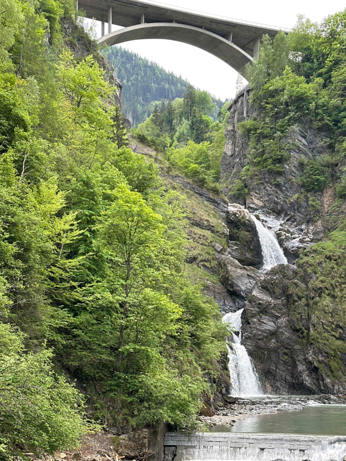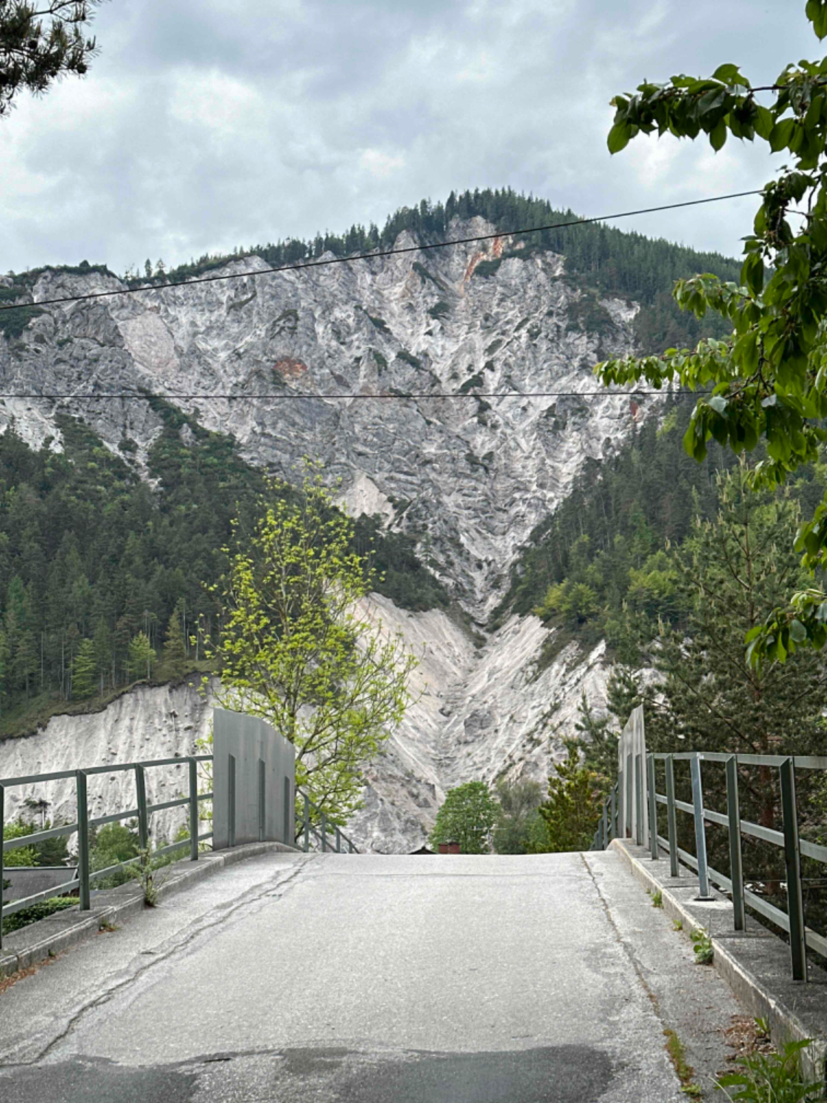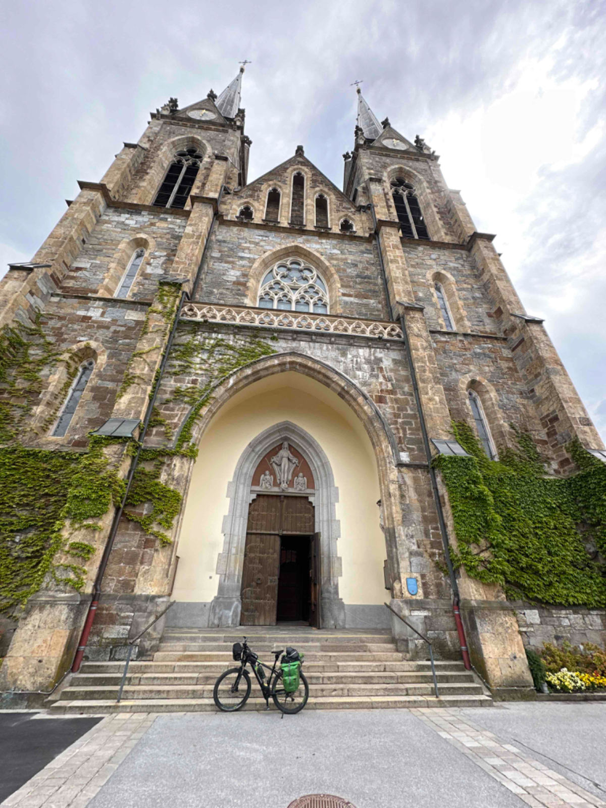 Matratze ultraweich, Rückenschmerzen dennoch erträglich, Frühstück na ja, geht so aber eh ok, kurzum Schladming abgeschlossen. Und dennoch, der Tourabschnitt gestern von Selzthal nach Schladming wird schwer zu toppen sein, es hat so vieles gepasst und hat mir großen Spaß gebracht. Heute geht’s bei wolkenverhangenem Himmel schon um 8:30 los, erstes Ziel Radstadt. Schöne Wege, durch Wald und Wiesen, im Wald doch so kalt, dass ich stehenbleibe um eine langärmelige Jacke anzuziehen. Als ich weiterfuhr, durchzuckte mich plötzlich ein Gedanke, habe ich wohl das verschwitzte Gilet wieder eingepackt. Stehenbleiben, nachsehen, alles da. Aber da erst bemerke ich, dass ich beim Jackenwechsel vergessen habe, meine Gürteltasche wieder umzuhängen, und die liegt ungesichert und unbefestigt hinten am Rad. Glück gehabt, dass ich auf meine innere Stimme gehört habe, Danke Unterbewusstsein! Wäre denkbar schlecht gewesen, bei Verlust der Tasche wäre ich ohne Geld, Karten etc. ziemlich blöd dagestanden. Ich erreiche Altenmarkt und fahre am Atomic Betriebsgelände vorbei, eine erstaunlich große Anlage „nur“ um Schi zu produzieren. Auf einigen Bergspitzen rundum liegt noch Schnee, es regnet zwar nicht, aber warm ist anders. Es geht ständig bergauf, ich schwitze in meinen drei Lagen, aber ohne wäre es einfach zu kalt heute. Endlich oben angekommen, beginnt eine rasante Talfahrt hinunter nach Wagrain. Es ist wieder ein Billa, der mich magisch anzieht, obwohl ich dieses Geschäft eigentlich nicht mag. Aber auf dieser Tour lande ich täglich bei einem. Ich hole mir Wasser und eine Käsesemmel und Bananen. Es kommt sogar die Sonne kurz durch die Wolkendecke, die mich bei meiner Jause vorm Billa wärmt. Mich fröstelt, ich bin total durchgeschwitzt und ziehe die nasse Jacke aus. Das Shirt trocknet in der Sonne am Körper, sehr angenehm :-) Jetzt erweist es sich als Glücksfall, dass ich mehrere Jacken eingepackt habe, so habe ich noch eine trockene für die Weiterfahrt. Die brauche ich dann auch, es geht über eine wenig befahrene, kurvenreiche Straße einige Kilometer bis hinunter nach Sankt Johann im Pongau, dort wird es endlich wärmer. Nun folge ich für einige Zeit dem Tauern Radweg entlang der Salzach bis Schwarzach. Endlich für ein paar Kilometer gemütlich radeln, gefällt mir :-) Aber es bleibt nicht so, der Weg führt zum Teil sehr steil immer höher hinauf, weit unten an den steilen Hängen fließt die Salzach. Wer wohnt freiwillig hier heroben und bewirtschaftet die steilen Leiten, von der mühsamen Zu-und Abfahrt überkommt mich - als nur bedingt höhenfest bekannt - schon im Sommer das Grauen, wie ist‘s dann erst im Winter? Weiter oben erreiche ich einen großen leeren Speichersee. Laut einer Spaziergängerin ist er nur im Herbst voll. Er gehört zu einem Kraftwerk in Schwarzach. Bevor es runter geht, nochmals hinauf, ich mach mir langsam Sorgen, ob mein Akku heute durchhält. Bei normaler Belastung und nur geringen Steigungen reicht die Vollladung für gerade mal 85km. Bei vielen Höhenmetern bin ich froh, wenn ich 70km schaffe. Und um die 70 werden es heute auch werden. Als es endlich bergab geht, muss ich an einer Kreuzung eine Entscheidung treffen, folge ich dem Tauernradweg, oder folge ich meiner Navi Route. Ich entscheide mich fürs Navi, und hoffe dass es kein Fehler war, denn nochmals zurück nach oben ist mit dem Akku keine Option. Es geht eine steile Rampe hinunter, ein handgeschriebenes Schild weist darauf hin, dass für Fahrräder die Durchfahrt nach Schwarzach nicht möglich ist. Gilt nicht für mich, denke ich, ich komme ja aus dieser Richtung, also weiter. Das Gefälle hat sicher 20%, hinauf ist definitiv ausgeschlossen. Unten an der Landesstrasse entlang der Salzach angekommen, bin ich das einzige Fahrzeug. Kurz vor Lind weiß ich auch warum, die Straße ist wegen einer Großbaustelle gesperrt, aber mit dem Rad komme ich glücklicherweise durch, obwohl mich die Arbeiter sehr sparsam mustern und meinen Gruß nicht erwidern. Ich fahre noch einige Zeit allein dahin, hin und wieder kommt ein Baustellen LKW daher. Als ich die Bundesstraße erreiche, gibt es auch wieder einen Radweg neben der Straße. Durch den Tunnel der vor mir auftaucht, muss ich zum Glück nicht durch, die alte Straße führt außen herum. Und dann ist nach 73km endlich Taxenbach erreicht. Mein Quartier nennt sich Sportpension Sonnhof, und ist kurz gesagt, schon seeehr in die Jahre gekommen. Den Inhaber, der gebrochen deutsch spricht, musste ich im Keller suchen, um den Zimmerschlüssel zu bekommen. Die Tür ist ein optischer, aber kein akustischer Verschluss, genauso wie die Tür zum Balkon, der direkt auf die vielbefahrene Bundesstraße hinaus geht. Von den hellhörigen Wänden gar nicht zu sprechen. An und für sich bin ich beim schlafen nicht sehr lärmempfindlich, mal sehen ob‘s stimmt ;-) Zu essen gibt es hier natürlich nichts, und auch in Taxenbach City habe ich nichts gefunden. Also was bleibt? Genau, mein Billa, den es hier natürlich auch gibt. Ich shoppe ein kleines Bier, einen großen Salat und zwei Läberkässemmeln. Am lauschigen Balkon mit reichlich Straßenlärm lasse ich es mir trotzdem gut schmecken :-) Mittlerweile hat es zu regnen begonnen, aber die Prognose für morgen „Not so bad“