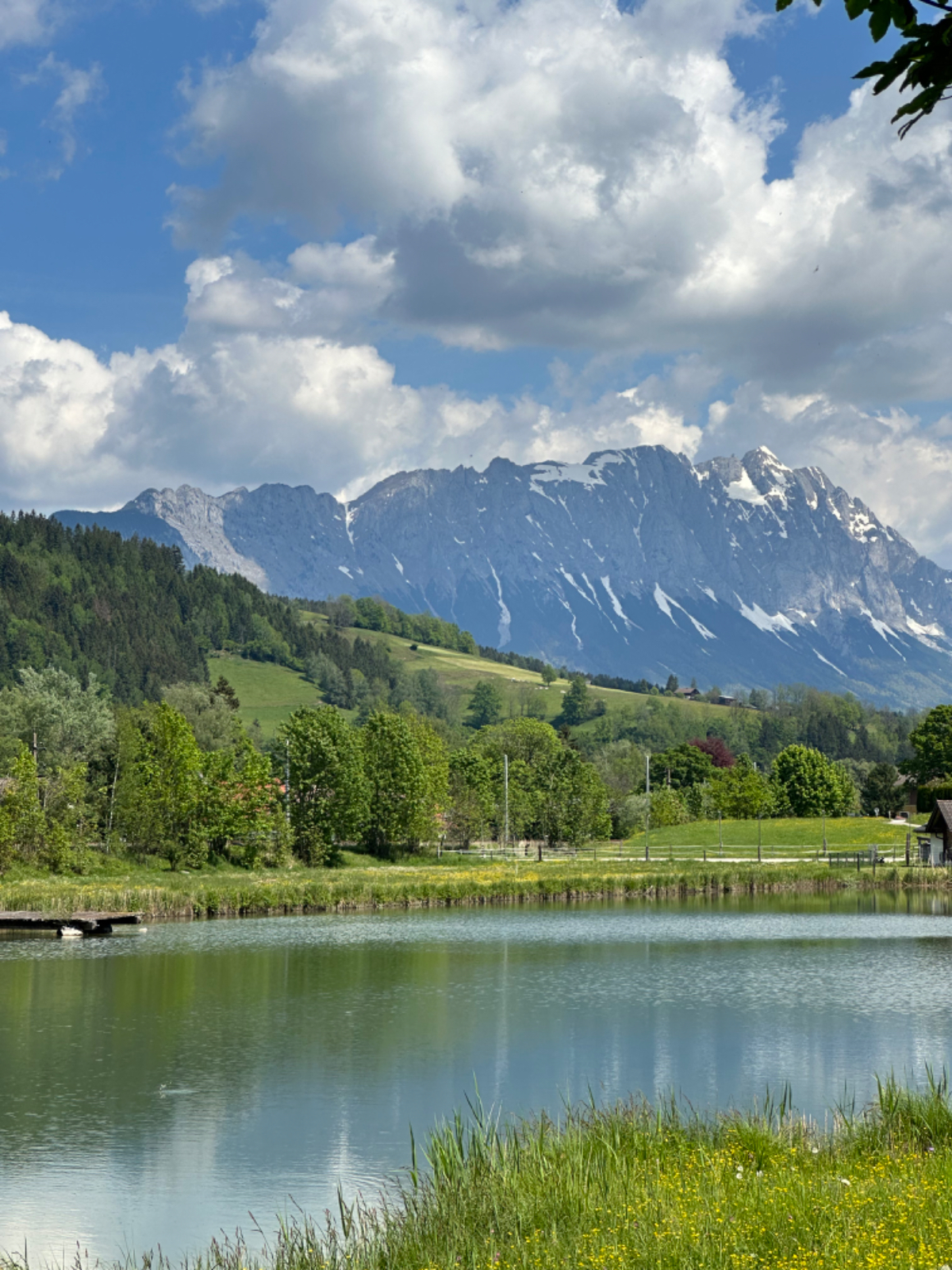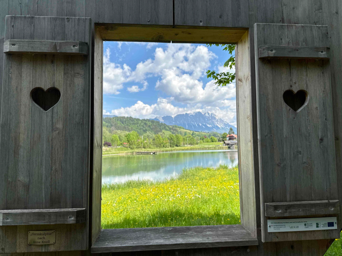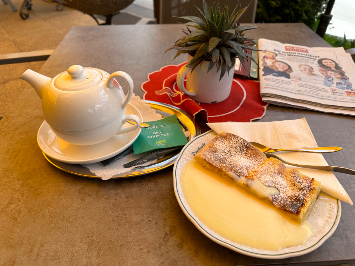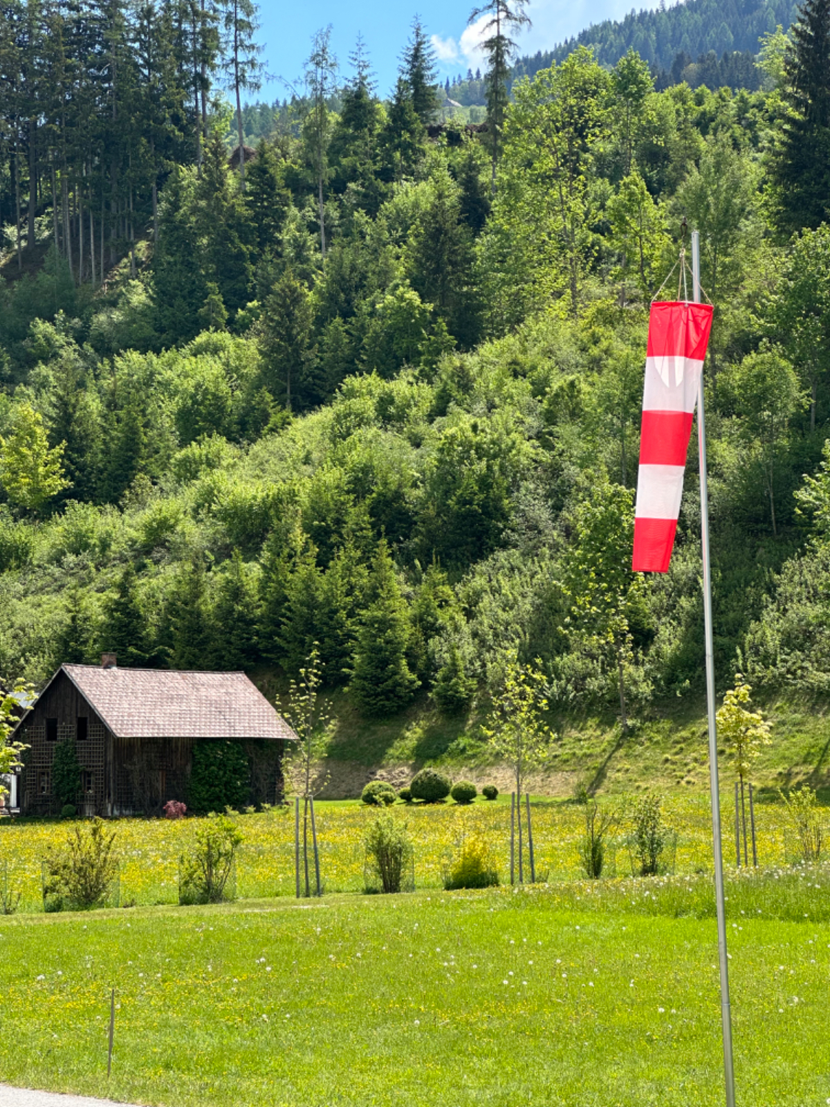 Auf einer Blumenwiese mache ich Fotos und versende Muttertagsgrüße an Großmütter, Mütter und Töchter, für mich schlummert in jeder Frau eine Mutter :-) In Weissenbach mache ich eine Pause, ein Café liegt da so einladend am Wegesrand, und ich habe es nicht bereut. Topfenstrudel mit Vanillesauce, dazu grüner Tee, danach sind die Energiespeicher wieder voll für die restliche Strecke bis Schladming. Kurz vor Schladming kommt mir ein cooler Typ auf einem Hochrad entgegen. Nach kurzer Überlegung kehre ich um. Um ihn einzuholen, muss ich ganz schön in die Pedale treten.