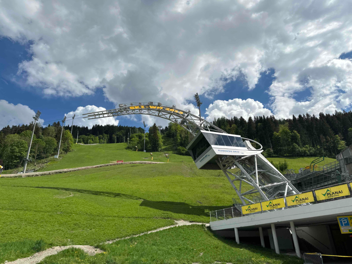Franz Seggl, 71!! ein Urgestein aus Schladming, radelte bereits mehrere tausend Kilometer mit dem Hochrad, z.b. umrundet er mehrmals am Tag den Dachstein, oder er geht morgens mit den Tourenschi in die Berge, um am Nachmittag seine Runden mit dem Hochrad zu drehen. Auf YouTube gibt es einige Berichte über ihn. Nach einigen Fotos verabschieden wir uns, allerdings sehe ich ihn später in Schladming nochmals wieder. Als erstes fahre ich zur Planai Talstation, sehr imposant, auch ohne Schnee. Insgesamt ist in Schladming wenig los, einige Radfahrer und Biker sind in der Stadt. Kaum vorstellbar, was hier in den Hauptsaisonen los sein wird.