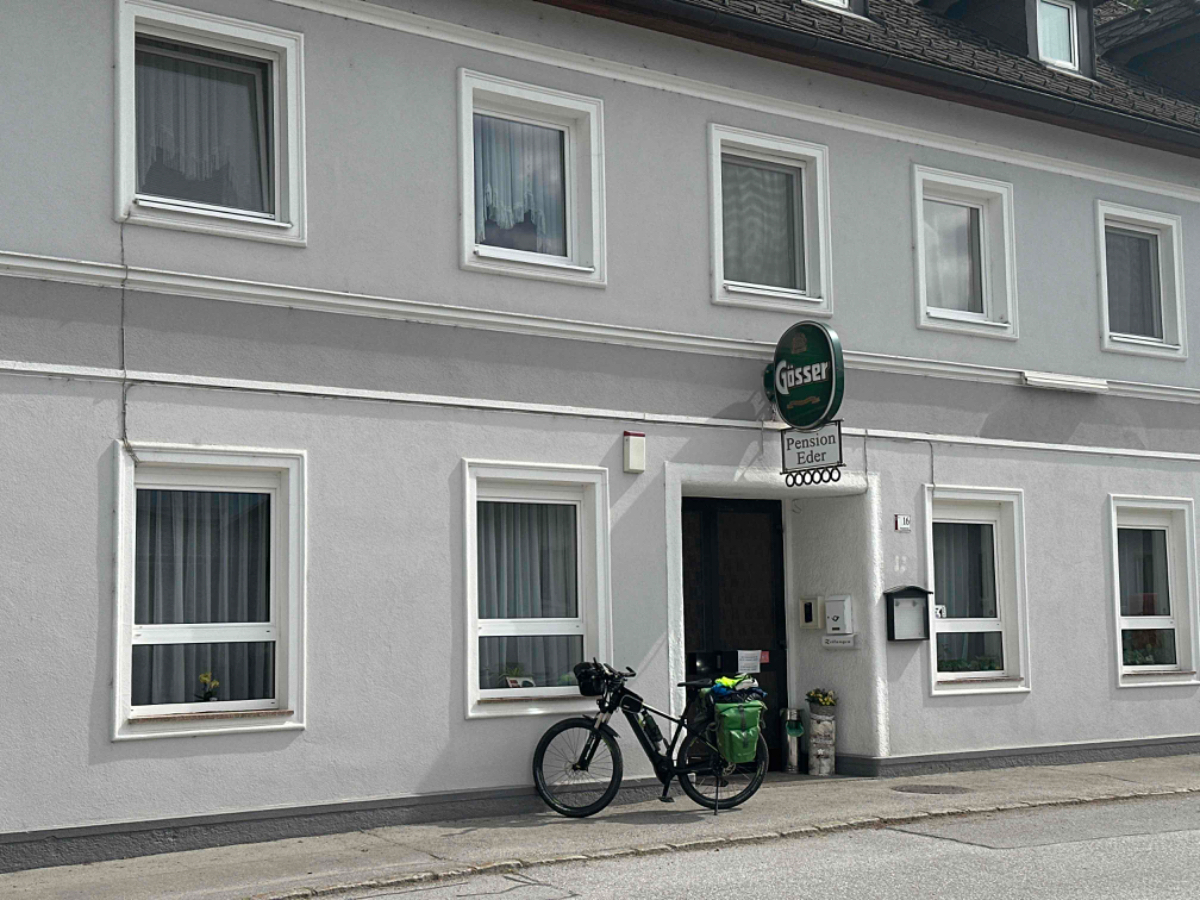 Trotz ultraweicher Matratze habe ich gut geschlafen und bin erst um sieben Uhr aufgestanden. Frühstück gibt es hier nicht, aber eine Küche. Ich koche mir Tee und esse noch den Rest der gestrigen Jause. Es ist dann fast halb zehn, als ich endlich losfahre. Das Wetter ist perfekt, wenn auch noch ein wenig kühl. Durch Leoben entlang der Hauptverkehrsroute geht es eh ganz gut, aber weg vom Verkehrstrubel ist es wesentlich angenehmer. Ich fahre entlang des Voest Werkes Donawitz, ein rotbraun staubiger Industriekomplex von imposanter Größe. In der Ferne sehe ich schneebedeckte Gipfel, ganz so hoch werde ich wohl nicht hinauf müssen. Aber hinauf geht es, und das stetig. Hatte ich auf meiner Romreise ca. 35kg Gepäck am Rad, so sind es diesmal ca. 20kg, aber auch die spürt man wenn es ständig bergan geht. Zusätzlich habe ich mir seit Oktober über den Winter 7 kg (ja sieben) sinnloses Übergewicht angefressen, kann man nicht anders sagen :-( Und auch diese machen sich beim Fahren bemerkbar …… Unlängst habe ich mir ja ein Bike-Fitting gegönnt, mein Rad wurde soweit als möglich an mich angepasst. Es stellte sich dabei heraus, dass mein Rad einen zu kleinen Rahmen für meine Körpergröße hat. Nicht ideal! Nichtsdestotrotz bemerke ich eine positive Veränderung durch dir geänderten Parameter. Bei dieser Gelegenheit habe ich den nächsten neuen Sattel montieren lassen, und was soll ich sagen, nicht nach 50 Kilometer, sondern erst nach 60 Kilometer beginnt mein Hintern zu schmerzen, also ein durchaus gelungener Satteltausch ;-)) Im gesamten Liesingtal ist heute Groß Mähtag. All die grossen Wiesenflächen werden heute gemäht, aber es wird kein Heu gemacht. Ähnlich einem Mähdrescher, wird das gemähte Gras gehäckselt und auf den daneben herfahrenden Traktorhänger geblasen. Ich nehme an, zur Silage. Die verwendeten Traktoren und vor allem die Anhänger sind riesig, zweimal muss ich von der Strasse um welche vorbei zu lassen. Bei allen Ortsdurchquerungen bietet sich das selbe Bild, scheinbar ausgestorben und keine Spur eines Geschäftes. Bei einer Bundesstrassenüberquerung treffe ich doch auf einen Billa, dort gönne ich mir zwei Leberkäse Semmeln und Wasser, mein Mittagessen :-) Nach endlosen Anstiegen mit reichlich Gegenwind erreiche ich endlich Wald am Schoberpaß, den höchsten Punkt der heutigen Tour, ich bin ganz schön KO und froh, oben zu sein. Mit dem Gegenwind wird es auf der anderen Seite aber auch nicht besser, bis Trieben bläst mir der Wind entgegen, dass ich an manchen Stellen bergab treten muss. Bis Selzthal ist es nicht mehr weit, aber die Restreichweite des Akkus lässt keine grossen Anstiege mehr zu. Es geht sich aus, bei Ankunft im Quartier könnte ich noch 4 Kilometer eben weiterfahren. Die Unterkunft ist ein Gasthaus, aber wie zu erwarten ohne Gasthausbetrieb, obwohl sie sehr gut ausgelastet sind. Es gibt nicht einmal mehr ein Schankbier, nur Getränke aus dem Automaten. Die nächstgelegene zu Fuß erreichbare Pizzeria hat geschlossen (welch Wunder) und für größere Entfernungen müsste ich einige Zeit den Akku laden. What shalls denke ich mir, nehm ich halt ein Bier aus dem Automaten, doch die Wirtin ist so nett, und holt mir eine Flasche aus ihrem Privat Kühlschrank, was für Zeiten! Mein Zimmer ist eher eine Kammer, aber zumindest gibt es hier morgen Frühstück. Also ein Ankommensbier im Zimmer, zusammen mit einer Käsesemmel vom Vormittag, ich muss eh abnehmen :-) Das Haus verfügt sogar über einen charmanten „Gastgarten“ direkt an der Strasse, dafür aber im Schatten, hier schreibe ich meinen Blog. Langsam ist es aber zu kühl, ich werde auf mein Zimmer gehen und fernsehen. Davor mache ich noch einen Spaziergang durch Selzthal, a place to be ;-) Morgen gehts nach Schladming, ich bin guter Hoffnung, dass dort noch Infrastruktur existiert.