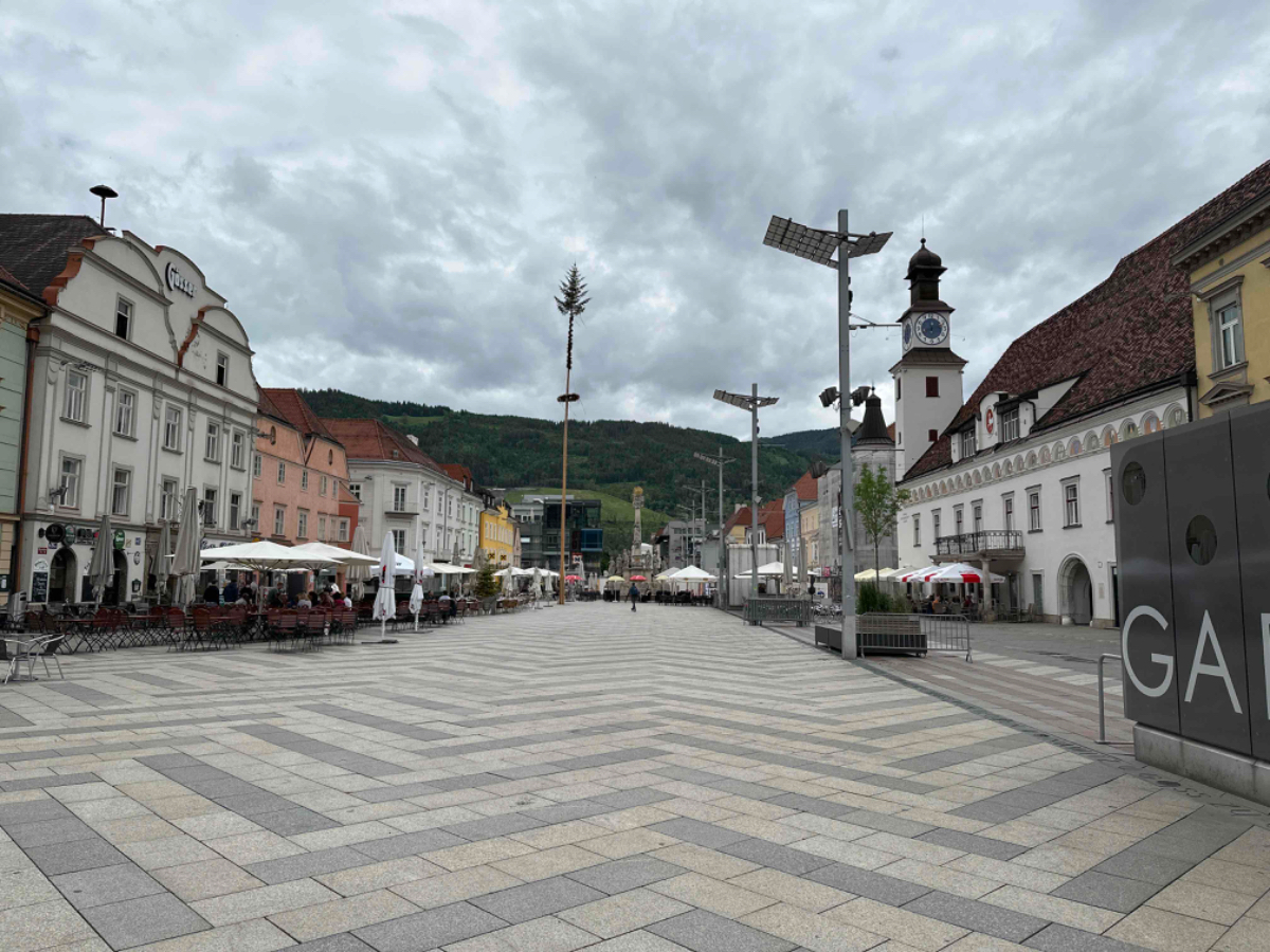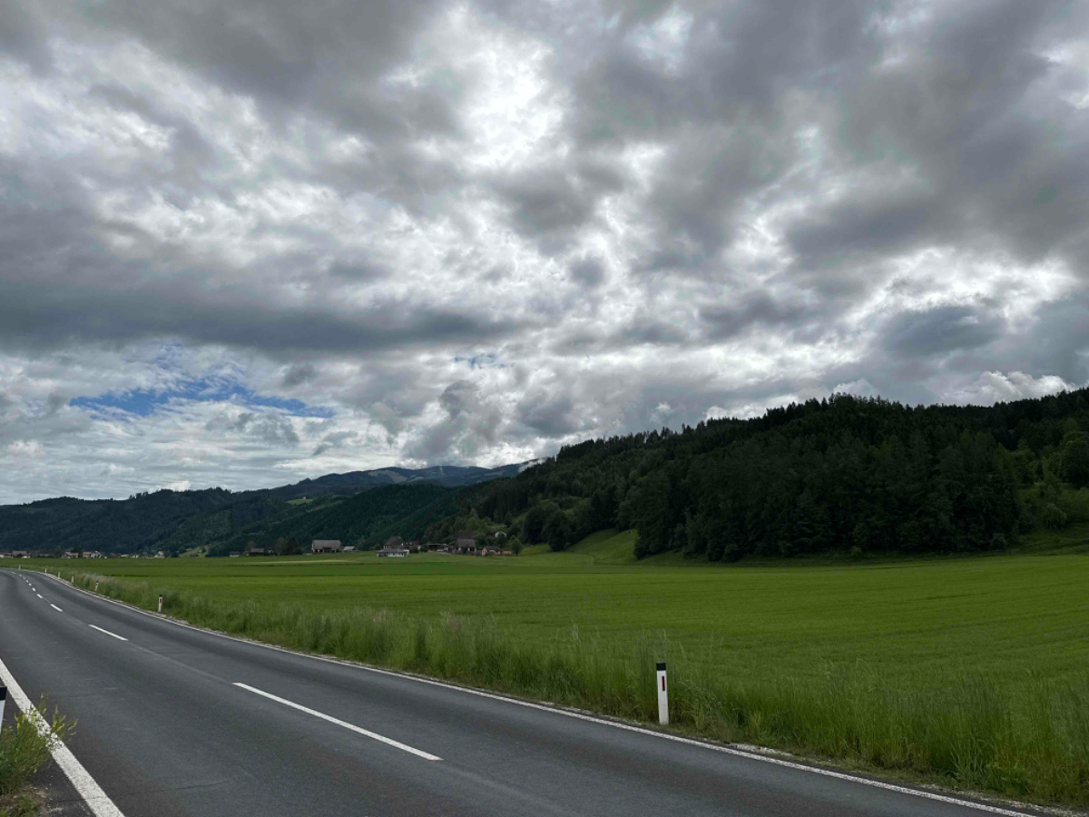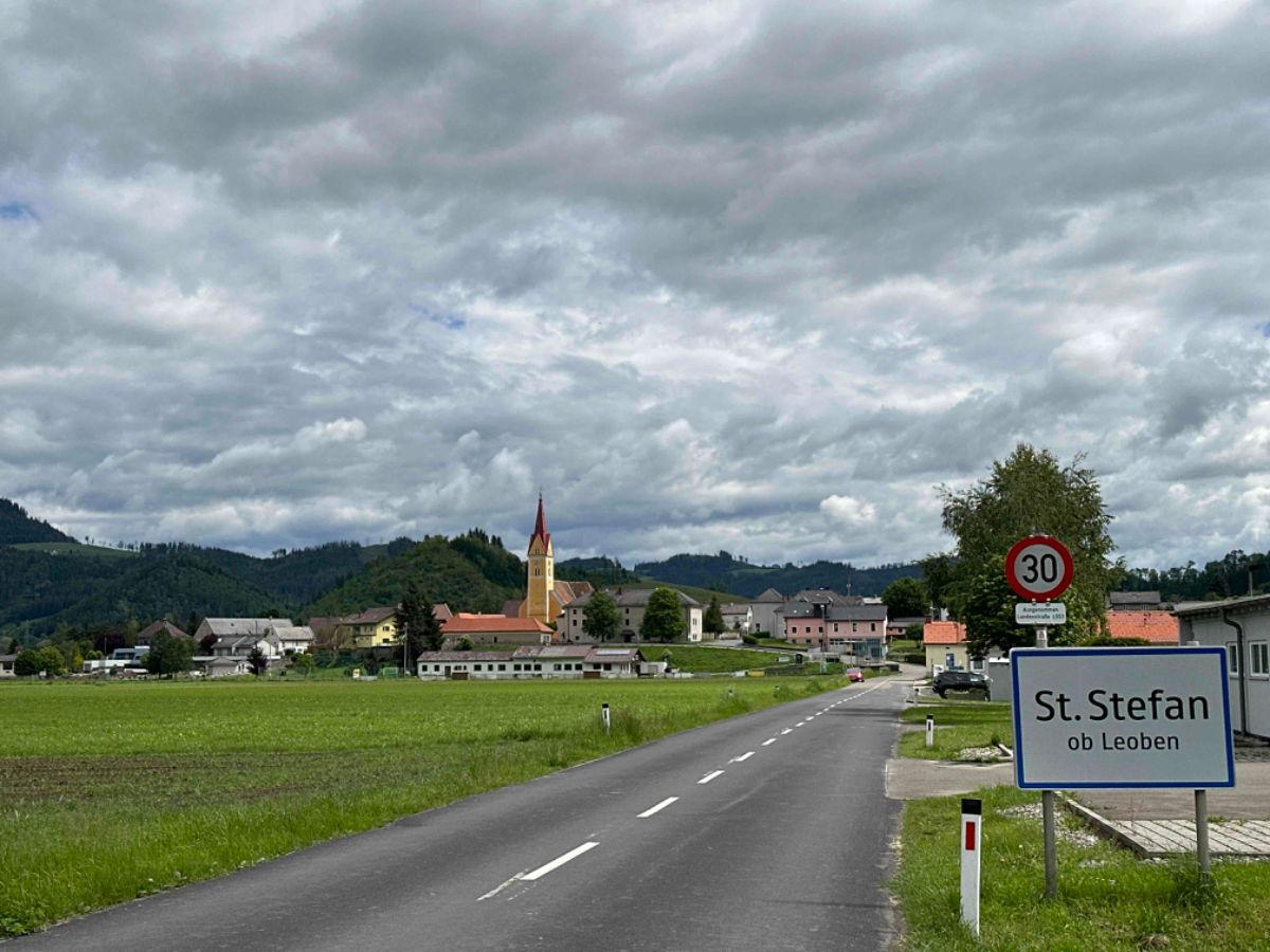 Zu Mittag erreiche ich bereits Leoben, ich fahre auf den Hauptplatz die Gastgärten sind gut besucht, das lasse ich mir dann auch nicht entgehen. Ein grüner Tee erfreut mein Herz. Es bauen sich drohende schwarze Wolken auf, und ich sehe zu dass ich weiterkomme, zu regnen beginnt es aber eh nicht. Dann stehe ich plötzlich an einer Kreuzung, die ich wiedererkenne. Hier stand ich am ersten Tag meiner Reise auf der Suche nach meiner Unterkunft. Ab hier geht es also den gleichen Weg zurück, über den ich von Graz gekommen bin :-)