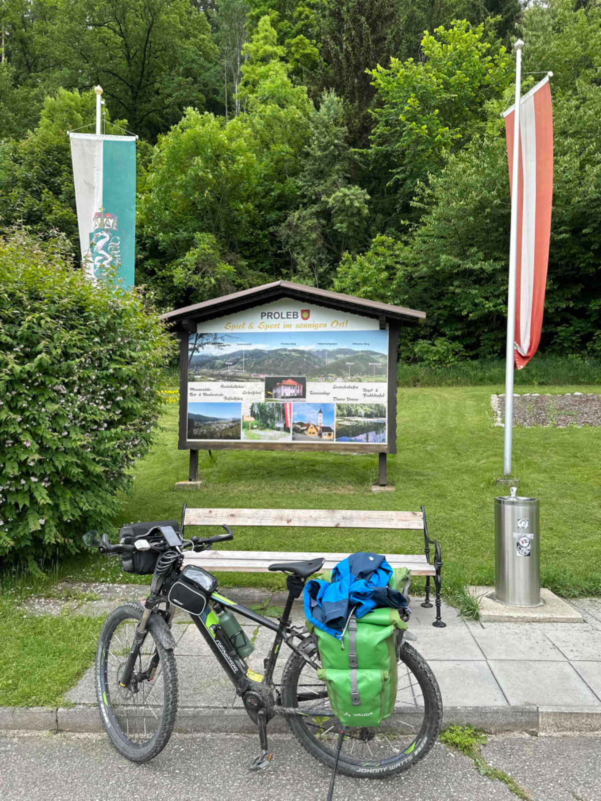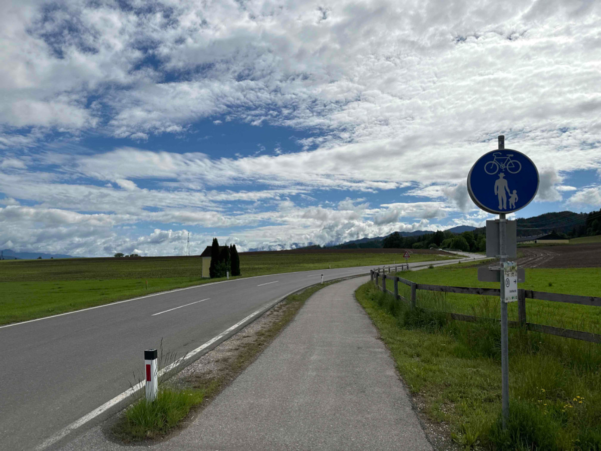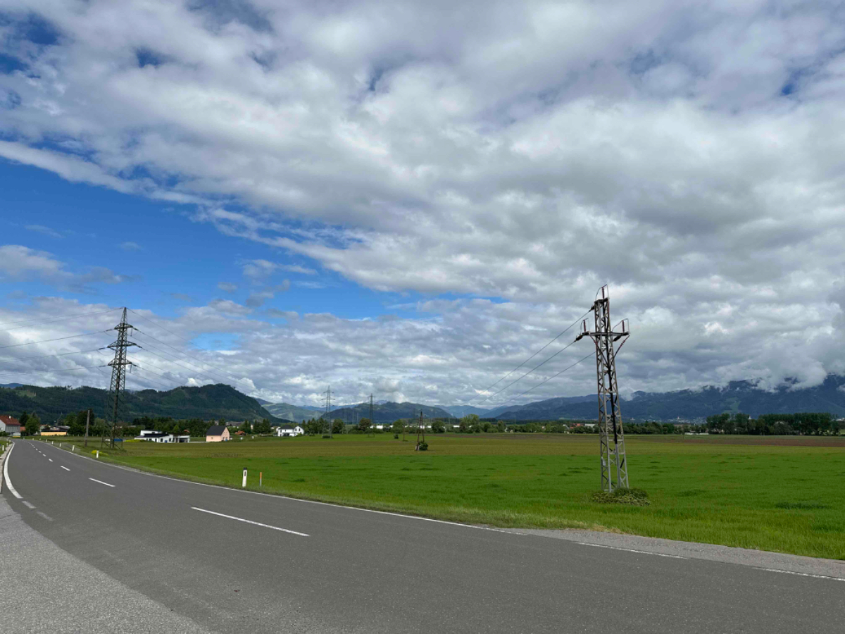 Zu Mittag erreiche ich bereits Leoben, ich fahre auf den Hauptplatz die Gastgärten sind gut besucht, das lasse ich mir dann auch nicht entgehen. Ein grüner Tee erfreut mein Herz. Es bauen sich drohende schwarze Wolken auf, und ich sehe zu dass ich weiterkomme, zu regnen beginnt es aber eh nicht. Dann stehe ich plötzlich an einer Kreuzung, die ich wiedererkenne. Hier stand ich am ersten Tag meiner Reise auf der Suche nach meiner Unterkunft. Ab hier geht es also den gleichen Weg zurück, über den ich von Graz gekommen bin :-)