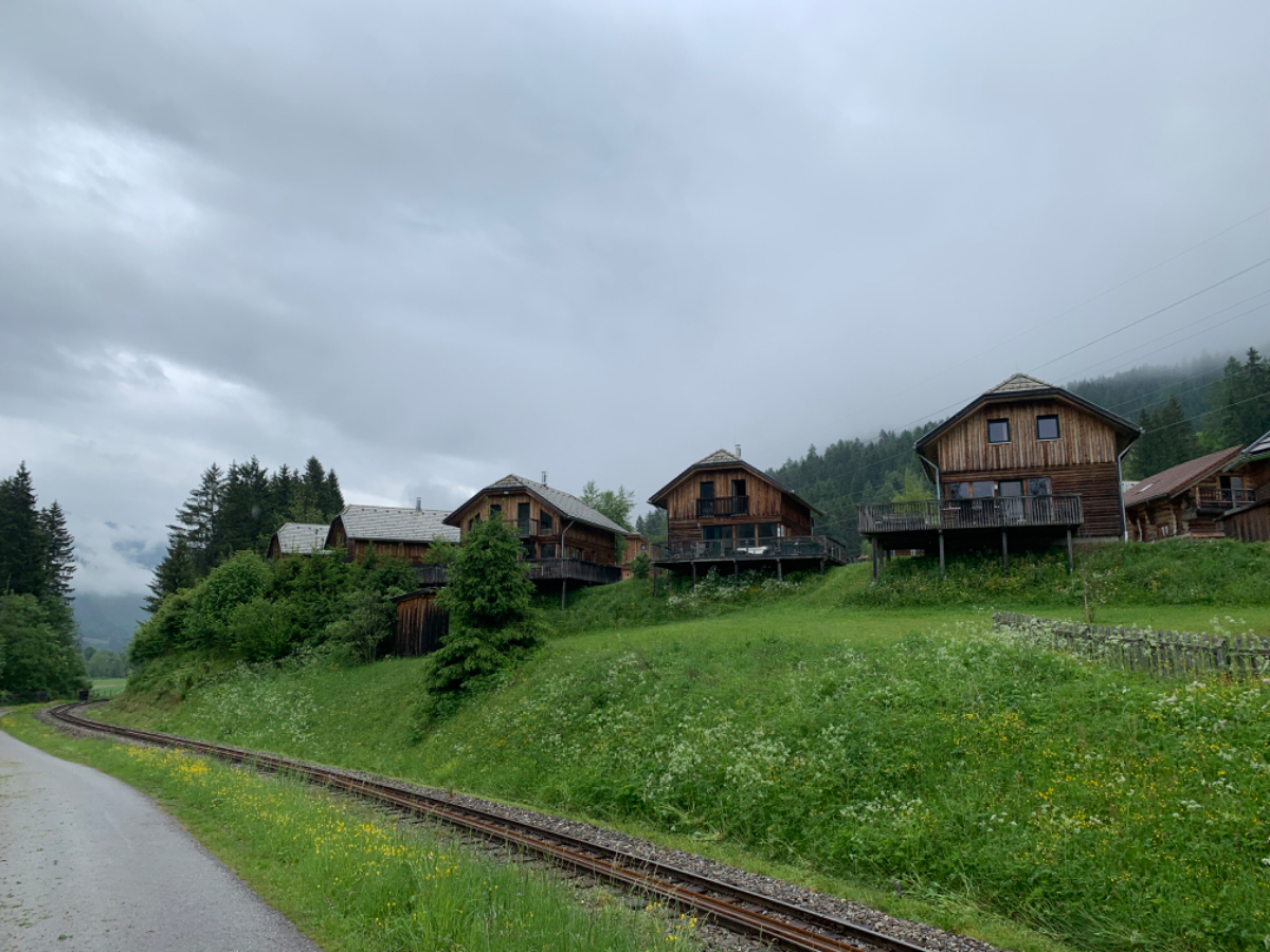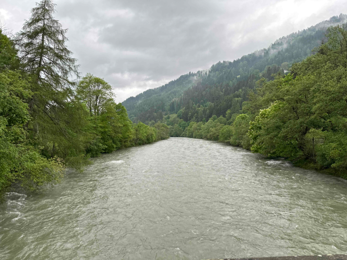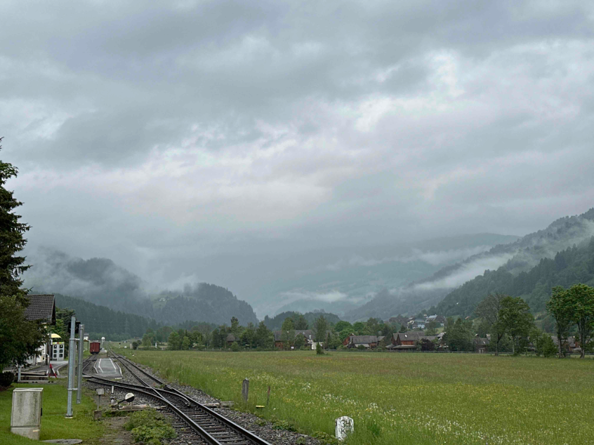 Der gestrige Ritt über den Tauern hat mich wie es scheint mehr geschlaucht als angenommen, denn ich habe fast zehn Stunden geschlafen wie ein Stein. Die überaus netten Wirtsleute beim Postwirt kredenzen mir ein feines Frühstück, das ich aber sehr kurz halte. Ich hege die Hoffnung, wenn ich früher losfahre, erwischt mich der angekündigte Regen erst später. Um viertel nach acht sitze ich heute bereits am Rad, es ist kühl aber momentan trocken. Doch schon nach zwei Kilometer ist es für heute vorbei mit trocken :-( Also Regenhose überziehen, in der Kurzen war es eh viel zu kalt, Regenjacke mit Kapuze und weiter gehts. Der Weg wäre eigentlich schön zu radeln, aber bei diesem Wetter hält sich der Genuss eher in Grenzen. An einigen Stellen erinnere ich mich an unsere erste Radtour, zu der mich Riki „überredet“ hatte mit dem Argument, der Murradweg folgt dem Fluß und somit geht es immer bergab. Hätte ich nämlich gewusst dass dem nicht so ist, wäre ich wahrscheinlich erst gar nicht mitgefahren, was natürlich sehr schade gewesen wäre! Allerdings bin ich seither bei Rikis Angaben zu Entfernungen, Steigungen, Höhen etc. grundsätzlich skeptisch ;-) Heute, mehr als zehn Jahre später, unterwegs mit dem e-bike kann ich vielerorts meinen Frust von damals nachvollziehen, ich war auch mit einem für mich viel zu kleinen Rad unterwegs, Anfängerfehler halt :-)