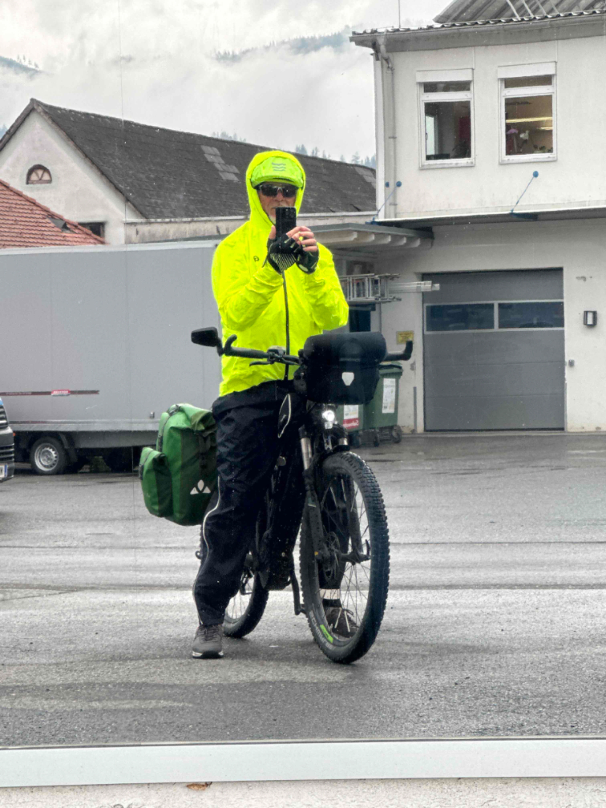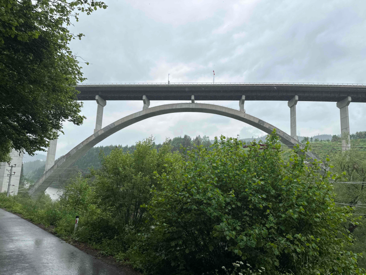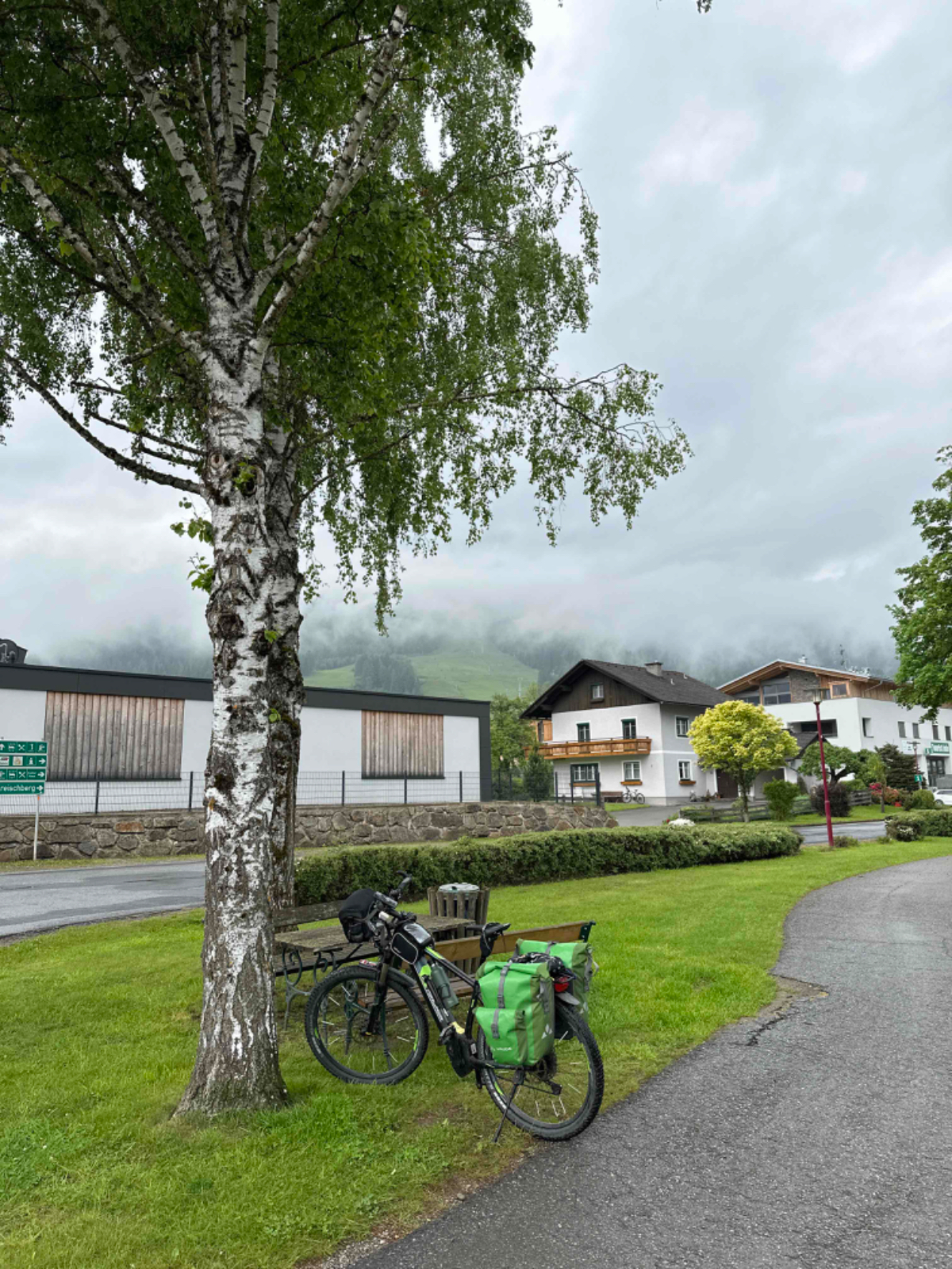 Der gestrige Ritt über den Tauern hat mich wie es scheint mehr geschlaucht als angenommen, denn ich habe fast zehn Stunden geschlafen wie ein Stein. Die überaus netten Wirtsleute beim Postwirt kredenzen mir ein feines Frühstück, das ich aber sehr kurz halte. Ich hege die Hoffnung, wenn ich früher losfahre, erwischt mich der angekündigte Regen erst später. Um viertel nach acht sitze ich heute bereits am Rad, es ist kühl aber momentan trocken. Doch schon nach zwei Kilometer ist es für heute vorbei mit trocken :-( Also Regenhose überziehen, in der Kurzen war es eh viel zu kalt, Regenjacke mit Kapuze und weiter gehts. Der Weg wäre eigentlich schön zu radeln, aber bei diesem Wetter hält sich der Genuss eher in Grenzen. An einigen Stellen erinnere ich mich an unsere erste Radtour, zu der mich Riki „überredet“ hatte mit dem Argument, der Murradweg folgt dem Fluß und somit geht es immer bergab. Hätte ich nämlich gewusst dass dem nicht so ist, wäre ich wahrscheinlich erst gar nicht mitgefahren, was natürlich sehr schade gewesen wäre! Allerdings bin ich seither bei Rikis Angaben zu Entfernungen, Steigungen, Höhen etc. grundsätzlich skeptisch ;-) Heute, mehr als zehn Jahre später, unterwegs mit dem e-bike kann ich vielerorts meinen Frust von damals nachvollziehen, ich war auch mit einem für mich viel zu kleinen Rad unterwegs, Anfängerfehler halt :-)
