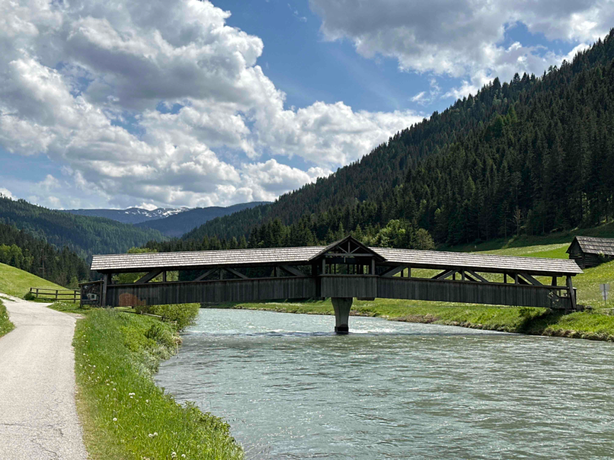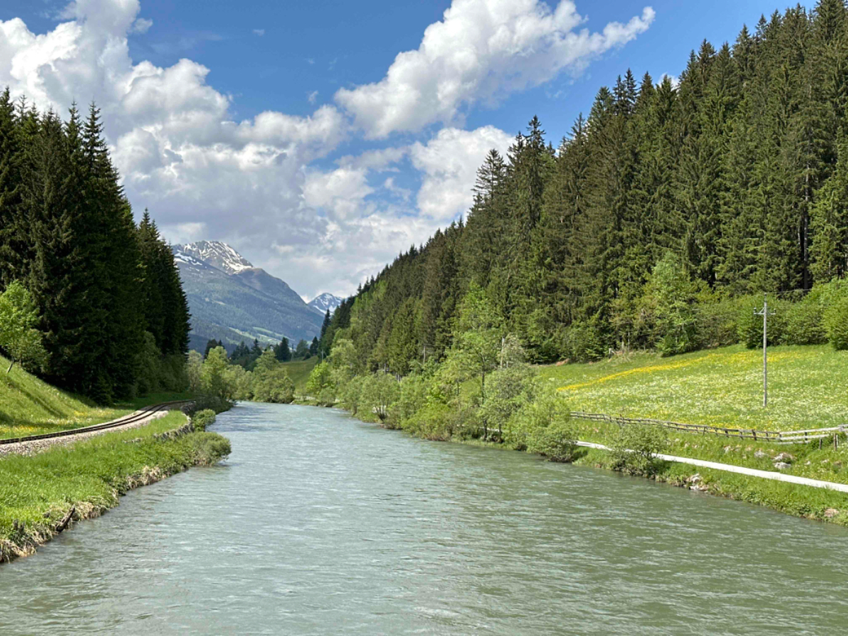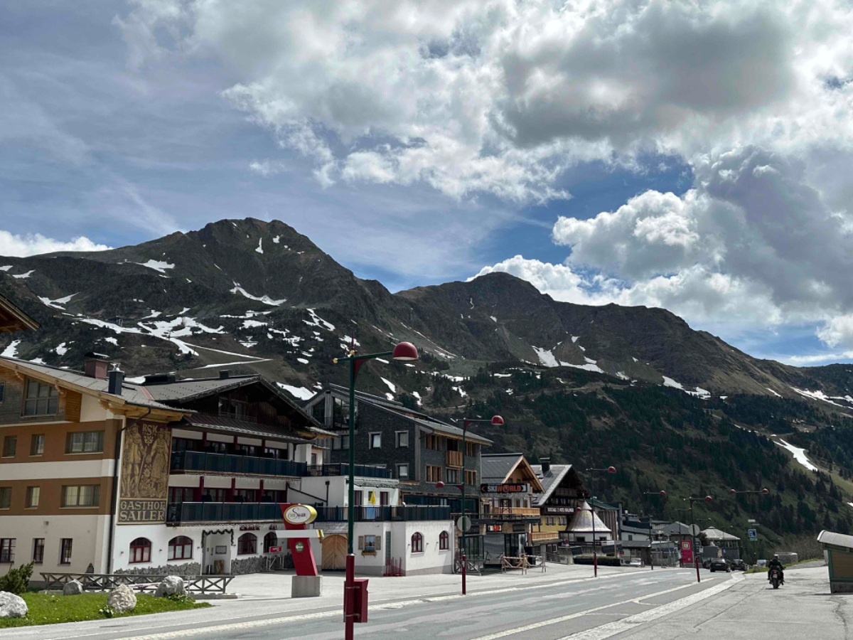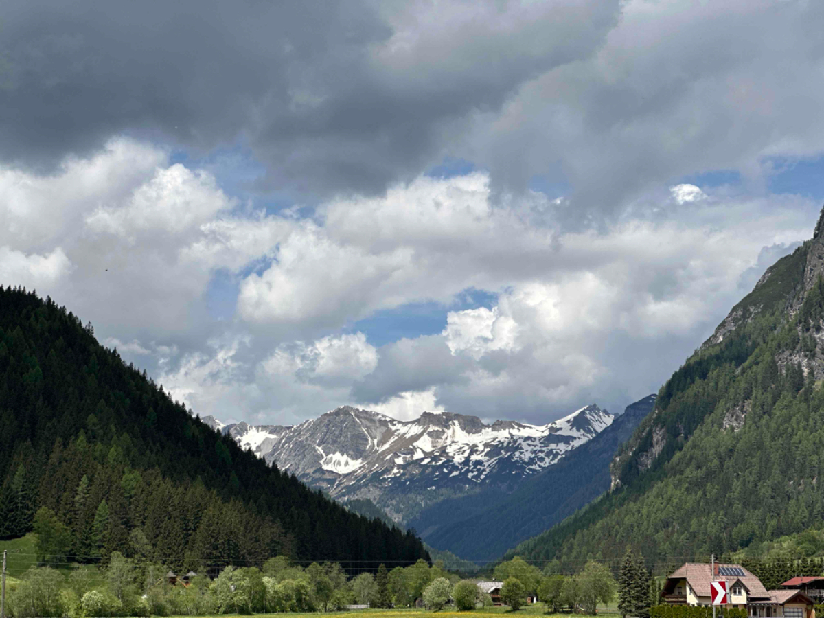 Wir vertratschen uns, und so ist es bereits 9:15 bis ich in die Gänge komme. Es ist ziemlich kühl, aber es geht eh gleich bergwärts, wenn auch vorerst noch mäßig ansteigend, entlang eines rauschenden Gebirgsbachs auf schönen Radwegen. Aber bald muss ich auf die Bundesstraße und dann geht es auch schon hinauf, in die vor mir liegenden Berge. Das Verkehrsaufkommen ist erträglich, es sind mehr Motorräder als Autos unterwegs, eine beliebte Bikerstrecke, ganz offensichtlich. Es folgen steile und weniger steile Abschnitte, aber anstrengend ist es in jeder Minute. Die Landschaft ist berauschend schön, aber es rauscht auch in meinen Ohren, und der Berg nimmt kein Ende. Nach 20km zwei Stunden und fast 1000 Höhenmeter komme ich endlich oben an, es ist saukalt. Ich bin froh oben zu sein, aber nicht stolz auf meine Leistung. Mein Held ist ein Radfahrer ohne Motor Unterstützung, den ich irgendwo mitten am Berg überholt habe. Auch er war mit Packtaschen beladen und kämpfte sich nach oben. Ich habe ihm meinen Respekt ausgesprochen, wenn er auch mindestens dreißig Jahre jünger war als ich. Durch den Ort bläst mir ein kalter schneidiger Wind entgegen. Ich muss raus aus den total durchschwitzten Klamotten, um mich nicht zu verkühlen. Ich suche mir eine windgeschützte Ecke und ziehe mich um. Obertauern ist eine Geisterstadt, nicht ein einziges Lokal hat geöffnet, sind wohl alle im Zwischensaison Urlaub, das Geld vom Winter ausgeben. Sei ihnen vergönnt. Nun geht es aber hinunter, es wird eine rasante Abfahrt :-) Gut dass ich trockene und winddichte Kleidung anhabe, der kalte Wind nimmt noch zu und beutelt mich ordentlich. Als es weniger steil wird, muss ich wegen des Gegenwindes sogar bergab treten. Wenigstens wird die Luft wieder wärmer, je weiter ich runter komme. Ich stoppe in Mauterndorf, um meine Freunde Hermi und Hans vom Hotel Steffner Wallner zu besuchen. Aber sie sind leider nicht da, sind in Italien, wie gesagt, hart verdientes Geld der Wintersaison verbrauchen ;-) Chris der jüngere Sohn ist aber zuhause, wir trinken Tee und unterhalten uns über die Lage der Nation, während mein Akku wieder aufgetankt wird. Bei der Weiterfahrt habe ich wieder heftigen Gegenwind gegen den ich antreten muss, mühsam! Bei Tamsweg erreiche ich den R2, den Murradweg. Hier fahre ich durch einen der schönsten Abschnitte dieses Weges entlang der noch jungen und sauberen Mur, und erinnere mich an unsere erste Radreise, hier am Murradweg hat es begonnen :-)