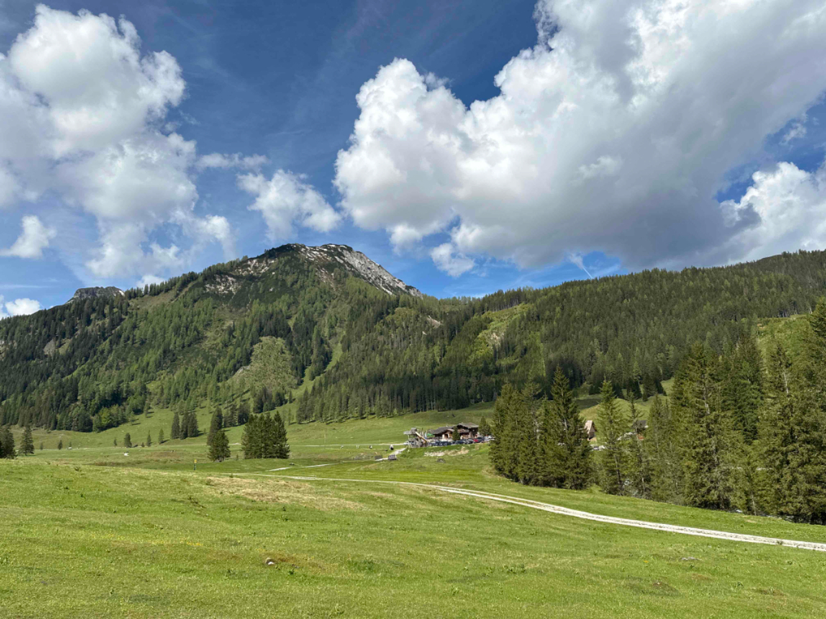 In der Nacht gab es ein Gewitter, aber der heutige Tag verspricht trocken zu bleiben. Nach den Ruhe und Erholungstagen bin ich heute schon um sechs Uhr aufgewacht, um 7:30 bereits fix fertig beim Frühstück gesessen, obwohl ich keines gebucht hatte, weil erst gar keines angeboten wurde. Aber Markus, der Hausherr hat mir gestern nach dem Spiel ganz spontan erklärt, er hat zwar nichts zuhause, er fährt aber noch nach Salzburg, und irgendwas wird er mir in jedem Fall zum Frühstück servieren. Markus und seine Frau Moni servieren mir also ein Frühstück, das keinen Wunsch offen lässt, und würden mir sogar noch eine Jause einpacken. Bezahlen darf ich das Frühstück allerdings nicht, vielen Dank Euch beiden! :-)