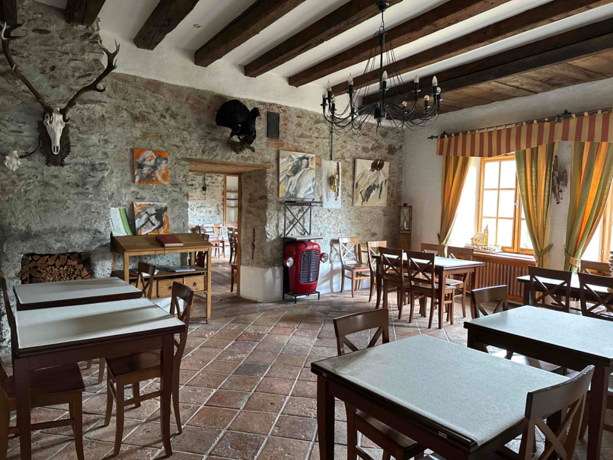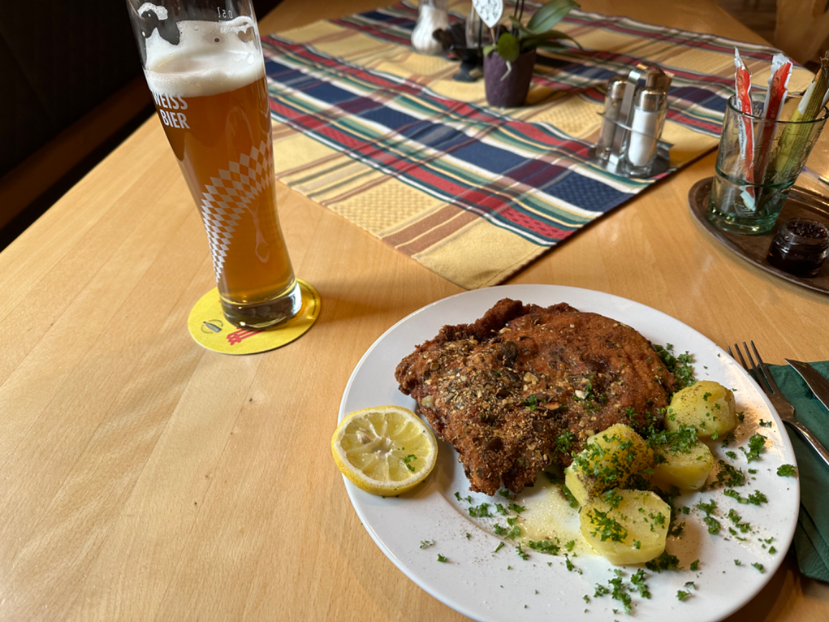 Ich bin dermaßen hungrig, dass ich noch bevor ich mein Zimmer beziehe in der Gaststube Platz nehme. Caprese, danach ein Gordon nach steirischer Art und dazu ein Weißbier, dann geht es mir besser.