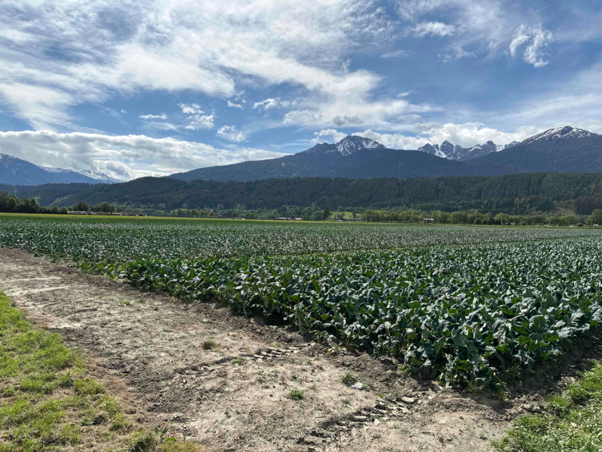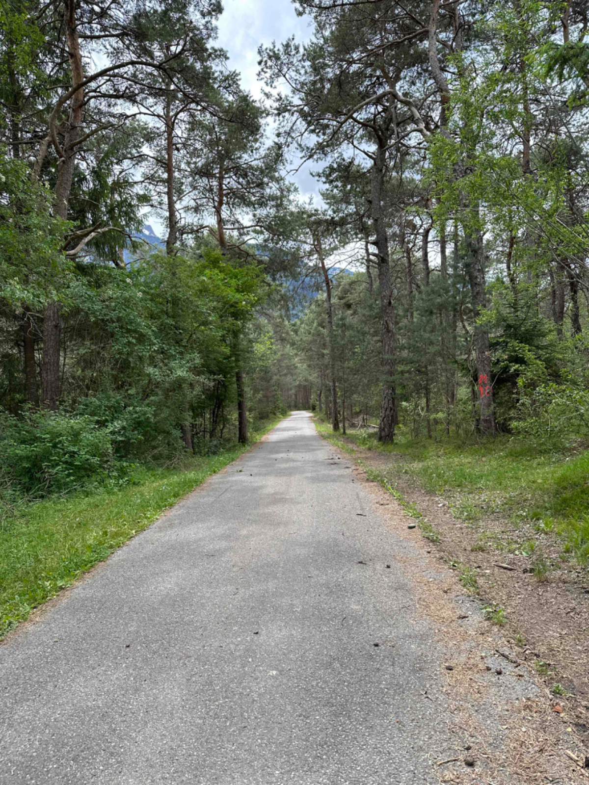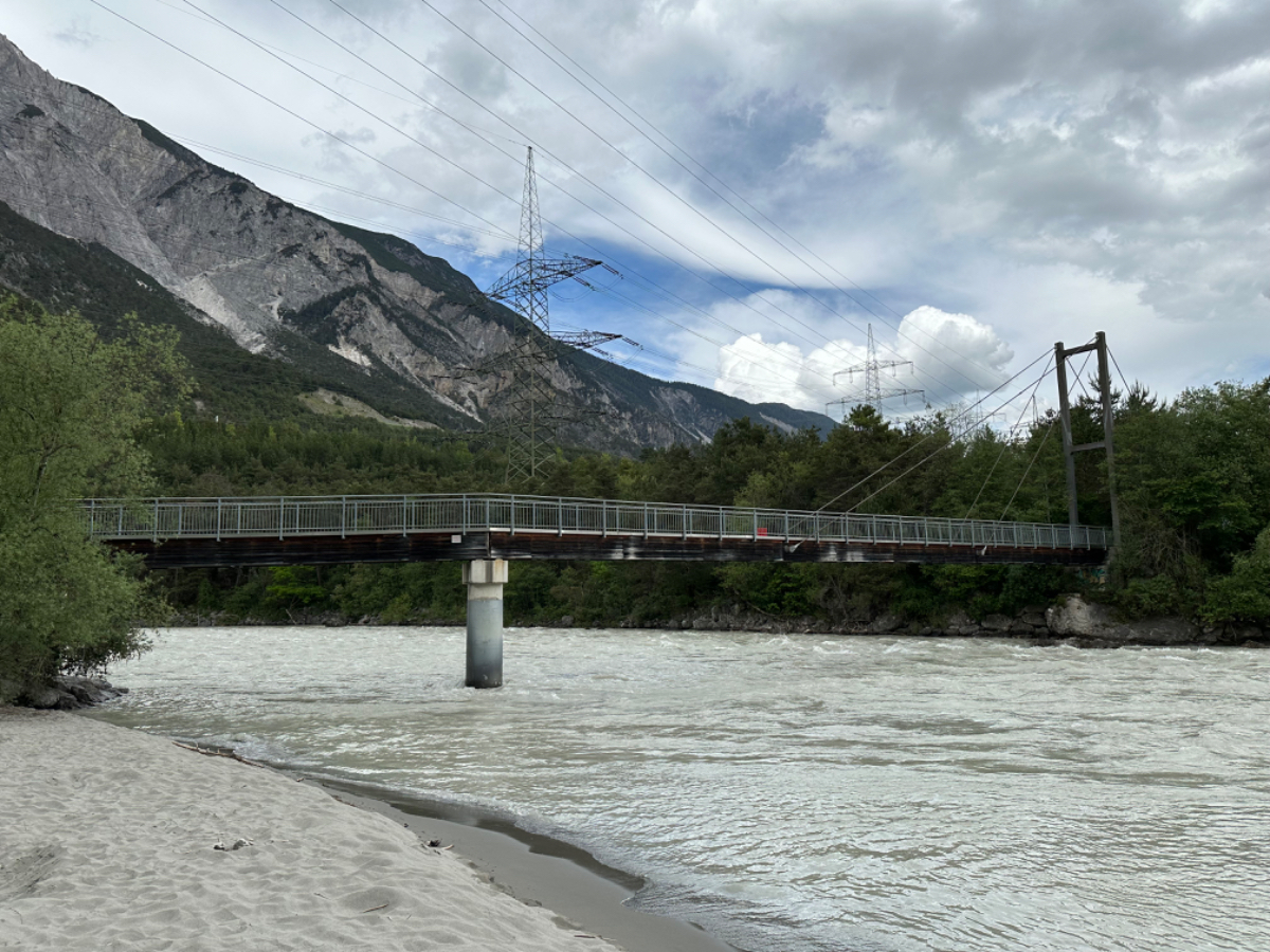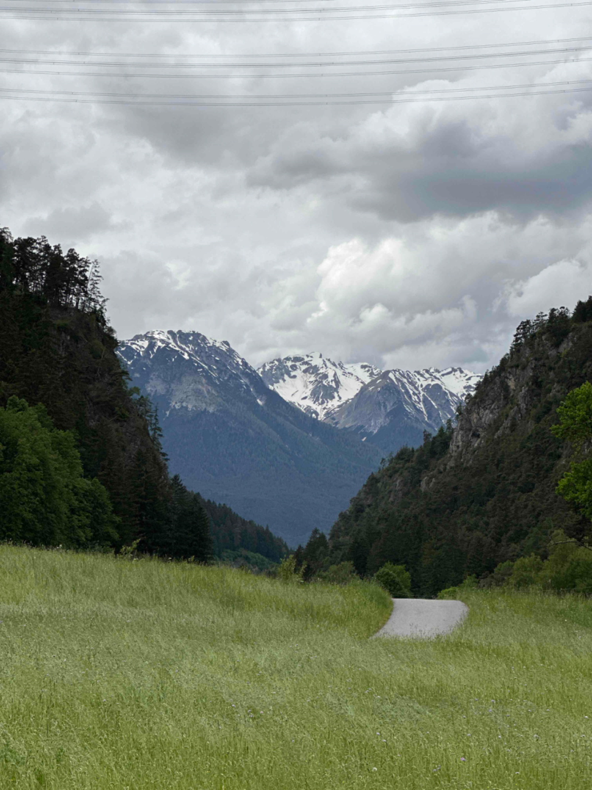 Schon Tag sieben, heute bin ich eine Woche unterwegs. Dieses tägliche Blogschreiben lässt mich den Tag nochmals revue passieren, ohne dieses tägliche Schreiben würde vieles gleich wieder in der ewigen Vergessenheit versinken, ich kann mich doch schon heute nicht mehr erinnern, wo genau ich vorgestern war, aber ich kann’s ja nachlesen ;-) Der Wetterbericht für heute hat gestern am Abend nichts Gutes verlauten lassen, umso überraschter war ich heute früh, dass es leidlich schön zu sein schien, als ich den Vorhang zurück zog. Das Frühstück wurde dem Rest des Hauses durchaus gerecht, es war alles da. Mancher würde vielleicht sagen, besser geht immer, aber es wäre die pure Verschwendung gewesen. Mein Rad trage ich die enge Treppe wieder hinunter, fürs Gepäck nehme ich den Lift. Um neun radle ich aus Wattens hinaus, es ist wolkig, aber mit Sonnenfenstern in meine Fahrtrichtung. Es liegen wieder über 80km vor mir, sollte aber kein Problem sein, laut Höhenprofil geht es die ersten 50km nur ganz moderat bergauf, dem Gefälle des Inn gegen die Flußrichtung folgend. So ist es dann auch, ich radle heute wirklich ganz gemütlich dahin, brauche kaum Unterstützung und es macht Spaß. Bald ist Innsbruck erreicht, über eine breite Promenade zwischen Inn und Bundesstraße radle ich in die Stadt hinein. Es ist zu früh für eine längere Pause und wer weiß wie sich das Wetter entwickelt, also beschließe ich, nach einigen Fotos bald weiter zu fahren. Der Innradweg führt wie der Name vermuten lässt, meist entlang des Inn dahin, Fast immer auf Radwegen, aber manchmal auch weg vom Wasser durch die Dörfer. Die Beschilderung des Radweges ist wirklich vorbildlich gemacht, habe ich anderswo schon ganz anders erlebt. Heute gibt es wieder mal eine Baustelle mit einer größeren Umleitung. Zuerst gibts auch wieder eine Beschilderung der Umleitungsstrecke, aber irgendwann ists dann vorbei damit, und ich folge mehr meiner Intuition. Ich befinde mich in der weiten Ebene des Inntals, verfahren kann ich mich eh nicht, das Tal ist ja links und rechts mit hohen Bergen begrenzt ;-) Das Inntal ist einziger großer Gemüsegarten, Feld an Feld, dazwischen Folientunnel, und überall läuft die Bewässerung auf Hochtouren, die Erde ist staubtrocken. Aber in den kommenden Tagen wird es sicher Regen geben, nur für mich hoffentlich heute noch nicht. Nach einigen km erreiche ich meine Route wieder und folge dem Navi. Seit ich in Tirol bin, liegt ein schwerer „Duft“ in der Luft, es riecht ständig nach Stall, aber auch kein Wunder, hier wird kräftigst gedüngt, teilweise steht die Gülle auf den Feldern. Bisher ist es der anspruchsloseste aber auch unspektakulärste Abschnitt der Gsiberg-Tour, aber es wird noch. An den letzten 20 km geht es doch wieder zum Teil schön zackig hinauf, aber in einer wunderschönen Umgebung, nach Roppen fahre ich durch einen Kiefernwald hinauf, hinunter, rauf und runter, und komme dann in ein enges Tal, das nur Platz für die Bahngleise, den Fluß und den Radweg lässt, mit Blick auf vor mir in der Ferne aufragende Berge. Am Ende erreiche ich Imst, mein heutiges Ziel. Um 15 Uhr checke ich ein, ein wunderschöner alter Gasthof / Hotel, ich habe das Chefzimmer bekommen, alles gut, auch das Bier und die Küche.