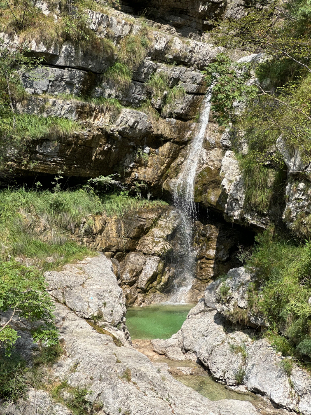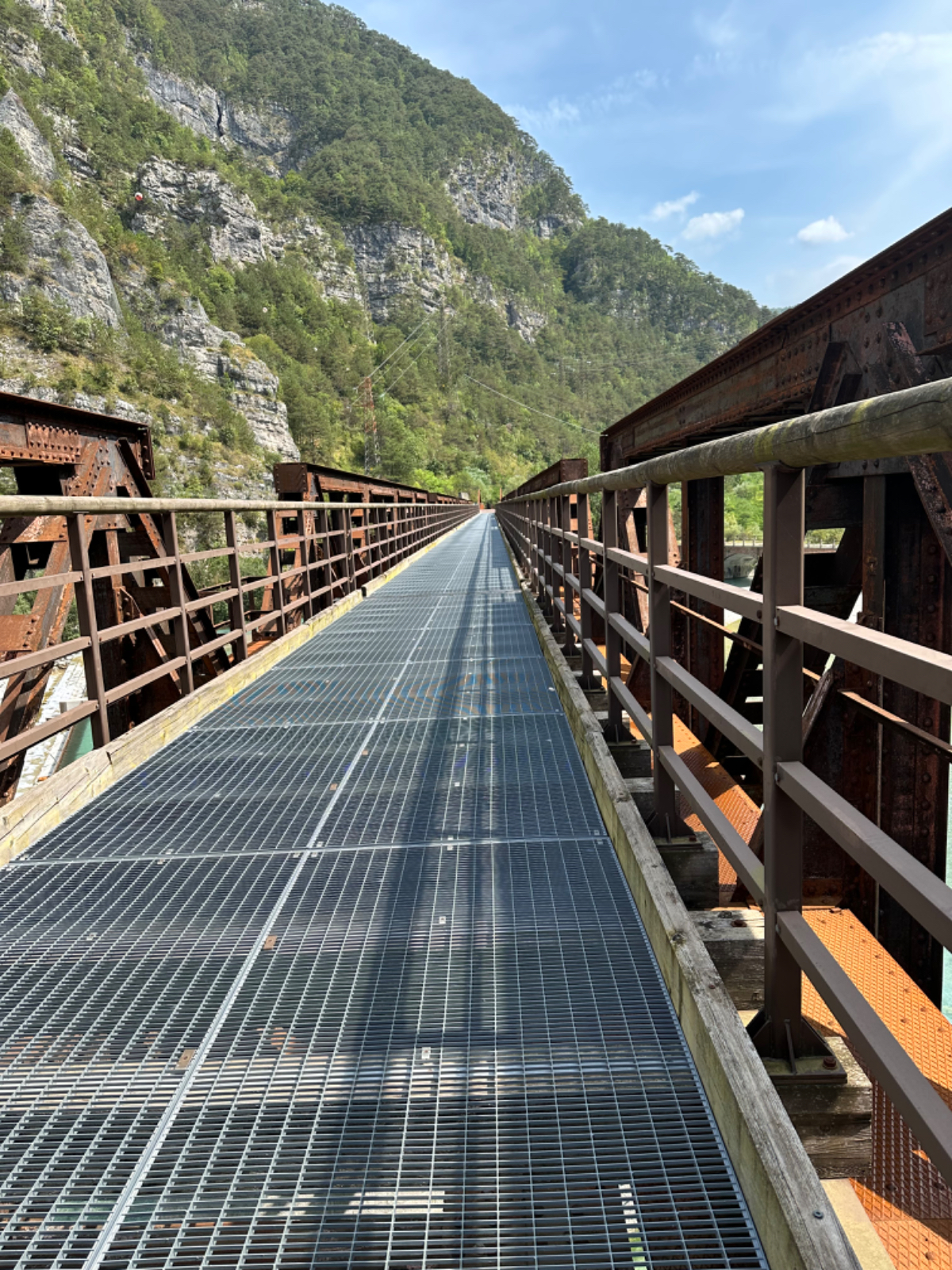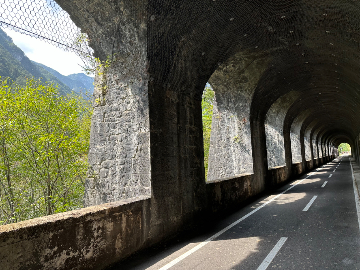 bremst, als wir die ersten Kilometer der Pontebana bergan radeln. In Venzone machen wir Rast in der