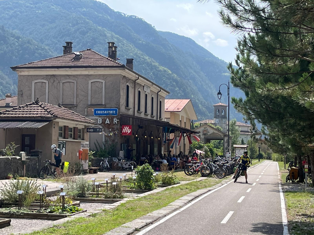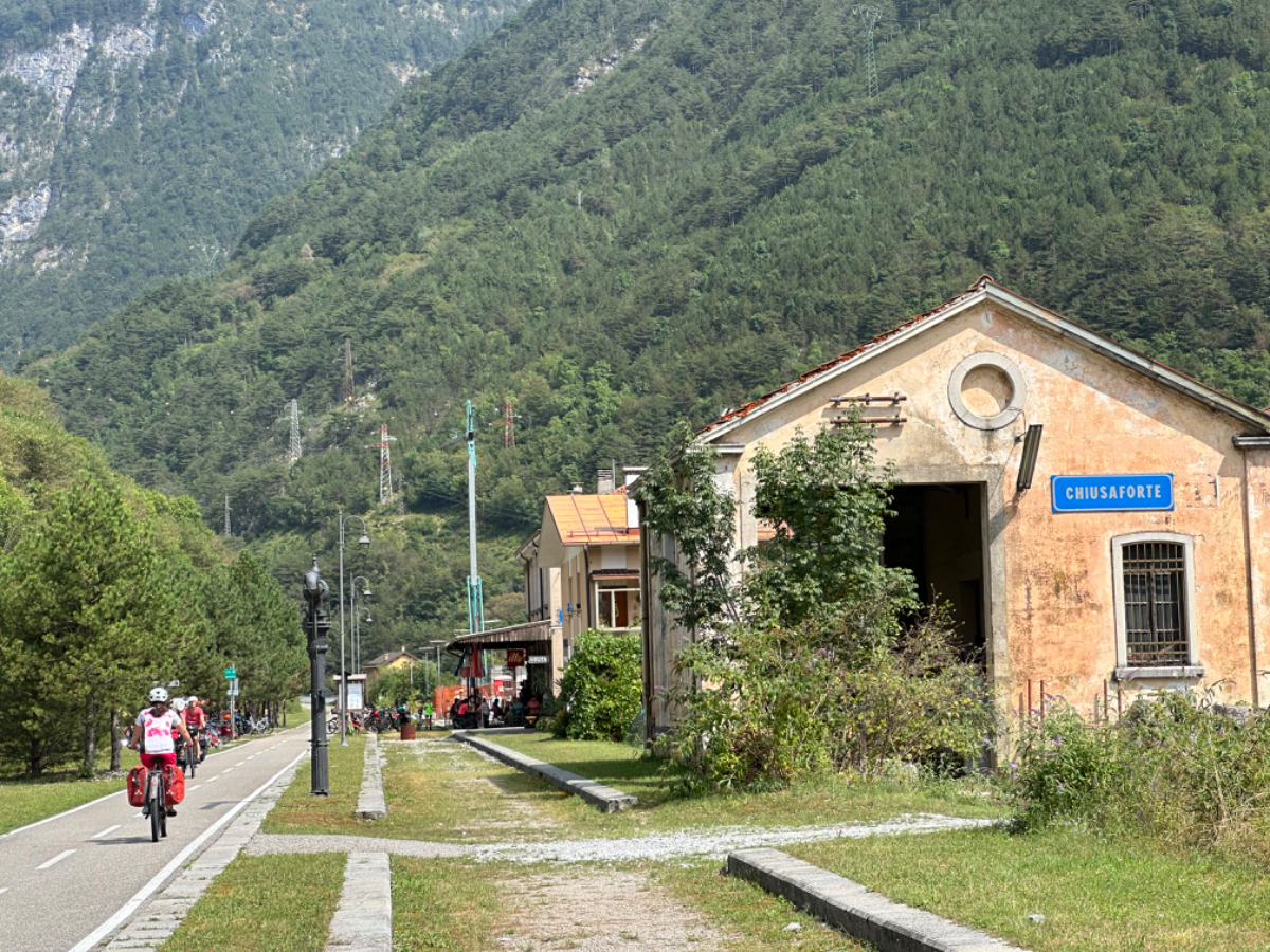 geht es die Pontebana hinauf bis zum Bahnhof Chiusa Forte. Es ist Mittagszeit, dementsprechend ist