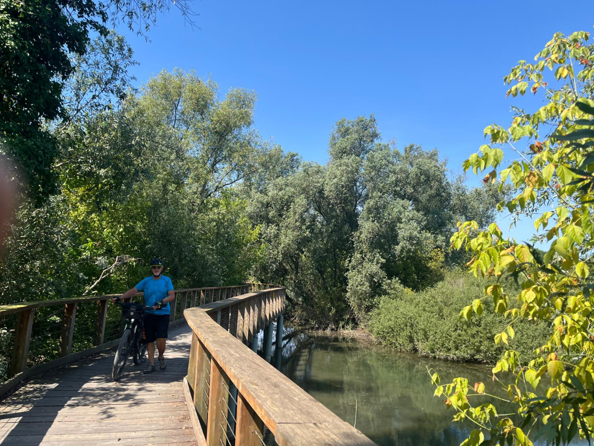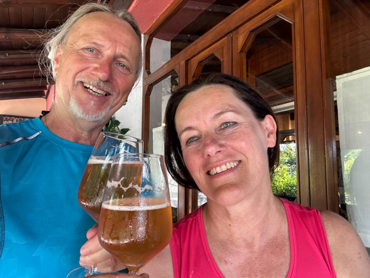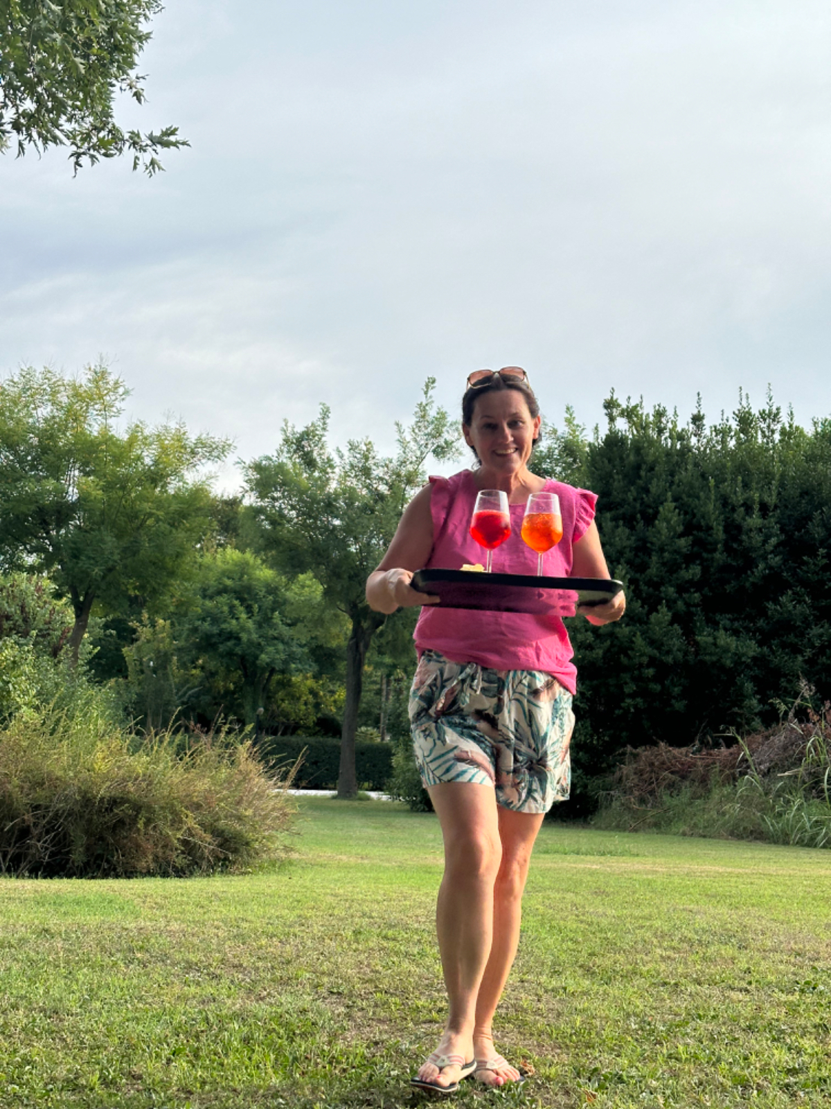 Aus Treviso raus folgen wir dem Fluß Sile, größtenteils bis zu unserem heutigen Ziel. Wir durchqueren ein Naturschutzgebiet entlang des Sile, schattige Wege, Stege und Brücken und nach jeder Flußbiegung eröffnet sich uns ein schönerer Anblick als zuvor. Hier werde ich mal - natürlich mit Riki - mit einem Hausboot hochfahren :-) Um 13 Uhr erreichen wir unser Quartier, ein schönes Hotel, eingebettet in einen großen Park, sehr cool! Wir sind zu früh, also gehen wir zuerst auf ein Ankommensbier. Dem jungen Kellner passiert ein Missgeschick, er zerbricht ein Glas und gießt den Inhalt über den Tisch und auch Rikis Shirt stinkt danach nach Bier. Das Gute daran, wir mussten unsere Zeche nicht bezahlen. (Danke Bernd für die Einladung, wir kommen gerne in ein nächsten Tagen darauf zurück :-) Nachdem heute ein Feiertag ist, hat so gut wie kein Lokal um die Mittagszeit geöffnet, aber wieder Glück gehabt, in einer Bar essen wir schmackhafte Spaghetti - und bezahlen für zwei Portionen und ein Liter Mineralwasser 15 Euro :-) Den restlichen Tag verbringen wir bis zum Abend am hoteleigenen Pool, der mitten im Park liegt, bei angenehmen 34 Grad, mit Campari und Aperol Spritz, WHAT A DAY! :-) Und morgen Venezia……